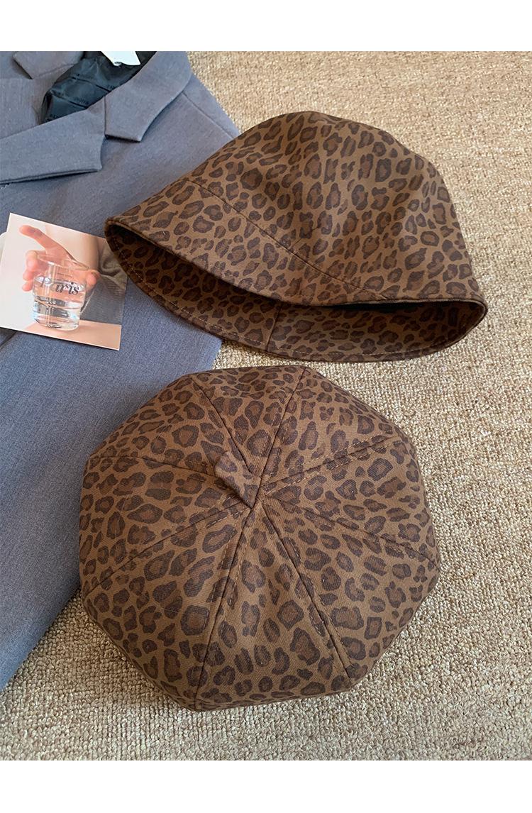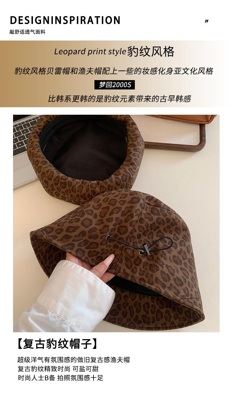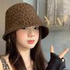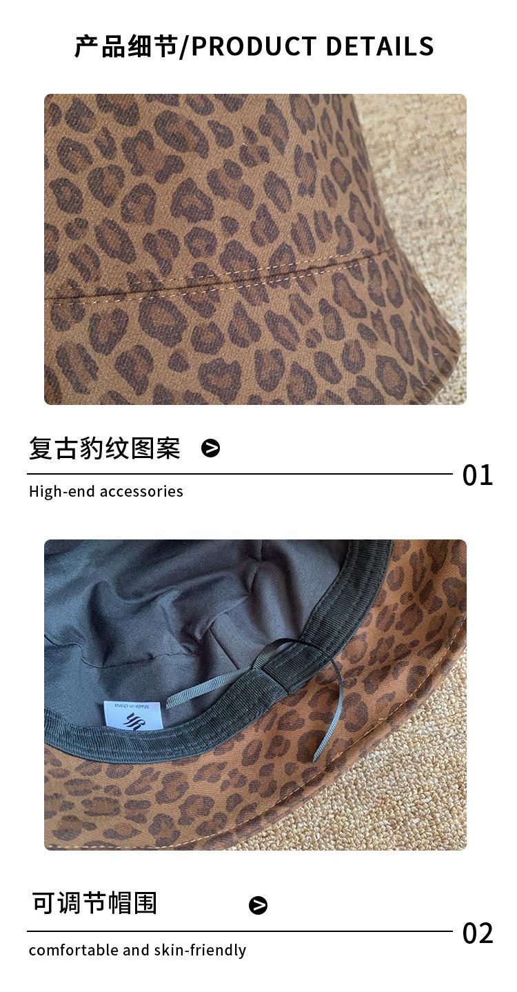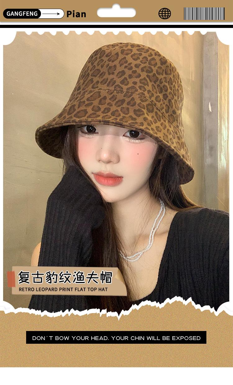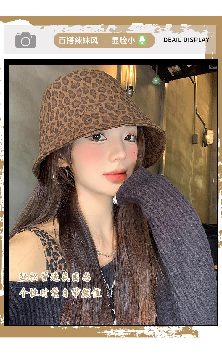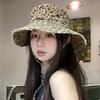 Sombrero de cubo retro americano con estampado de leopardo para mujer, verano, estilo chica picante, moderno, versátil, muestra una cara pequeña, sombrero de cubo, sombrero para el sol, sombrero protector solar