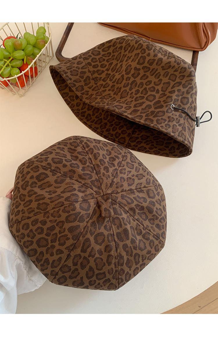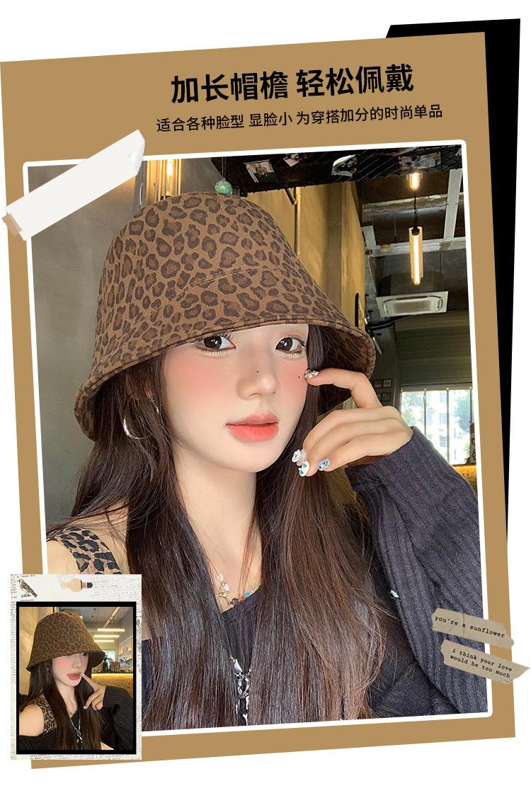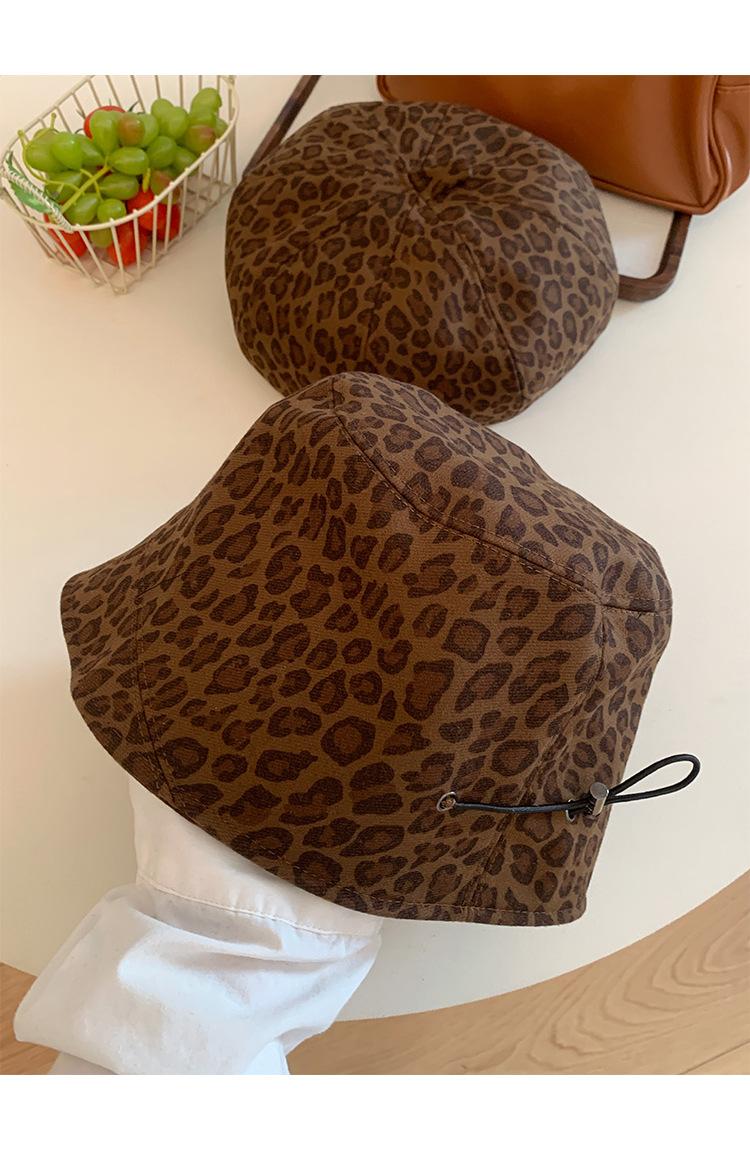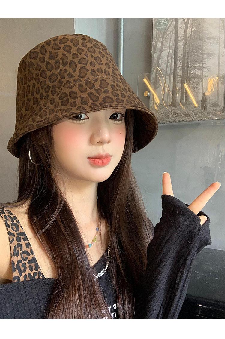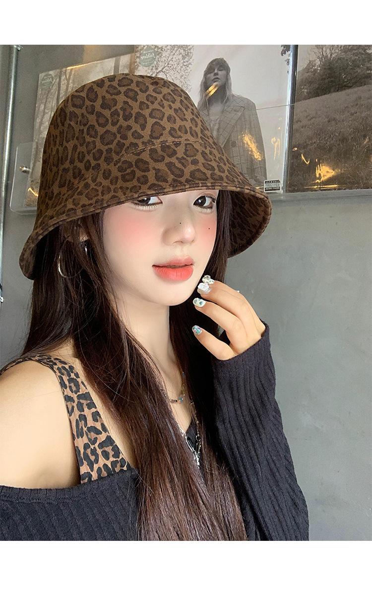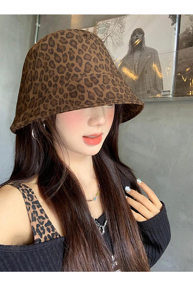 Sombrero de cubo retro americano con estampado de leopardo para mujer, verano, estilo chica picante, moderno, versátil, muestra una cara pequeña, sombrero de cubo, sombrero para el sol, sombrero protector solar