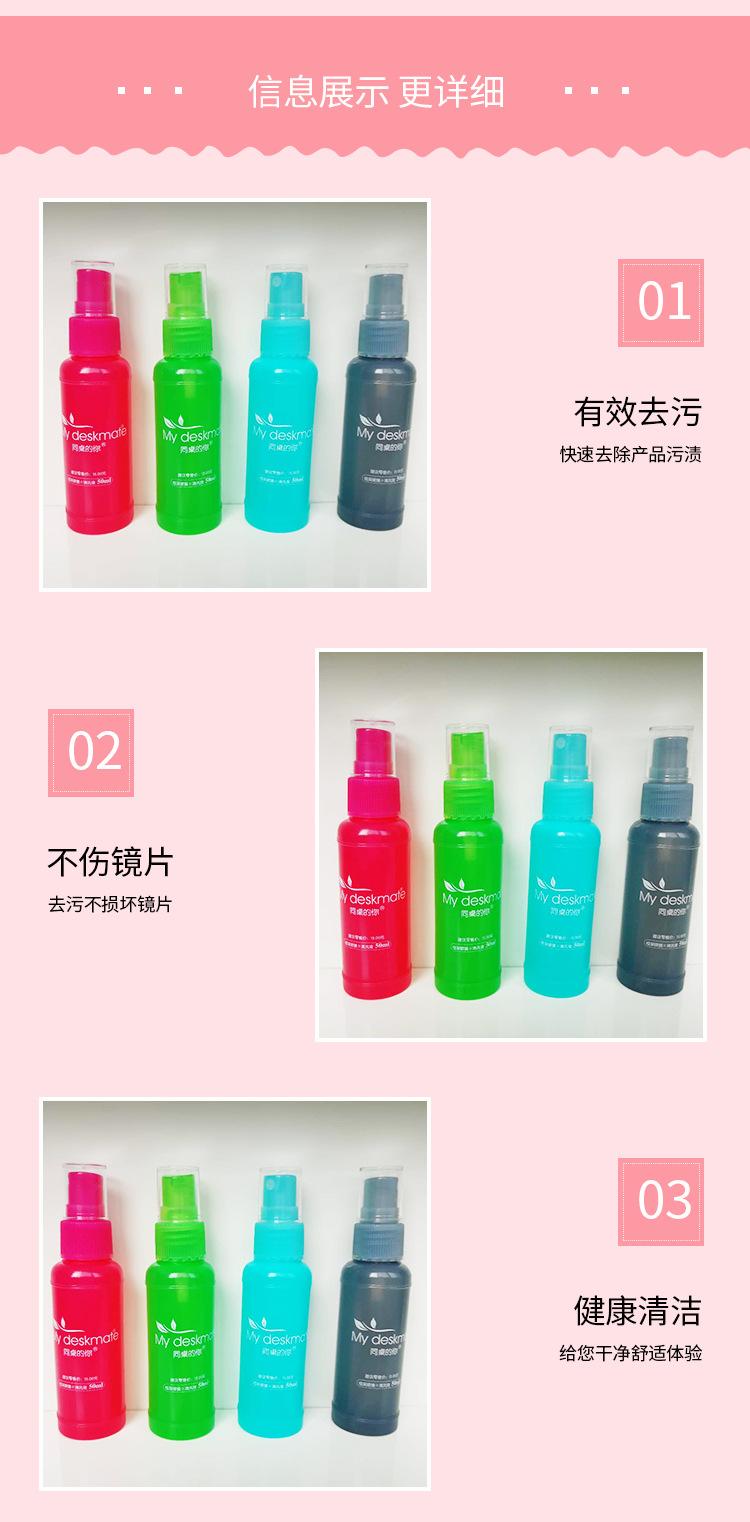 Cómo usar: Rocíe en ambos lados de la lente, limpie con un paño para lentes, solo limpie ligeramente sin agua, y quedará brillante y limpio al instante sin dejar ningún residuoMarcas de agua
