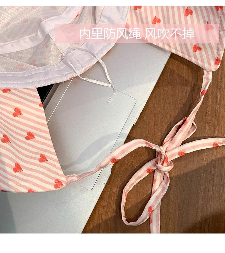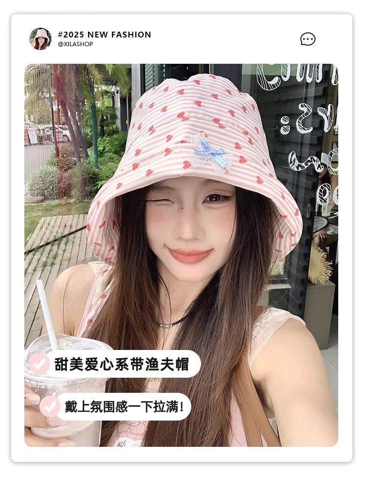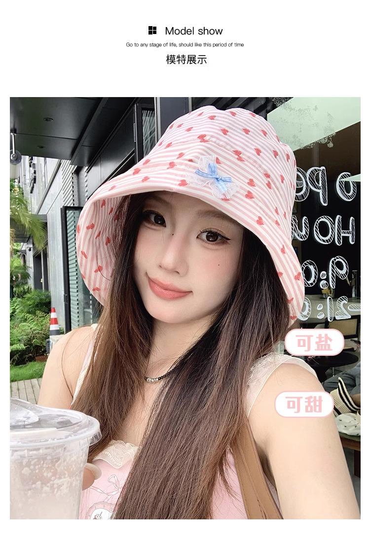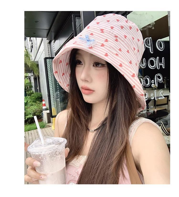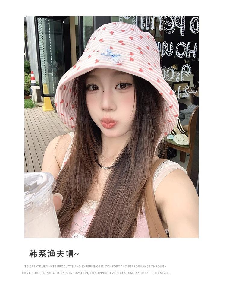 Sombrero de Pescador Rayado Sweet Love para Mujer Verano Estilo Coreano Combinable Muestra el Rostro Pequeño Sombrero de Cubo Parasol para Exteriores