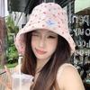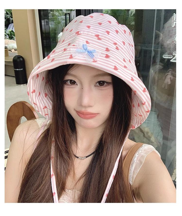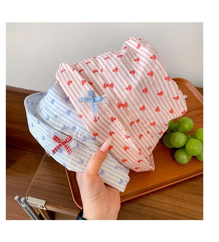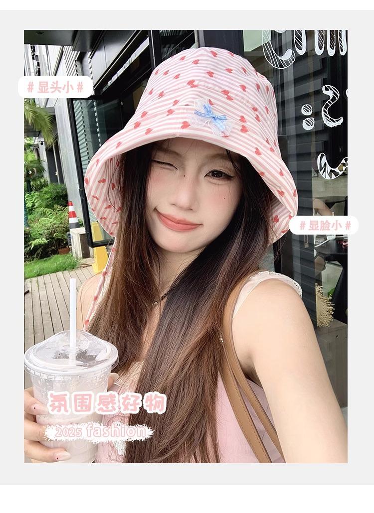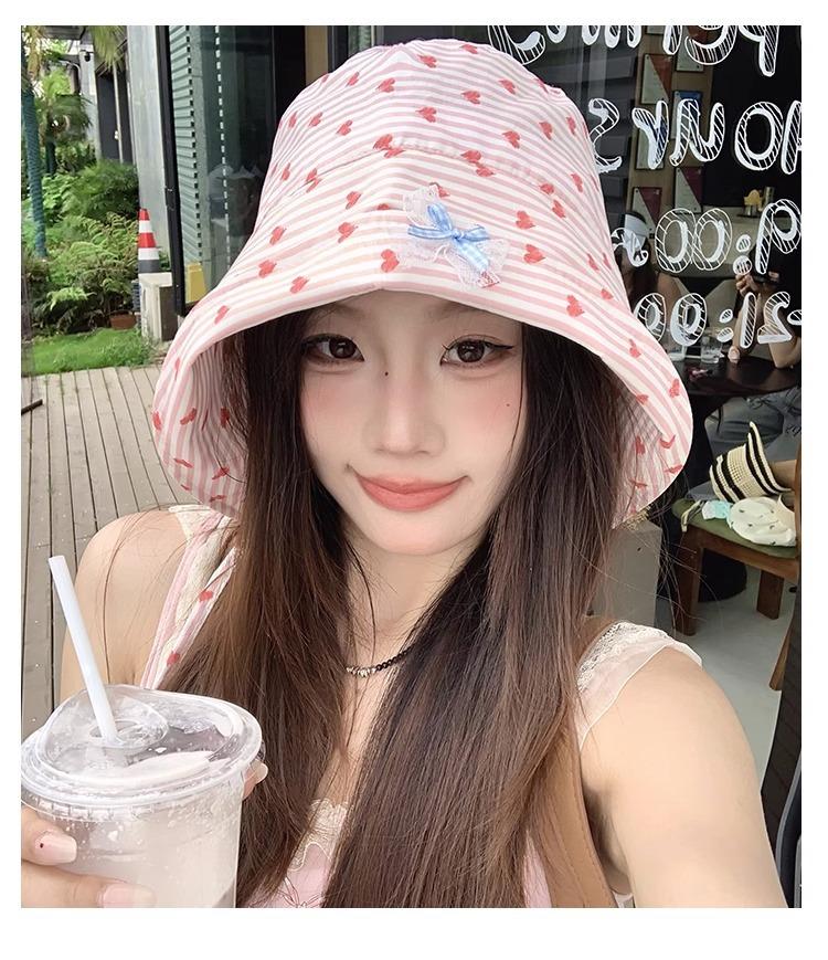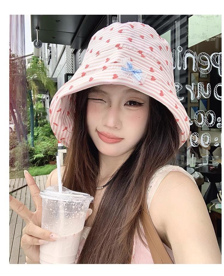Sombrero de Pescador Rayado Sweet Love para Mujer Verano Estilo Coreano Combinable Muestra el Rostro Pequeño Sombrero de Cubo Parasol para Exteriores