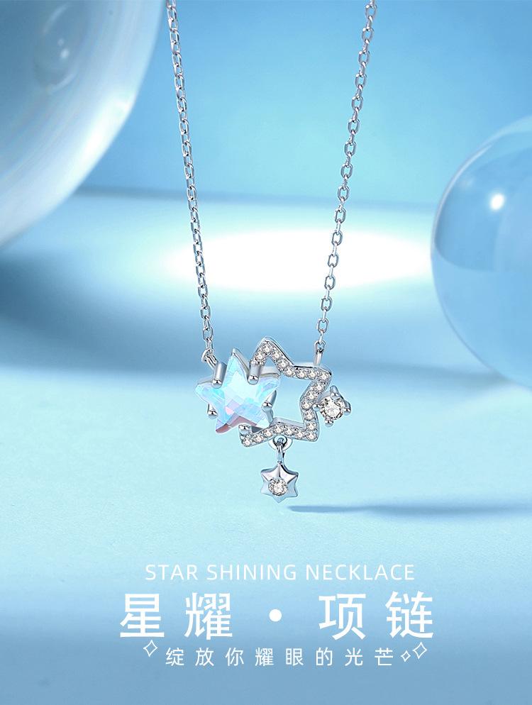 Compra Verano nuevo collar Xingyao femenino plata esterlina s925 nicho niña Corazón estrella cadena clavícula micro incrustado colgante de piedra mágica al por mayor en Joom.pro