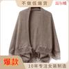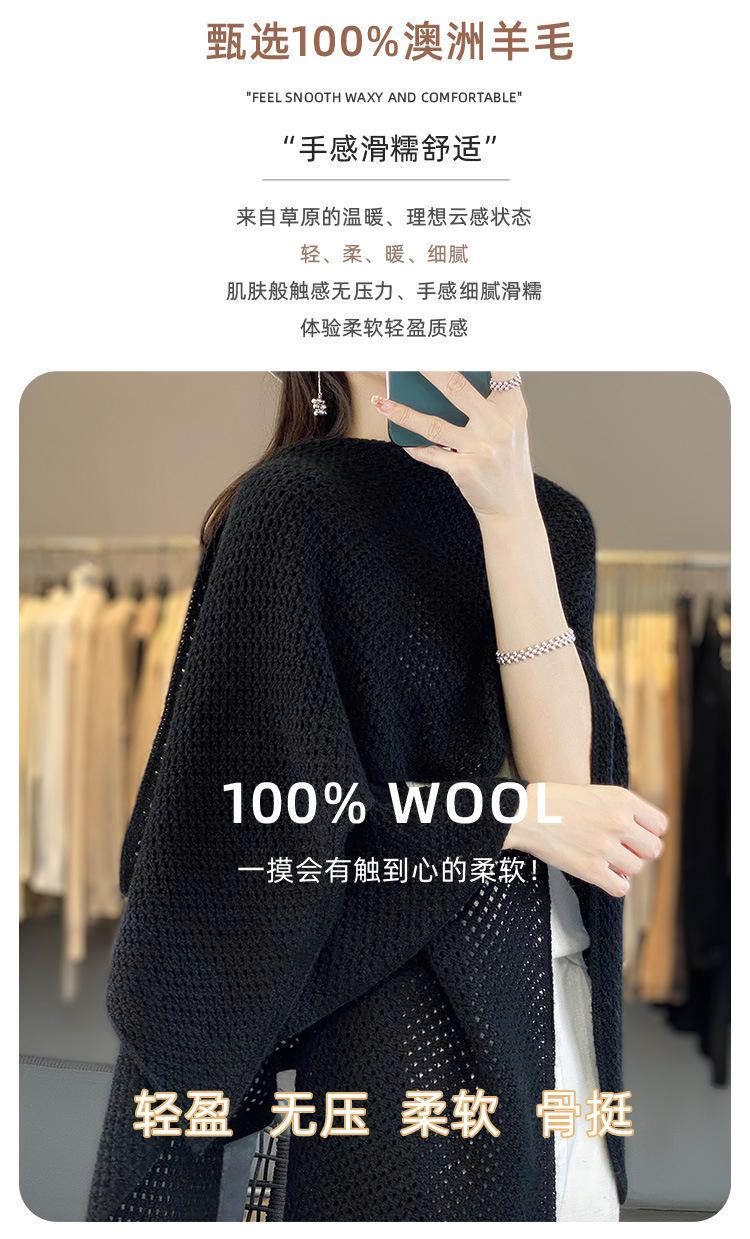 Abrigo de Lana Nueva al por Mayor Chal para Mujer Largo Medio Suelto Ropa Exterior Top Poncho Calado Cárdigan Elegante de Punto
