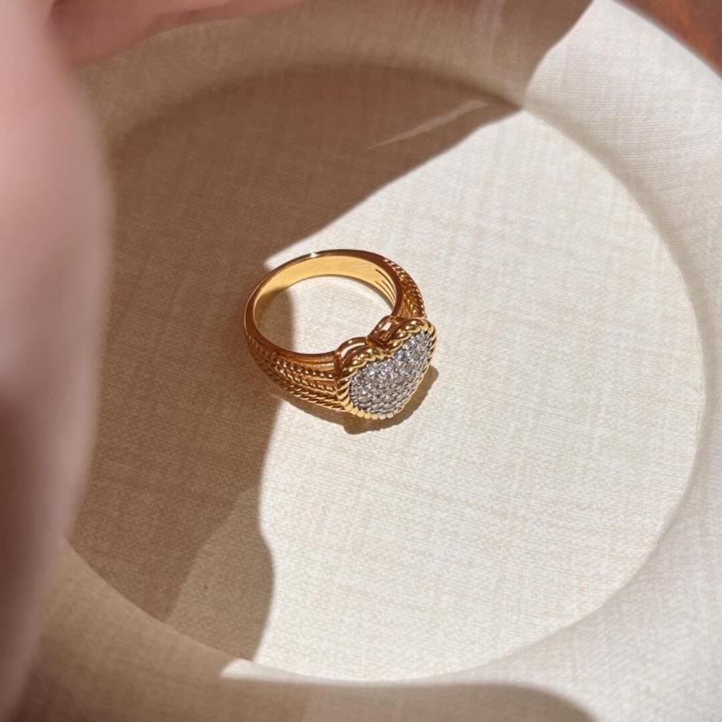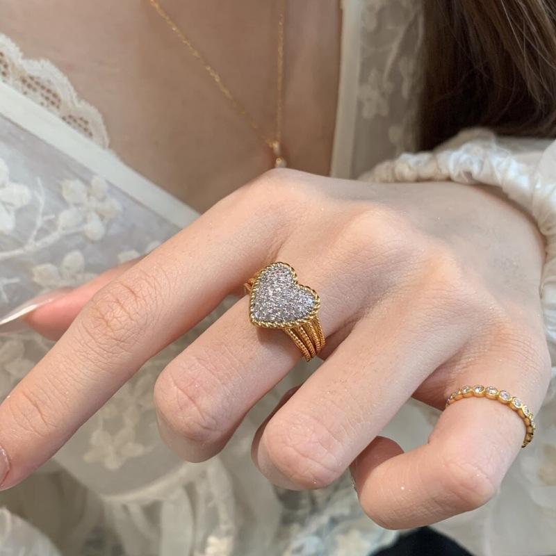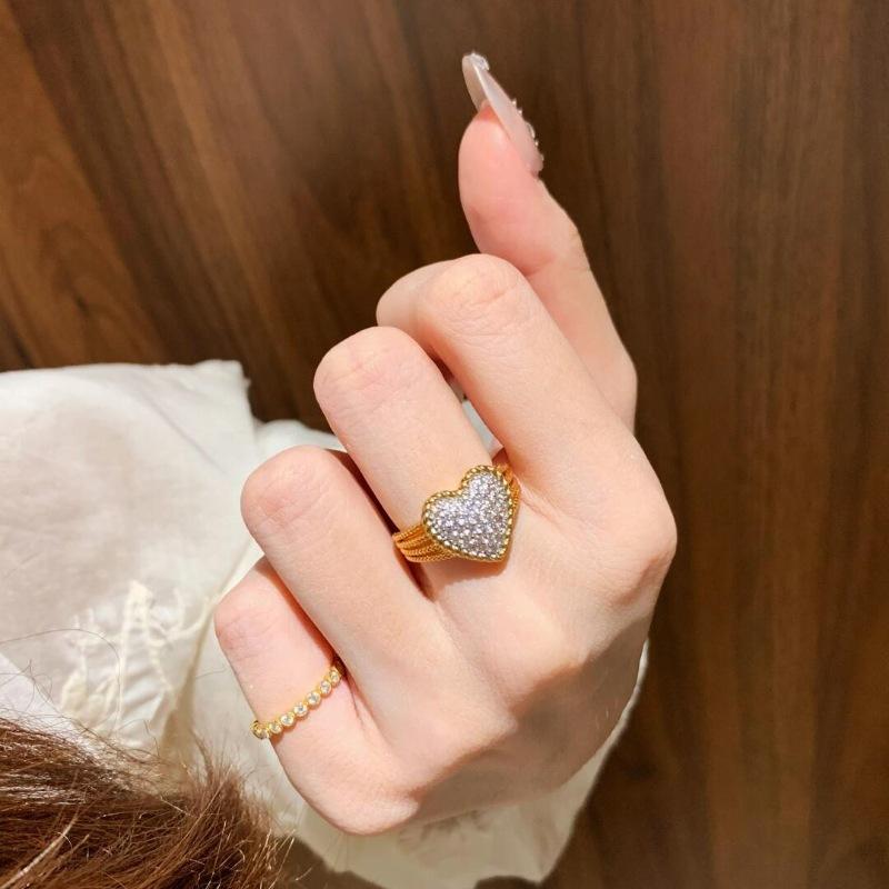 Anillo Vintage Francés Retro con Corazón Calado Incrustado de Diamantes Diseño Nicho Ratán Estilo Mid-Century Anillo para el Dedo Índice