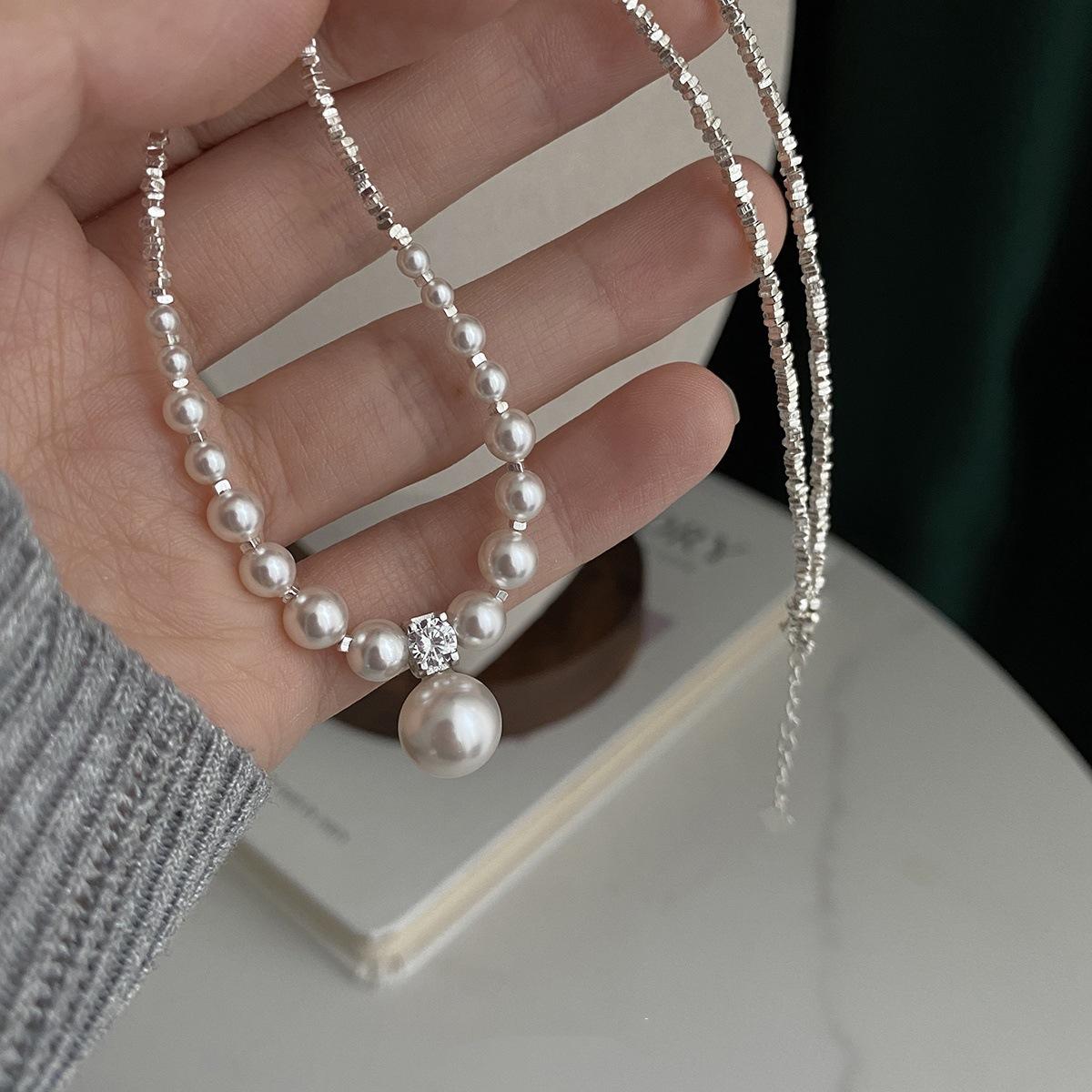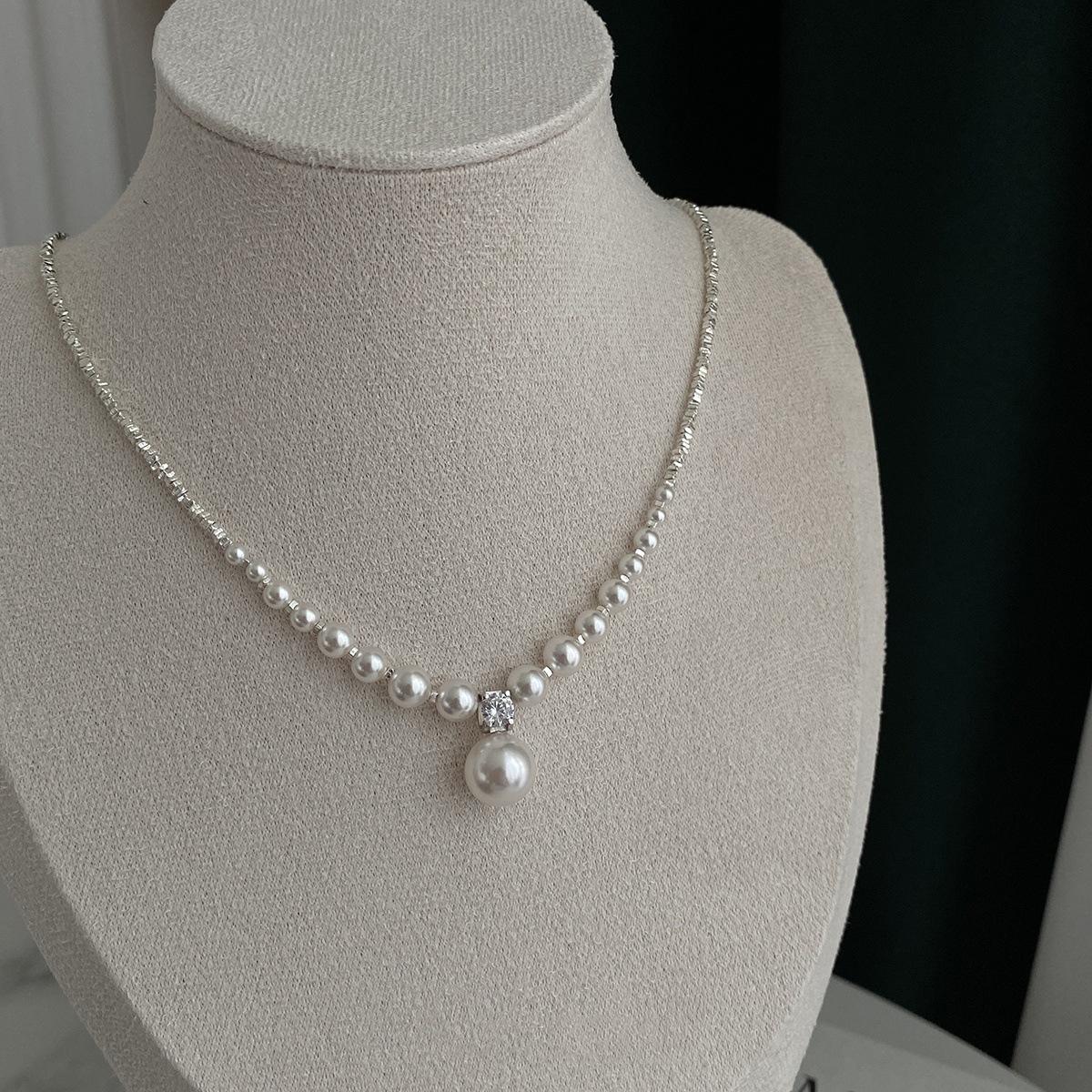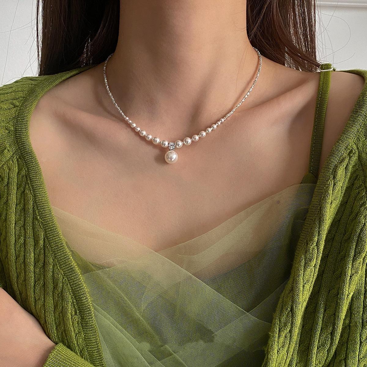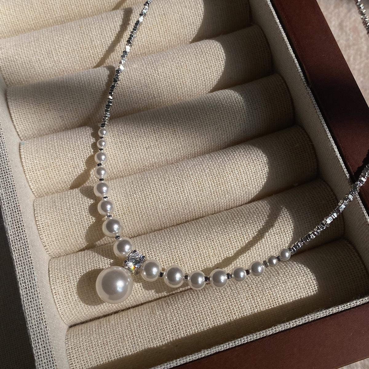 Collar de perlas de azúcar Super Fairy para mujer, cadena de clavícula con perlas degradadas de plata rota, diseño de nicho, estilo vintage francés de alta gama.