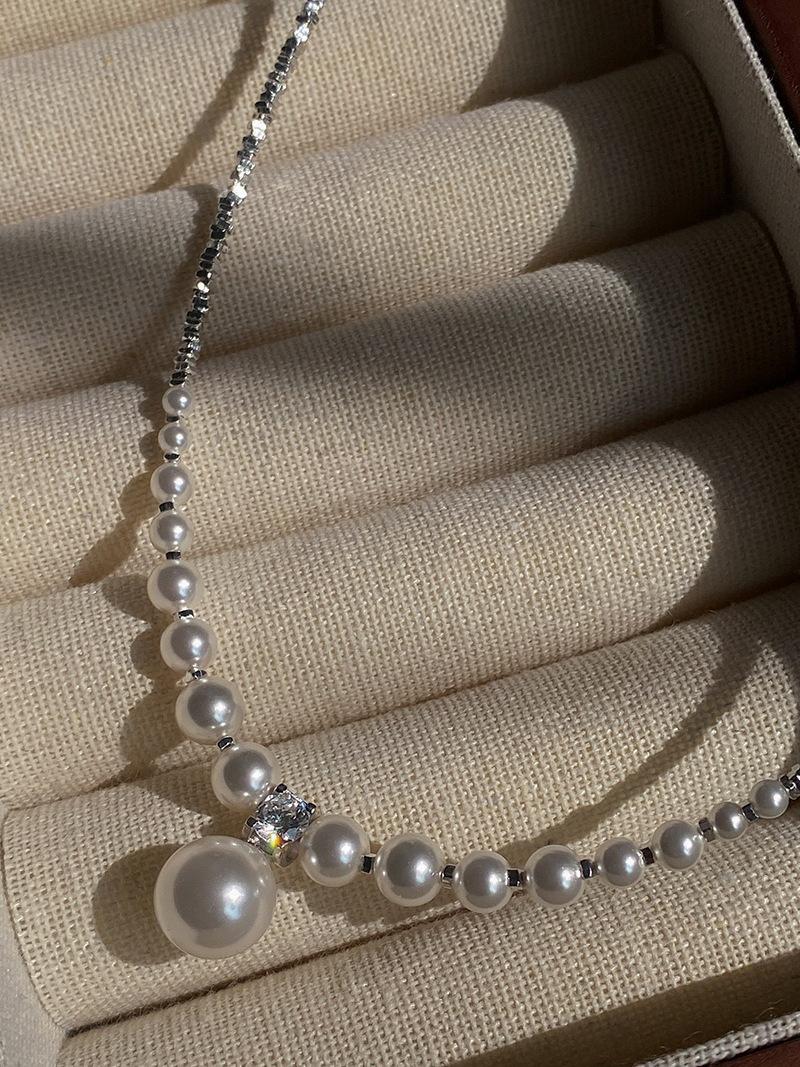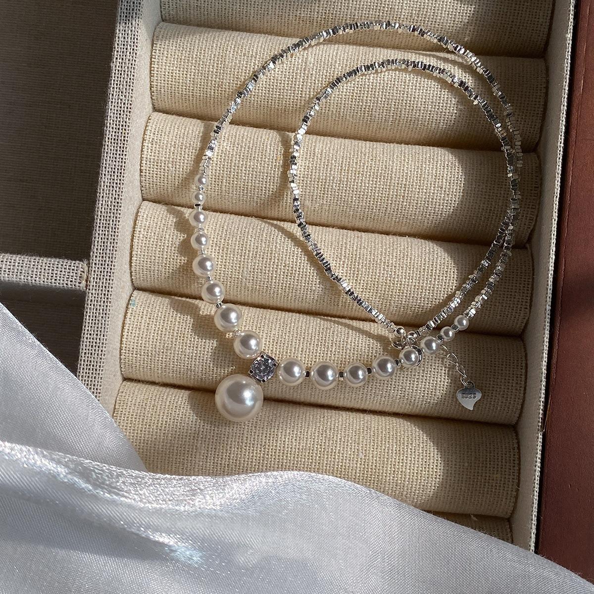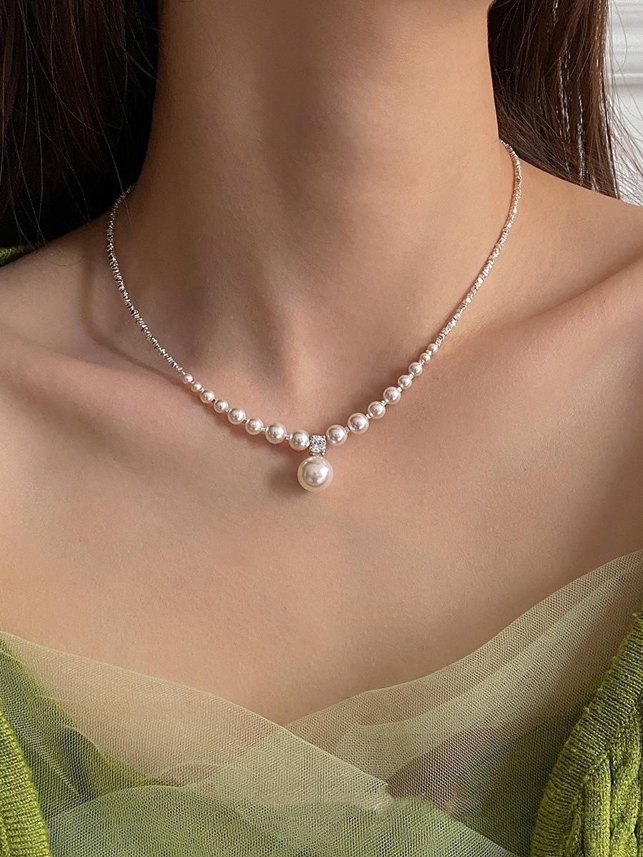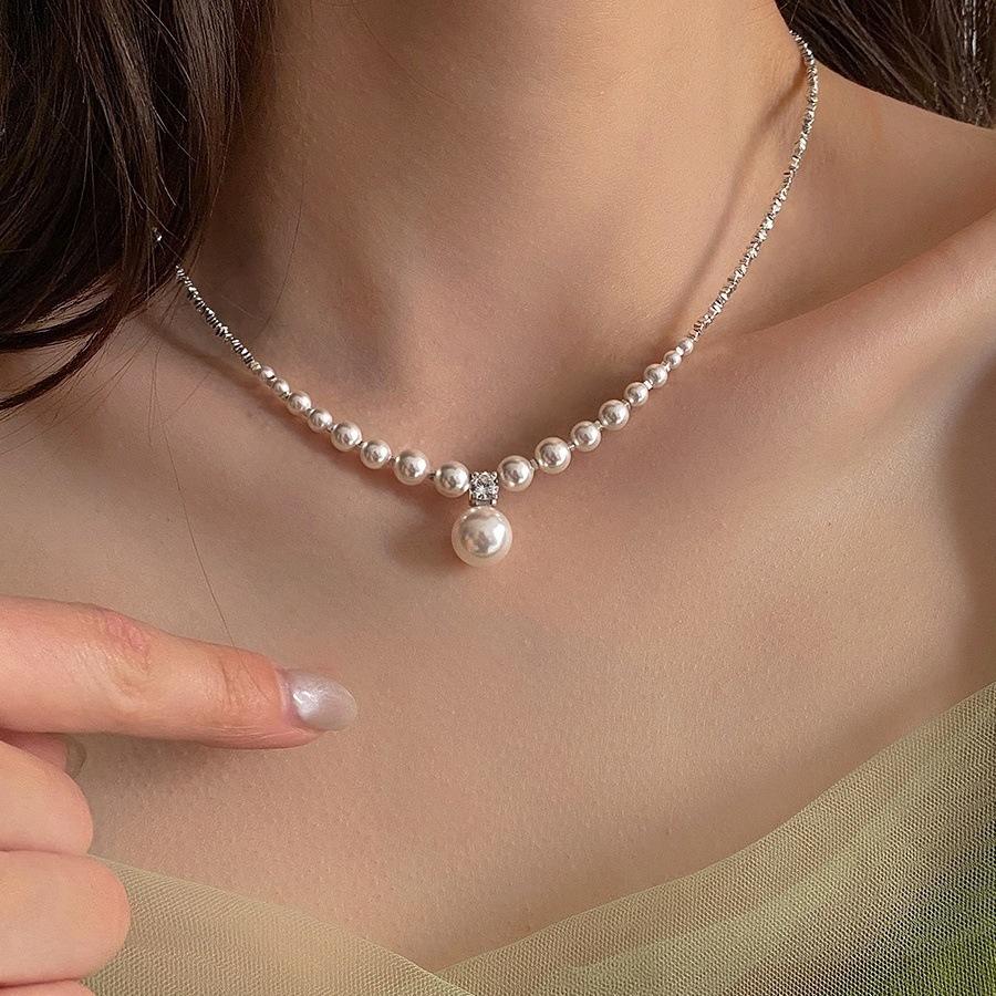 Collar de perlas de azúcar Super Fairy para mujer, cadena de clavícula con perlas degradadas de plata rota, diseño de nicho, estilo vintage francés de alta gama.