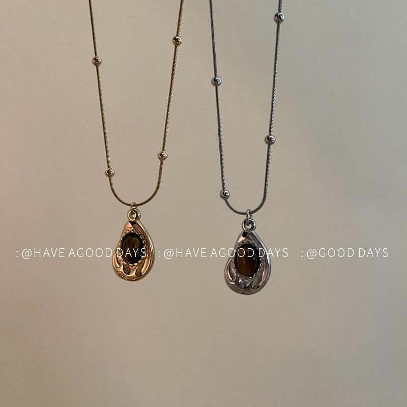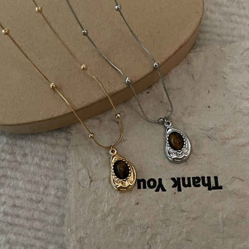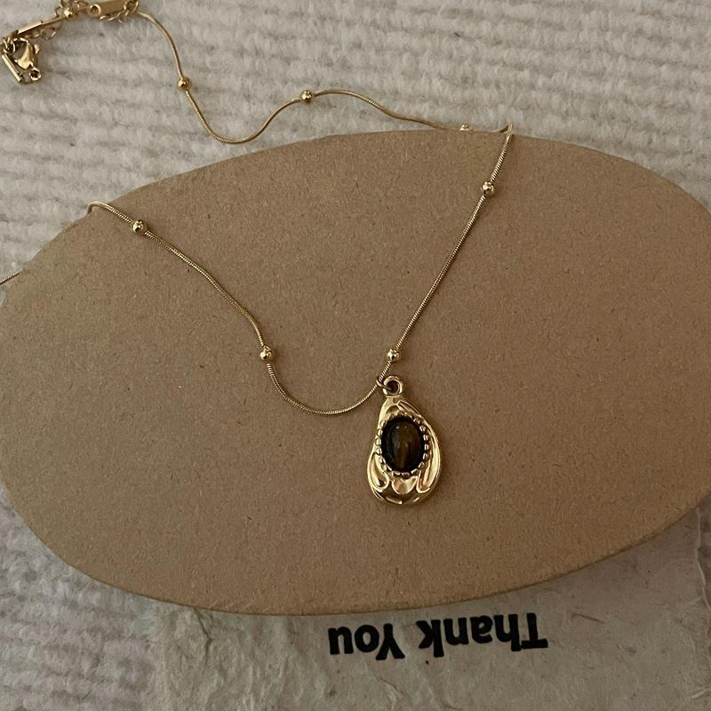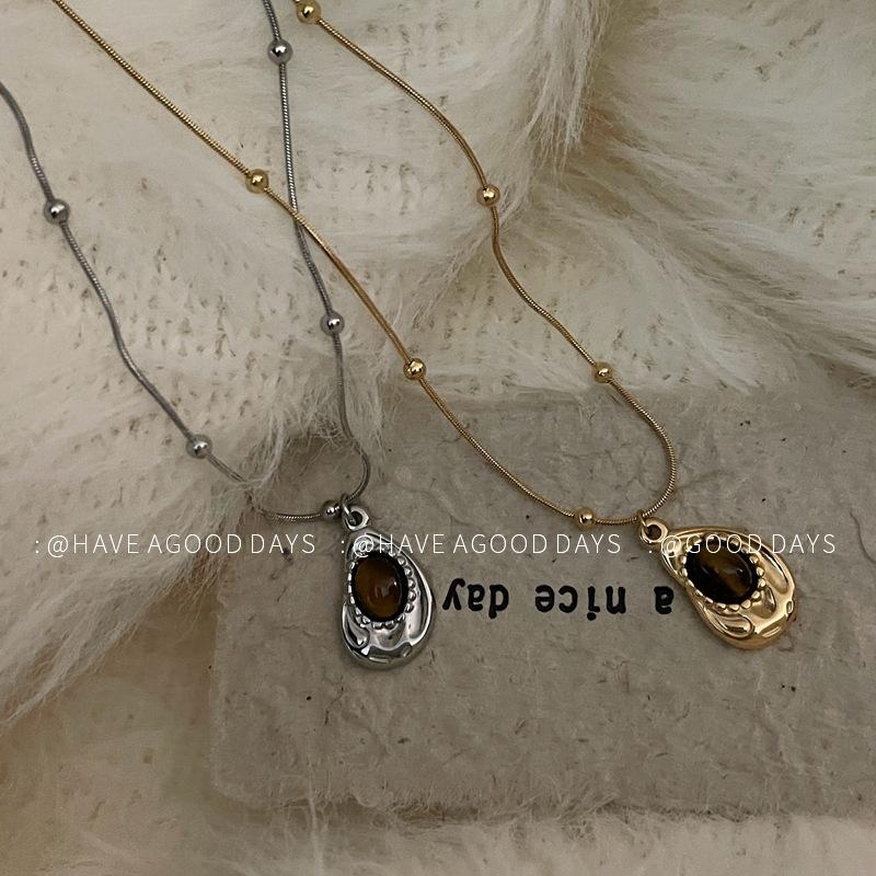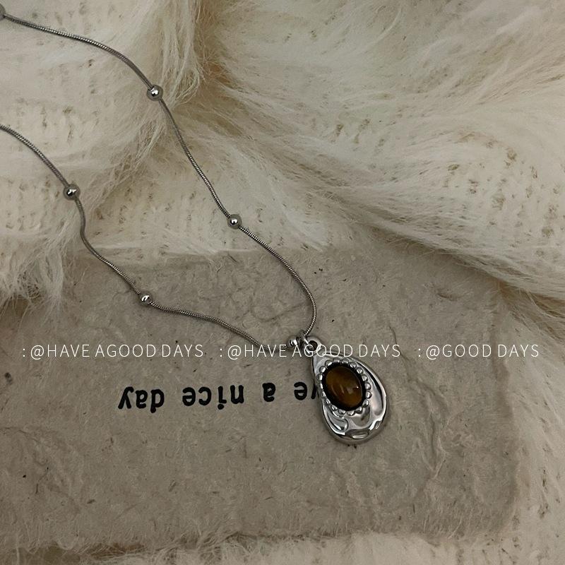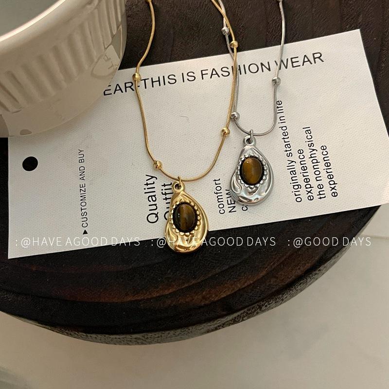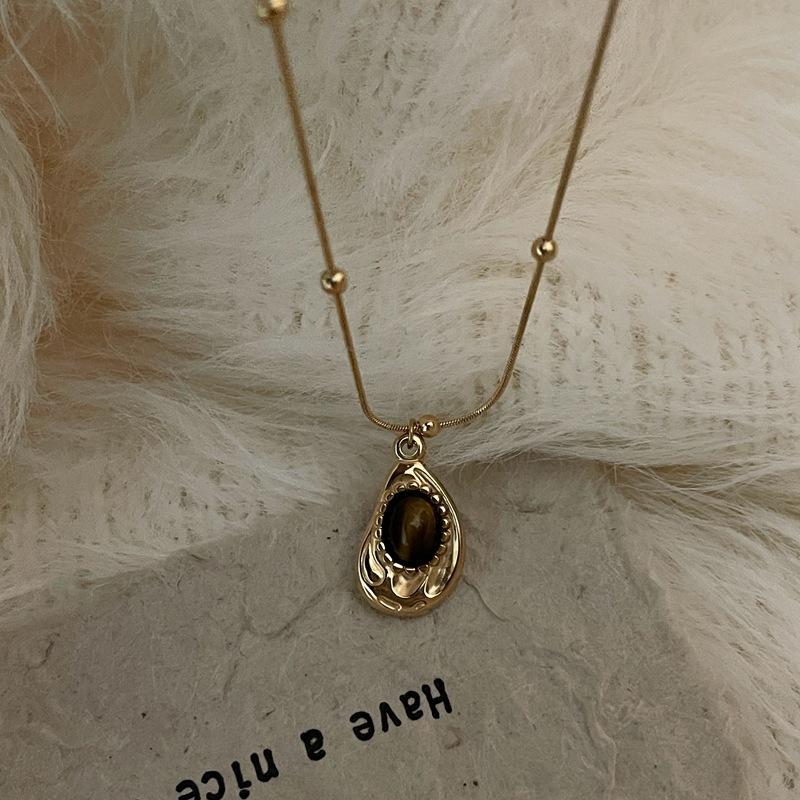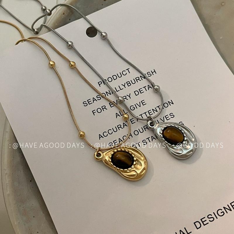 Collar Francés Retro de Alta Gama con Piedra Ojo de Tigre, Elegante y con Estilo, Cadena de Clavícula de Lujo Ligero, Gargantilla Moderna y Sencilla, Nicho
