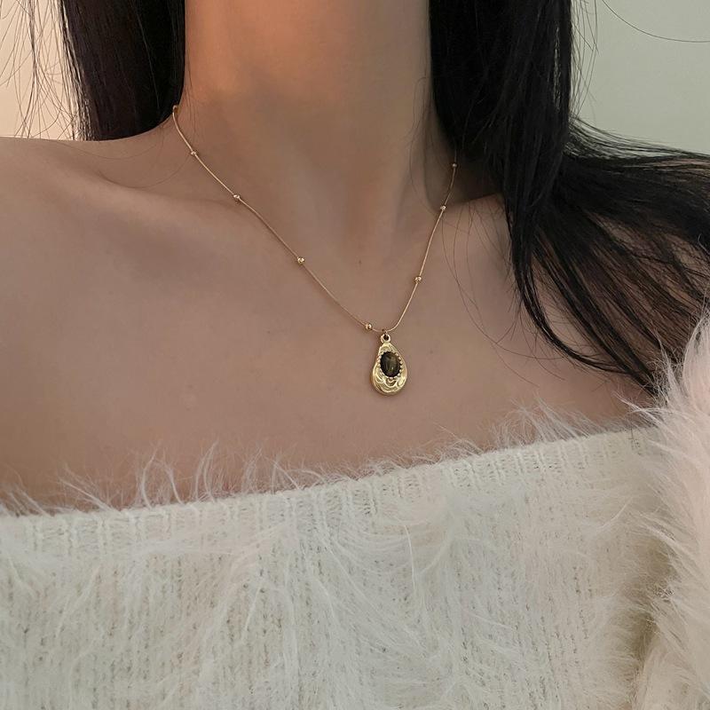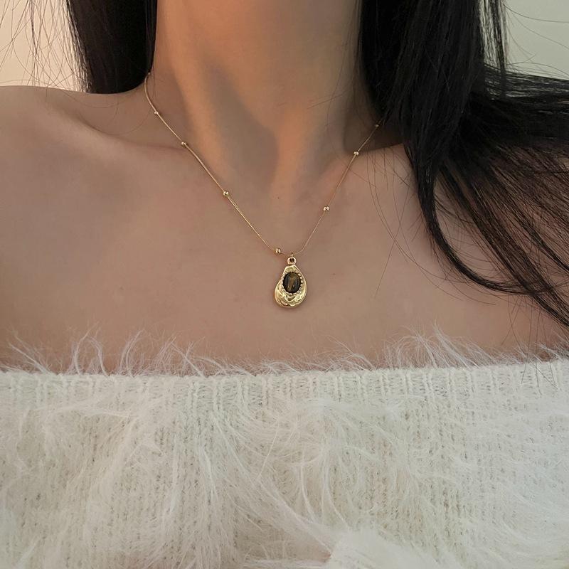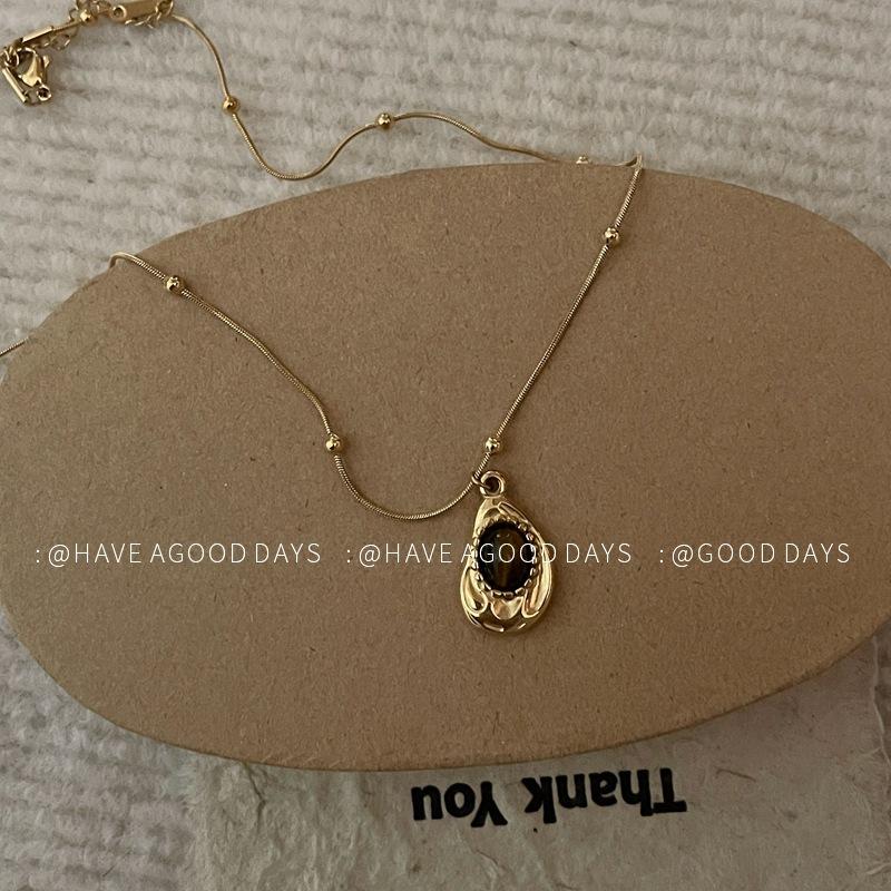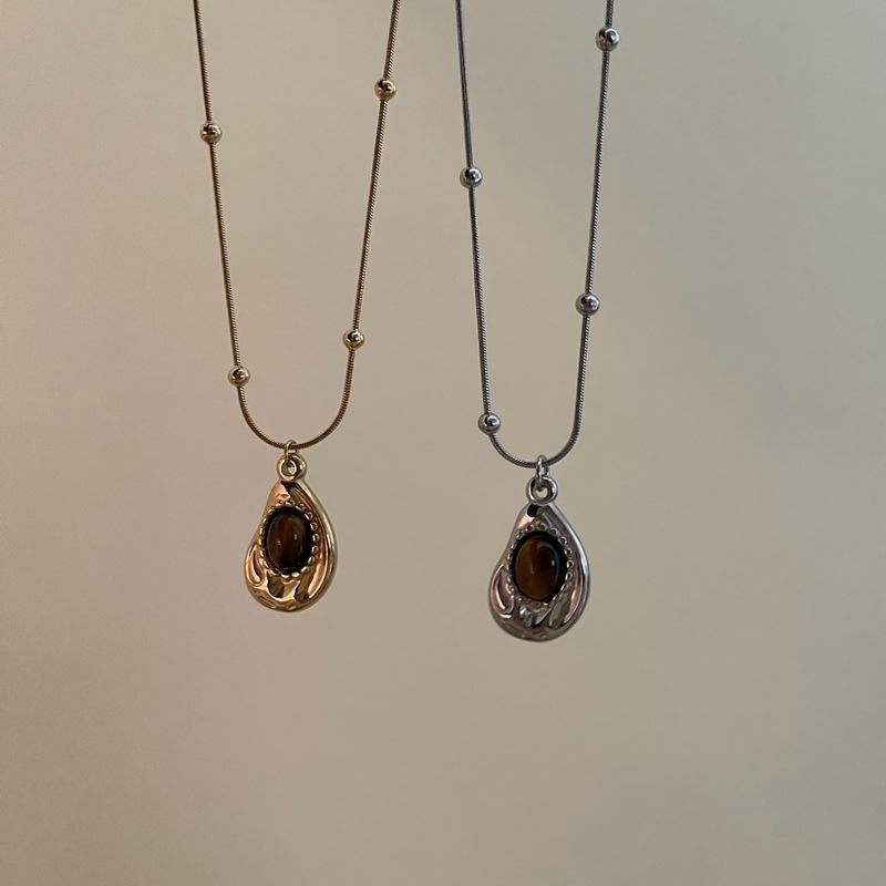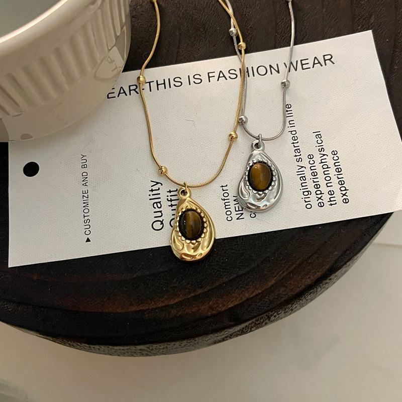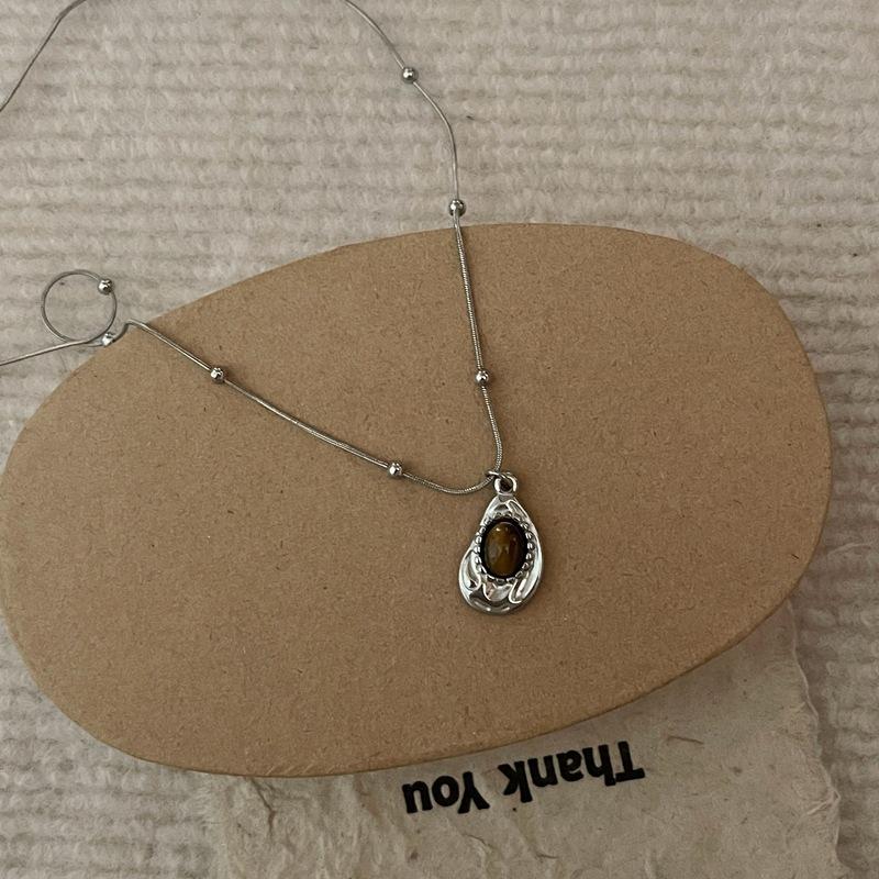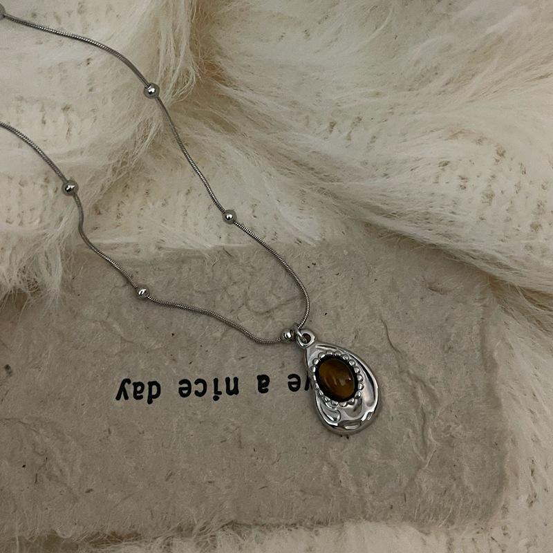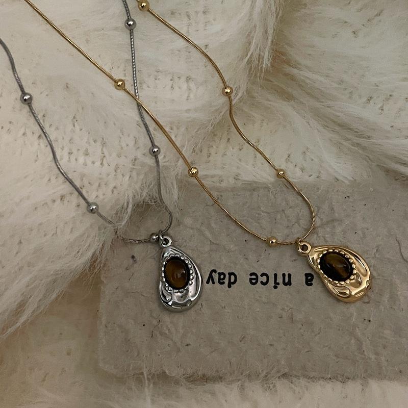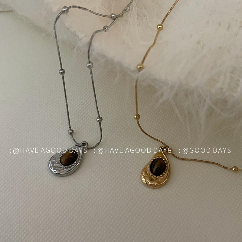 Collar Francés Retro de Alta Gama con Piedra Ojo de Tigre, Elegante y con Estilo, Cadena de Clavícula de Lujo Ligero, Gargantilla Moderna y Sencilla, Nicho