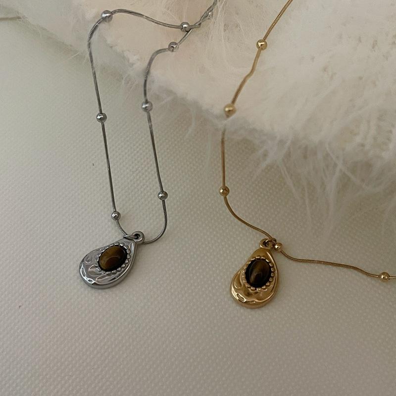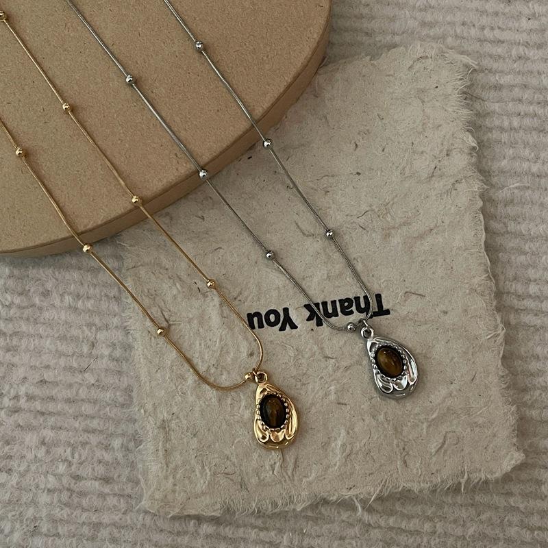 Material: Cobre, piedra de ojo de tigre, oro real galvanizado, platino galvanizado.
