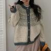 Cárdigan de Punto Jacquard Retro de Otoño/Invierno para Mujer 2025 Nuevo Suéter Holgado Lazy Abrigo Top