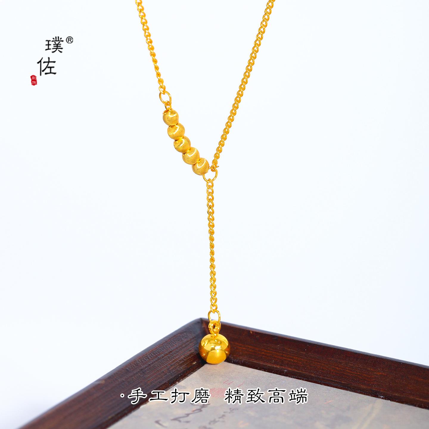 Puzuo Joyería de Oro Mismo Estilo Oro Arena Cepillado Responsivo Ojo de Gato Borla Collar Y Cadena Clavícula Francesa de Alta Gama