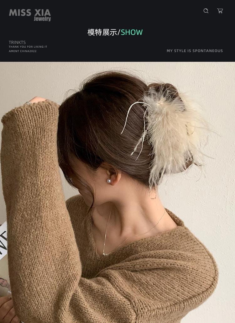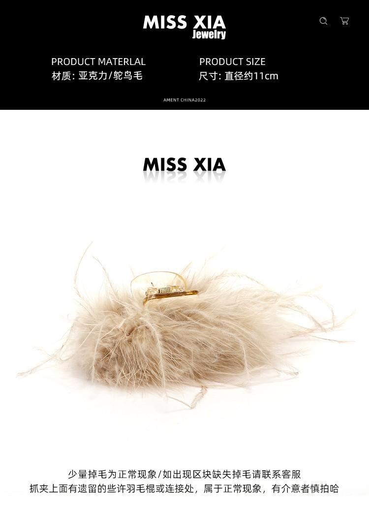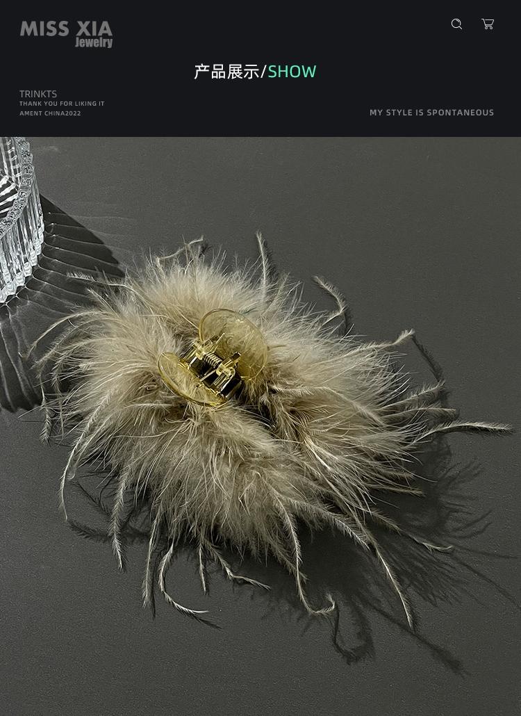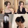 Pinza para el cabello de pluma de avestruz negra para mujer, Pinza para el cabello para la parte posterior de la cabeza, Pinza de tiburón peluda, Horquilla elegante Accesorio para el cabello