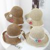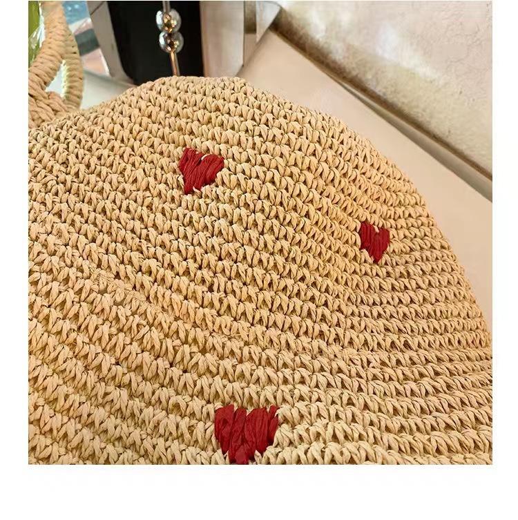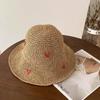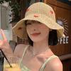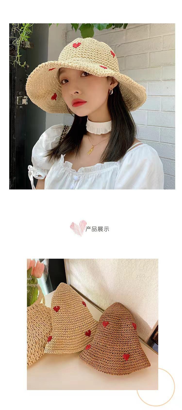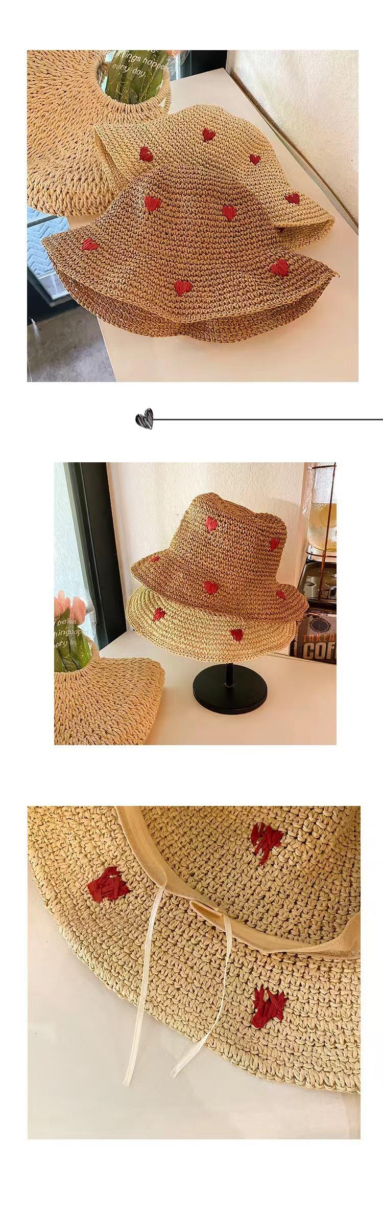 Sombrero de Paja para Mujer con Protección Solar, Ala Ancha, Sombrero de Cubo con Bordes Ondulados, Sombrero de Pescador Corazón Rojo Fresco Estilo Francés, Sombrero para el Sol