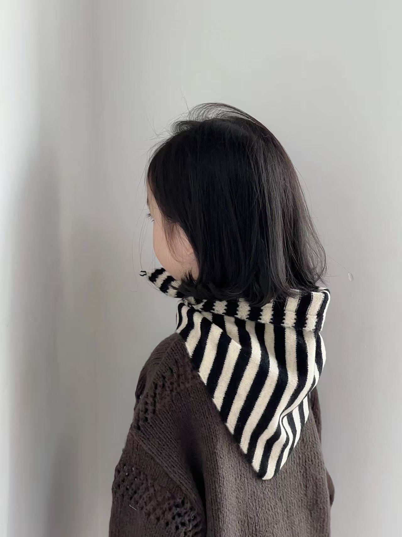 Bufanda Triangular Rayada para Niños Chal Pequeño Otoño Invierno Moda Coreana Elegante Pañuelo para la Cabeza Ropa Exterior Bufanda Tejida Bufanda Cálida para el Cuello