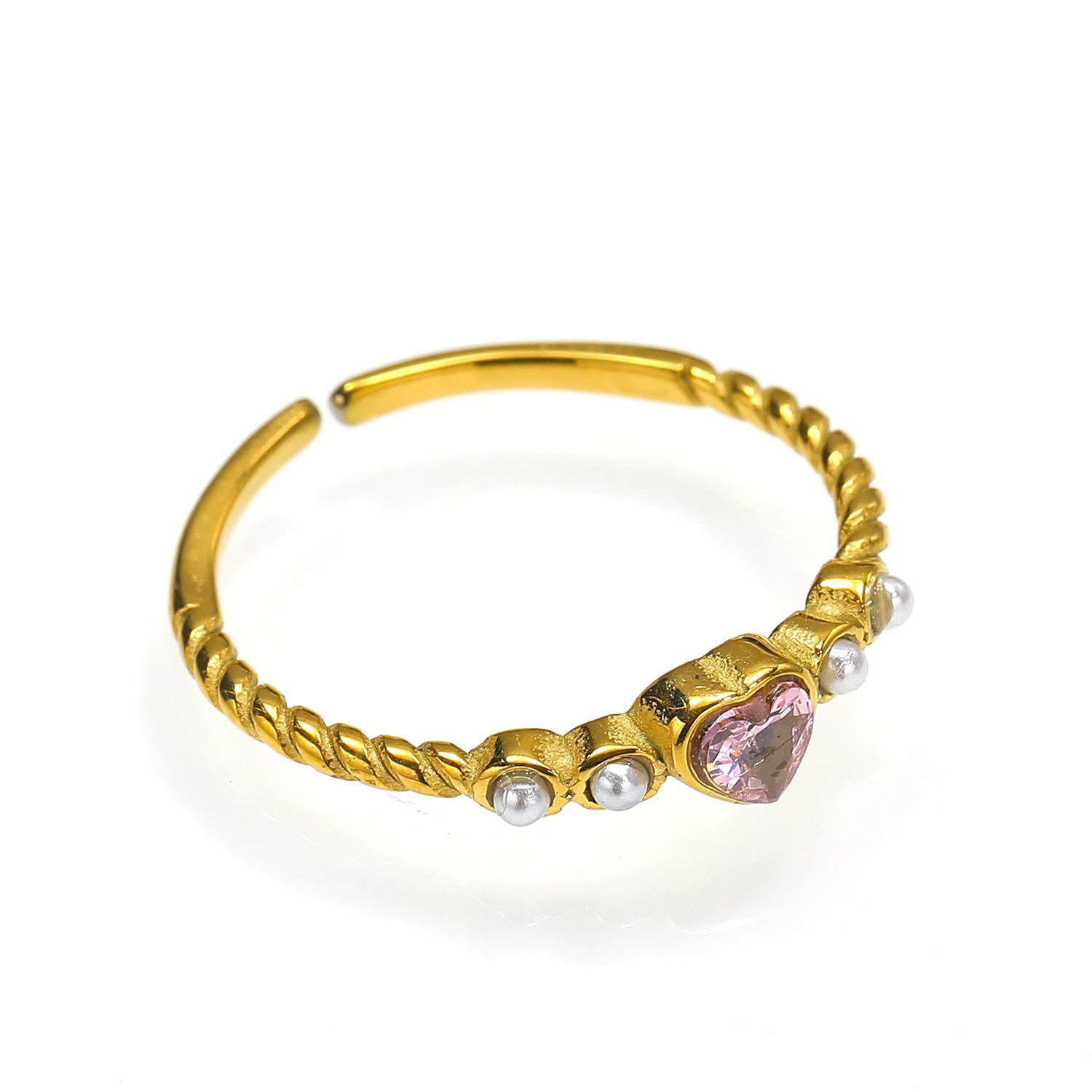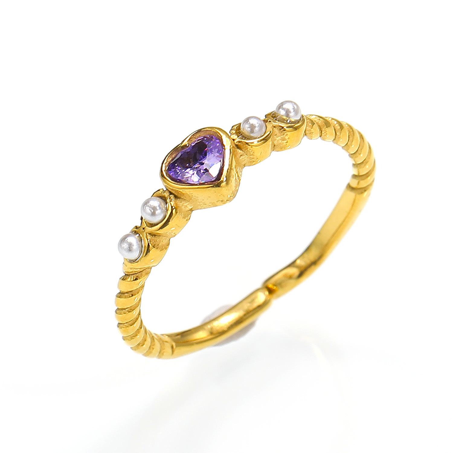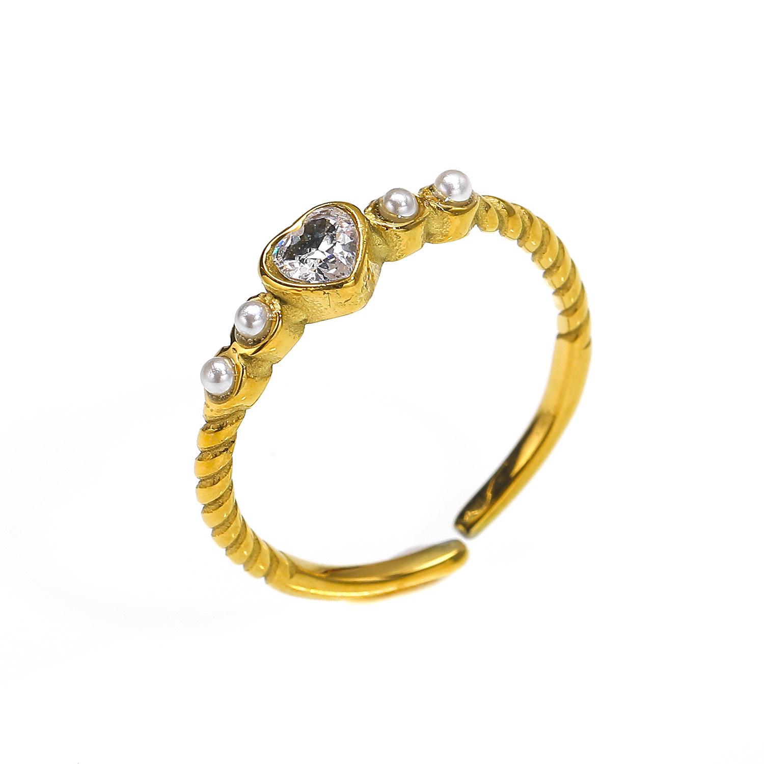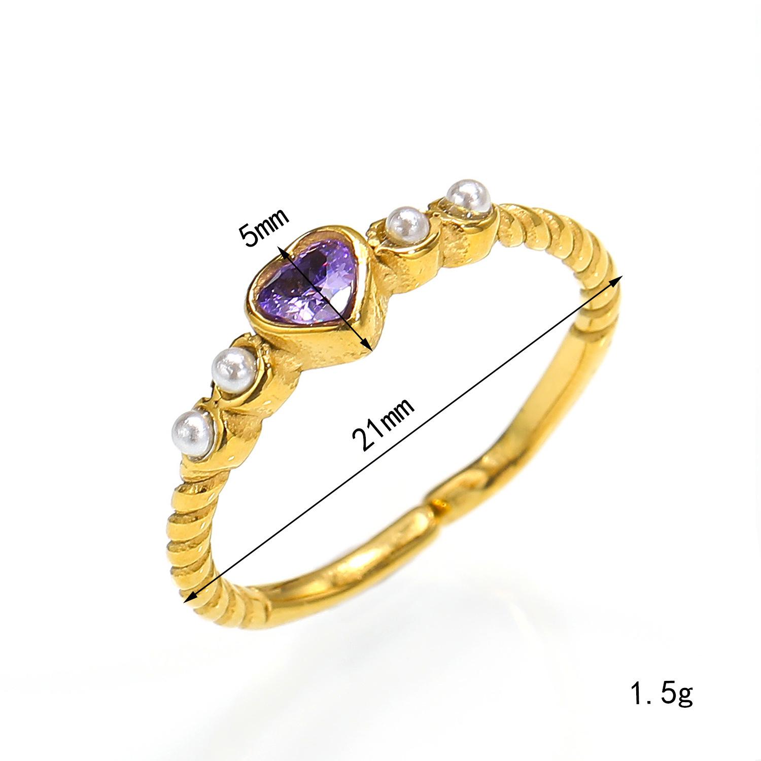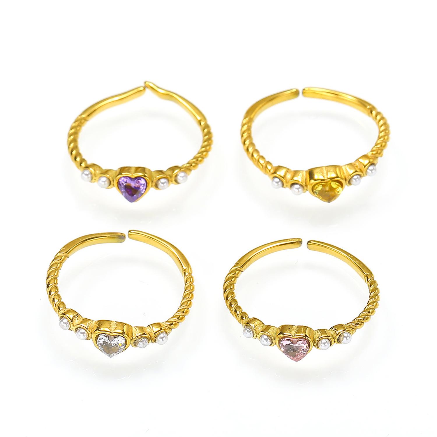 Anillo Japonés y Coreano Ins Simple Corazón Zircón Colorido para Mujer, Diseño de Viajero Moderno Versátil Acero Titanio Anillo Abierto
