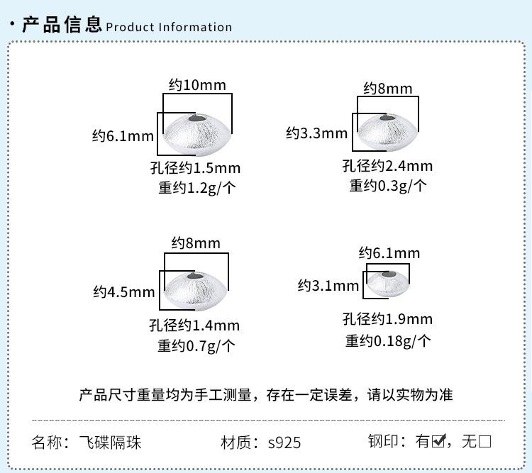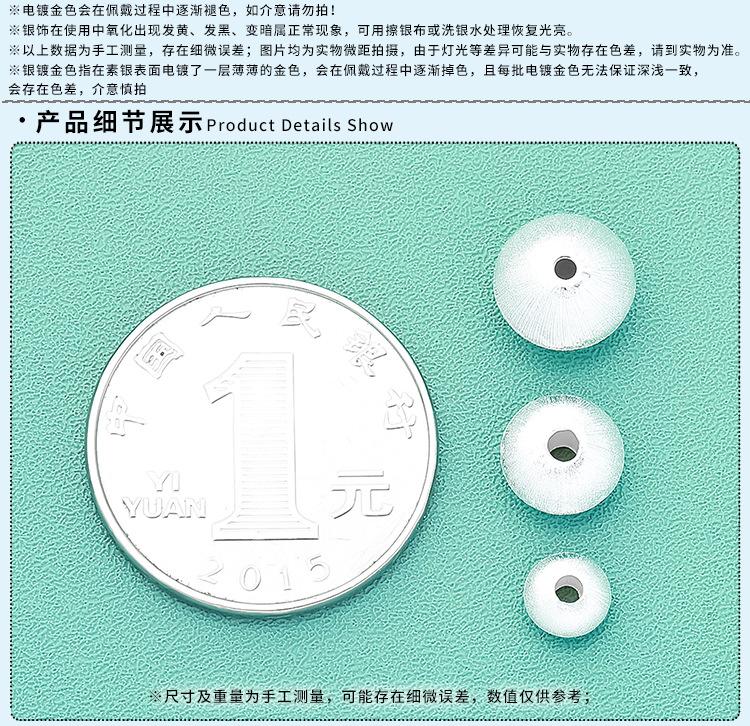 Plata Esterlina S925 Seiko Plata Brillante Cepillada Cuentas de Platillo Volador Cuentas Planas Espaciadoras DIY Pulsera de Cristal con Cuentas Accesorios de Plata