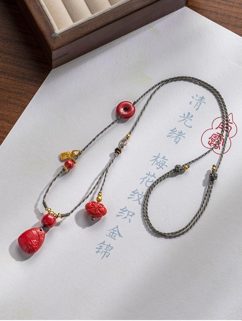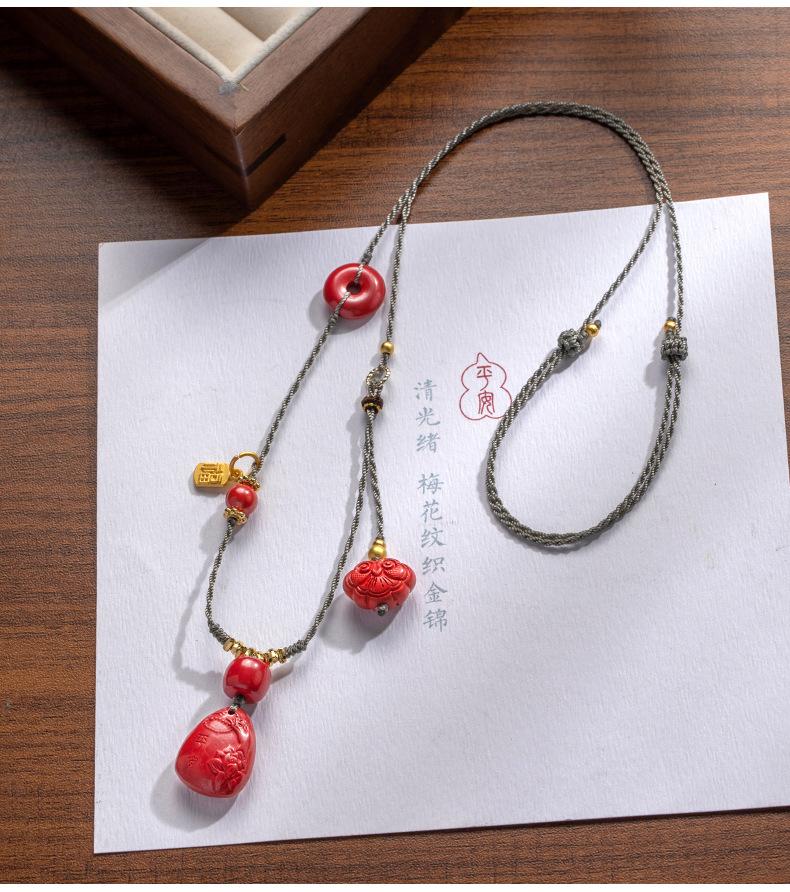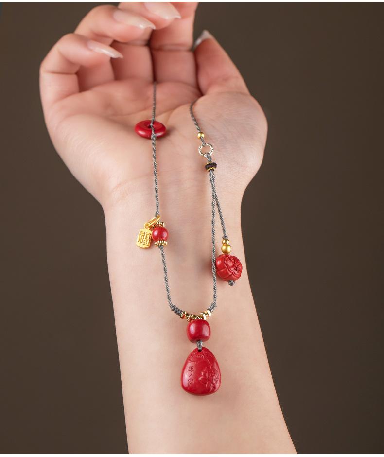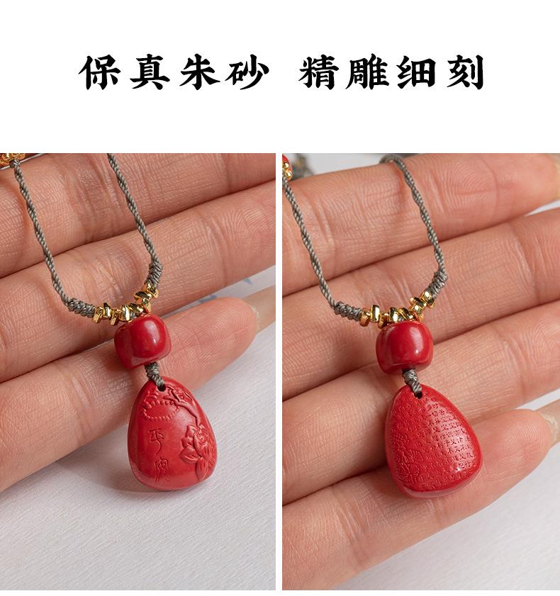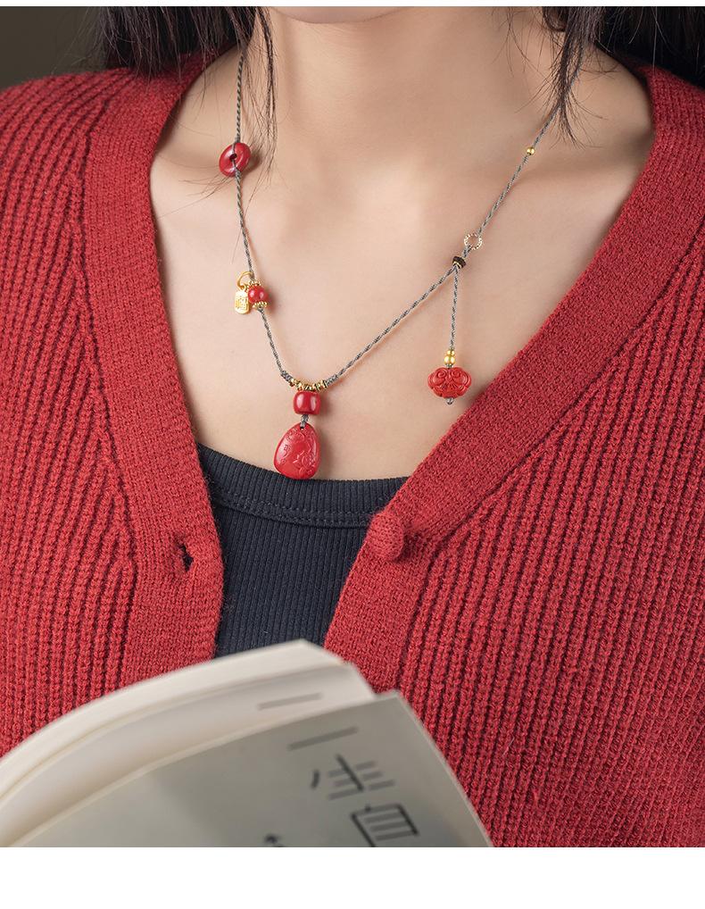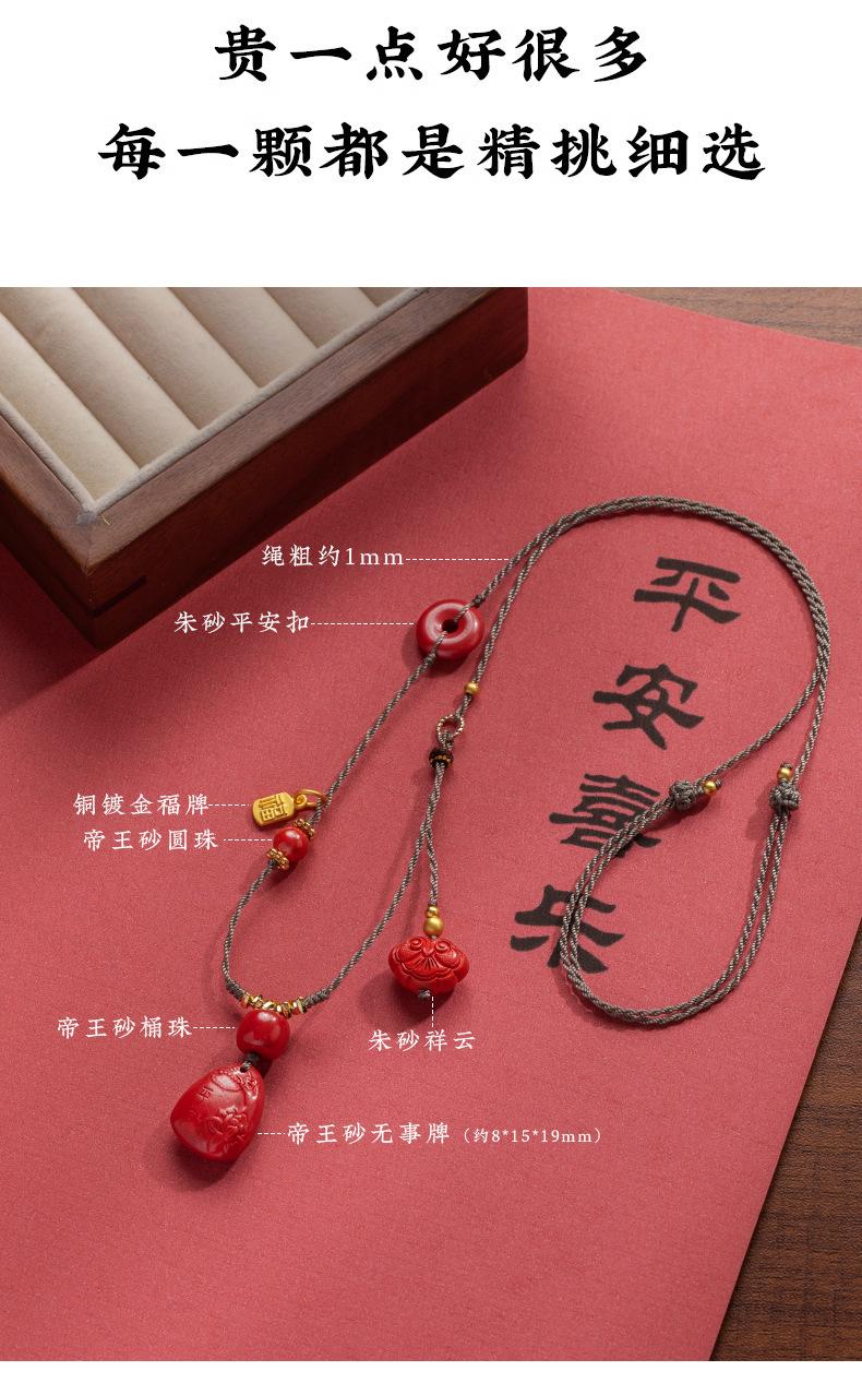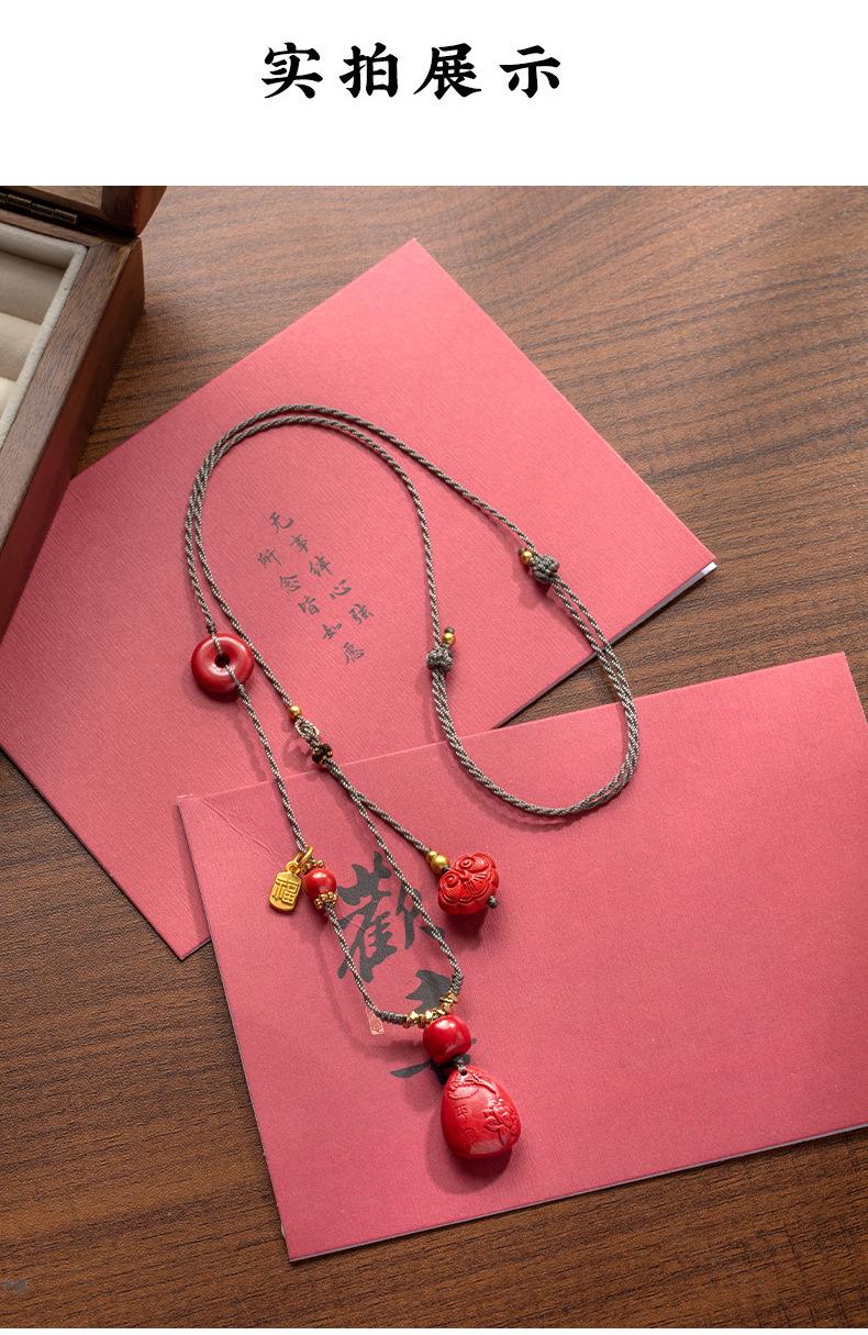 Colgante de cinabrio natural Guofeng Ping An Xiangyun cadena para suéter marca de la suerte este año colgante cadena clavicular collar