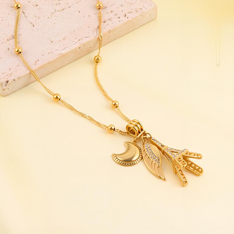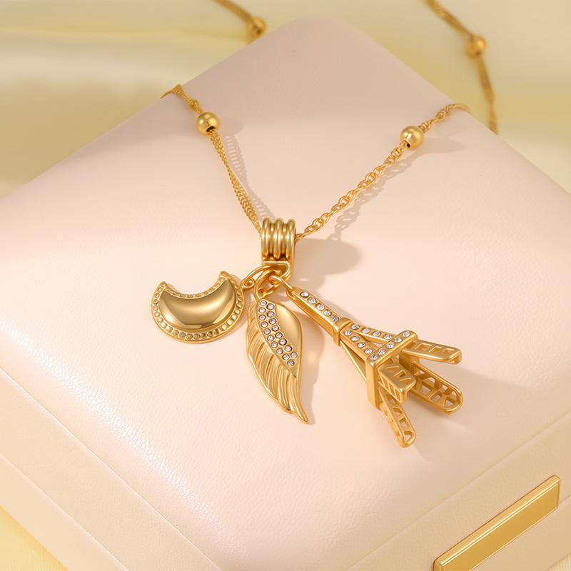 Collar transfronterizo de acero de titanio collar colgante retro francés Torre Eiffel collar de nicho de lujo ligero para mujer collar de alas de ángel