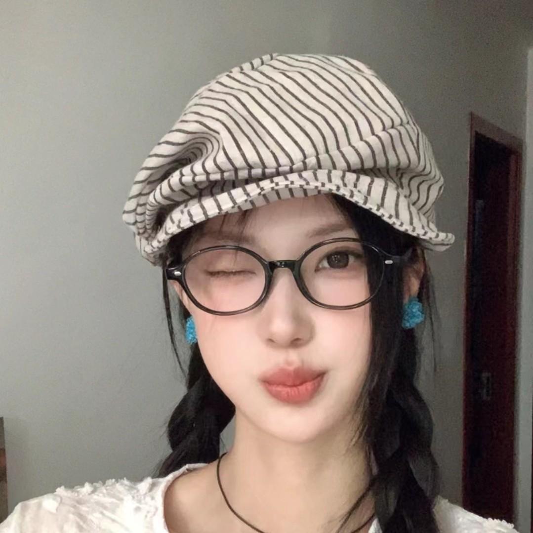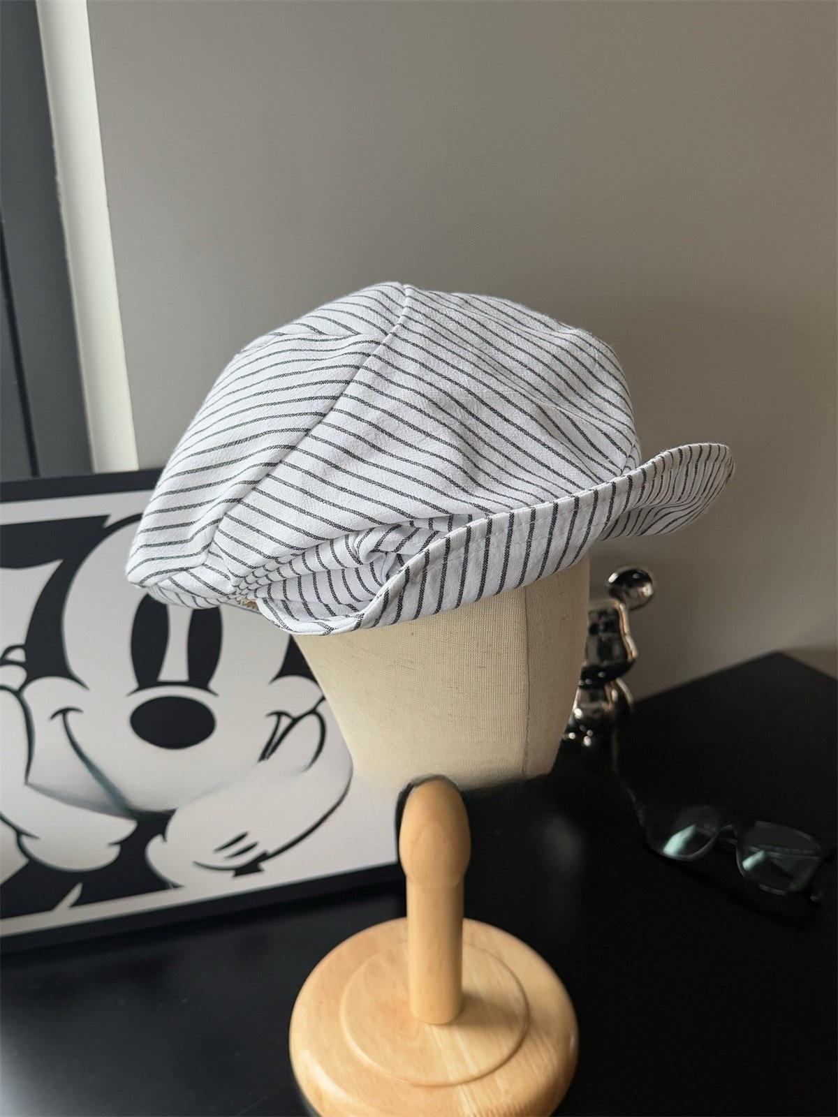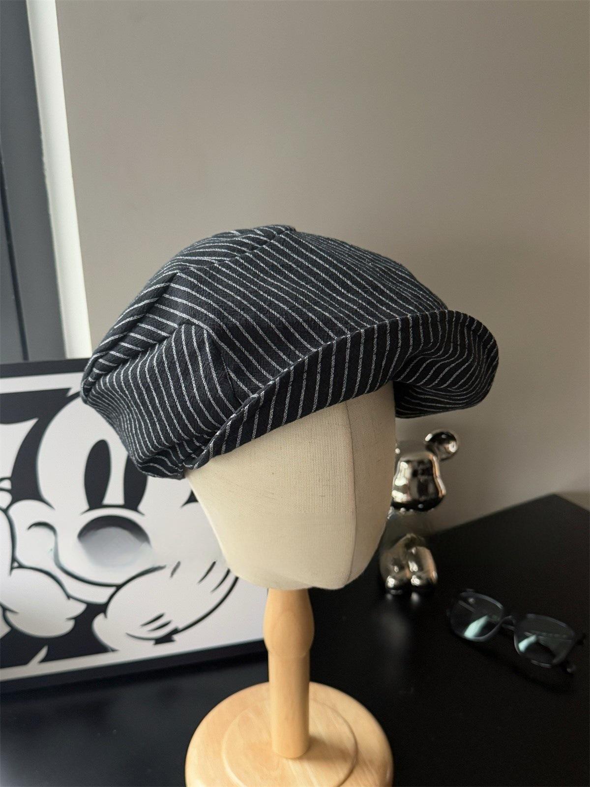 Boina a Rayas de Moda Estilo Japonés para Mujer, Gorra Newsboy Adelgazante para la Cara para Primavera y Verano, Sombrero de Pintor Retro, Versátil Lindo de Moda