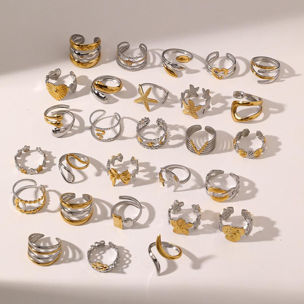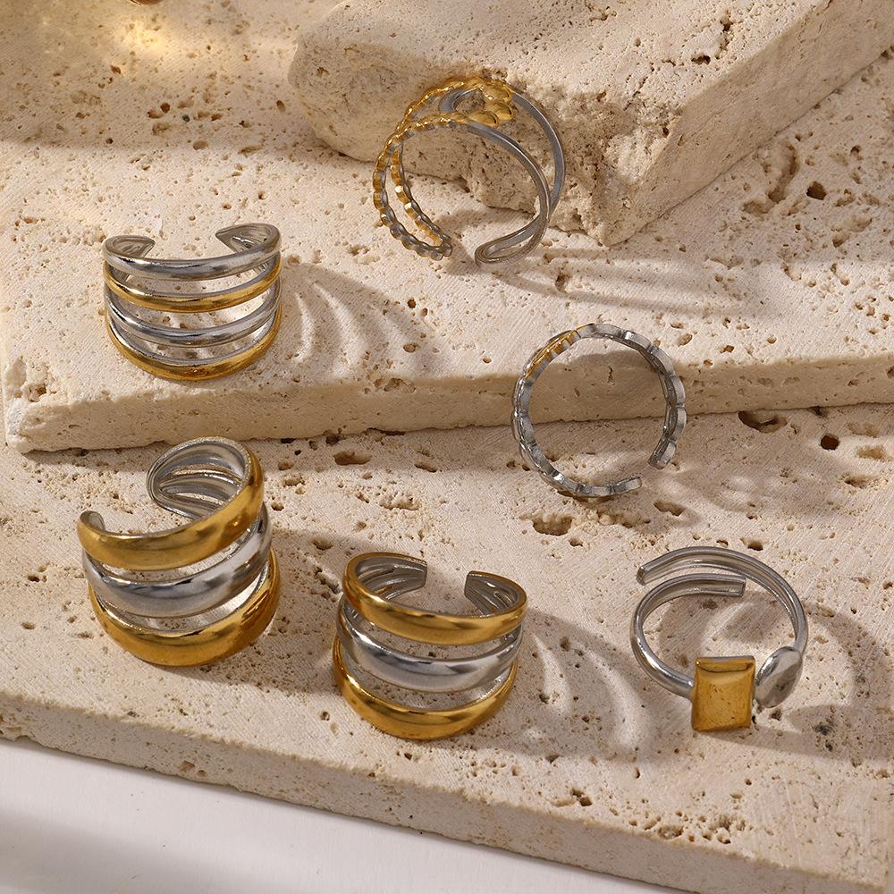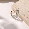 Anillo Curvo de Flor de Acero Inoxidable de Alta Gama Combinación de Colores Oro y Plata Anillo Bicolor Línea Anillo Ins Joyería Transfronteriza