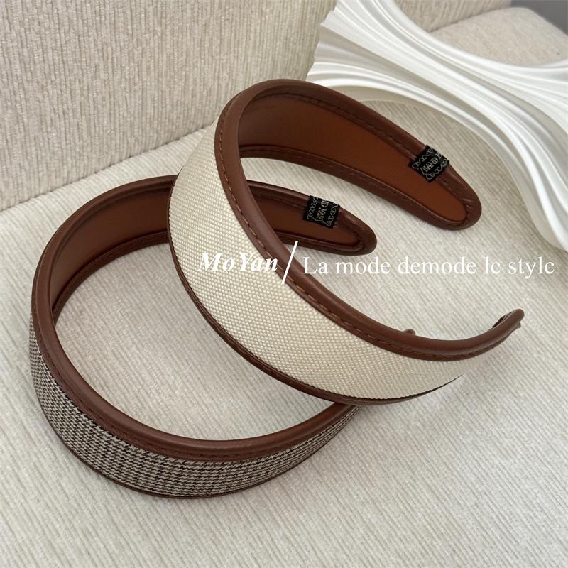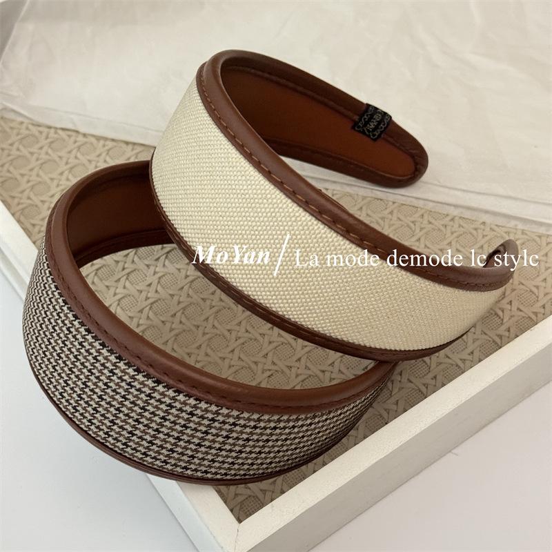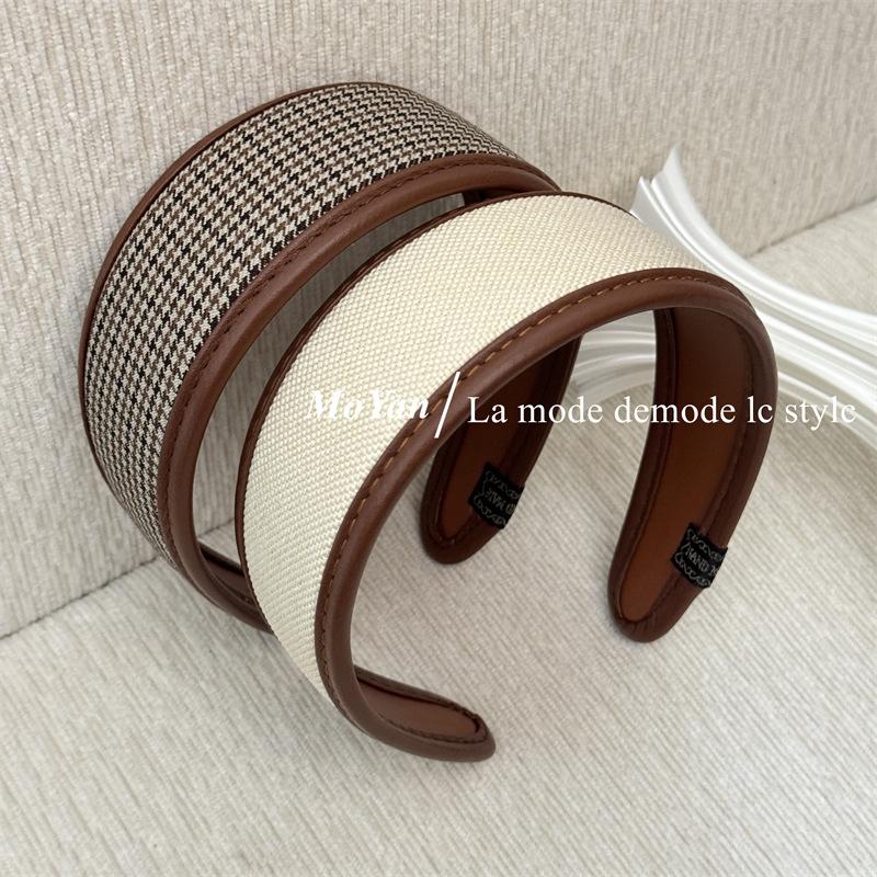 Diadema de Moda a Cuadros Retro Celebridad de Internet Versátil de Ala Ancha para Mujeres Nuevo Estilo Pasador Elegante Diadema Versátil