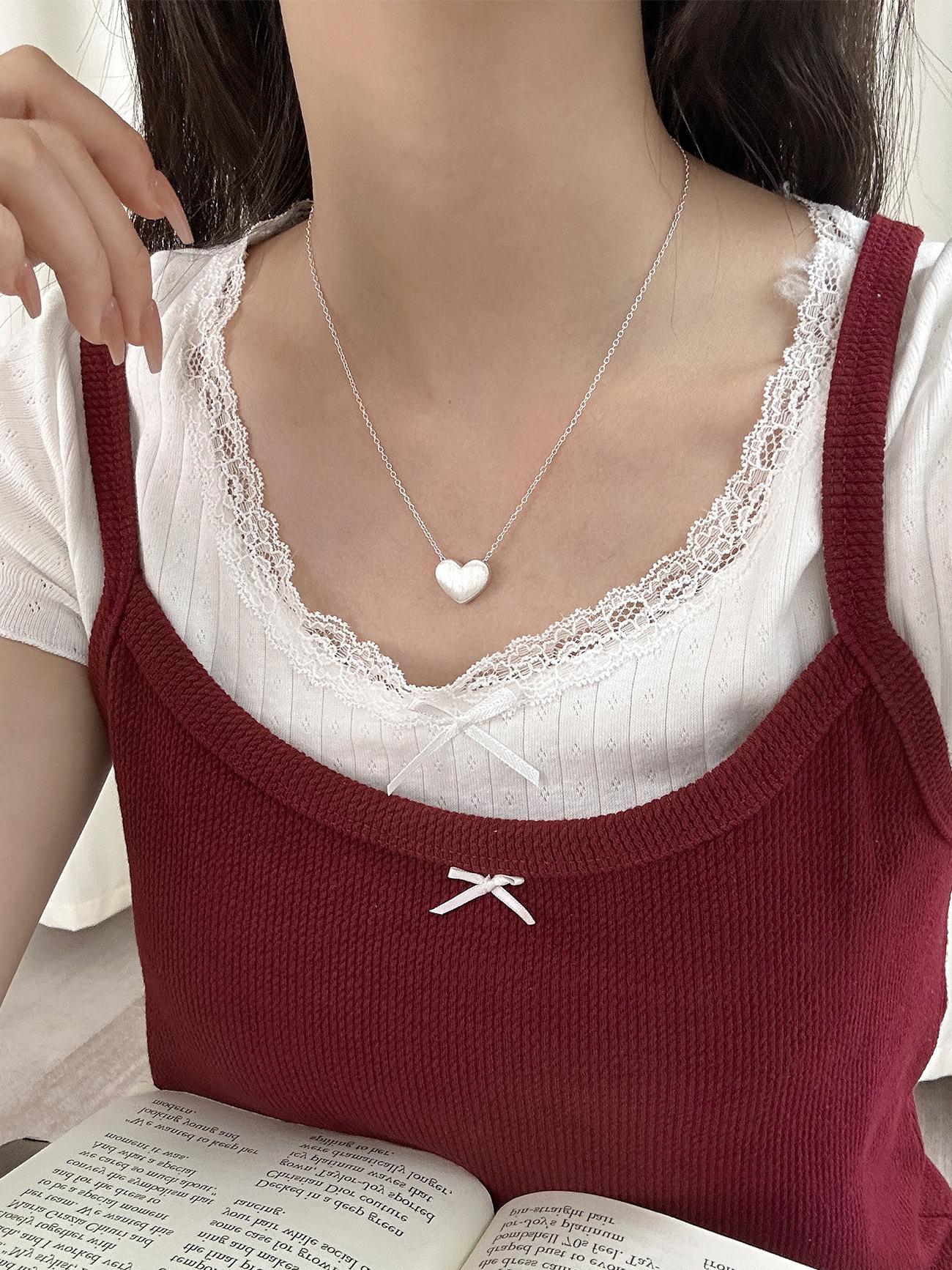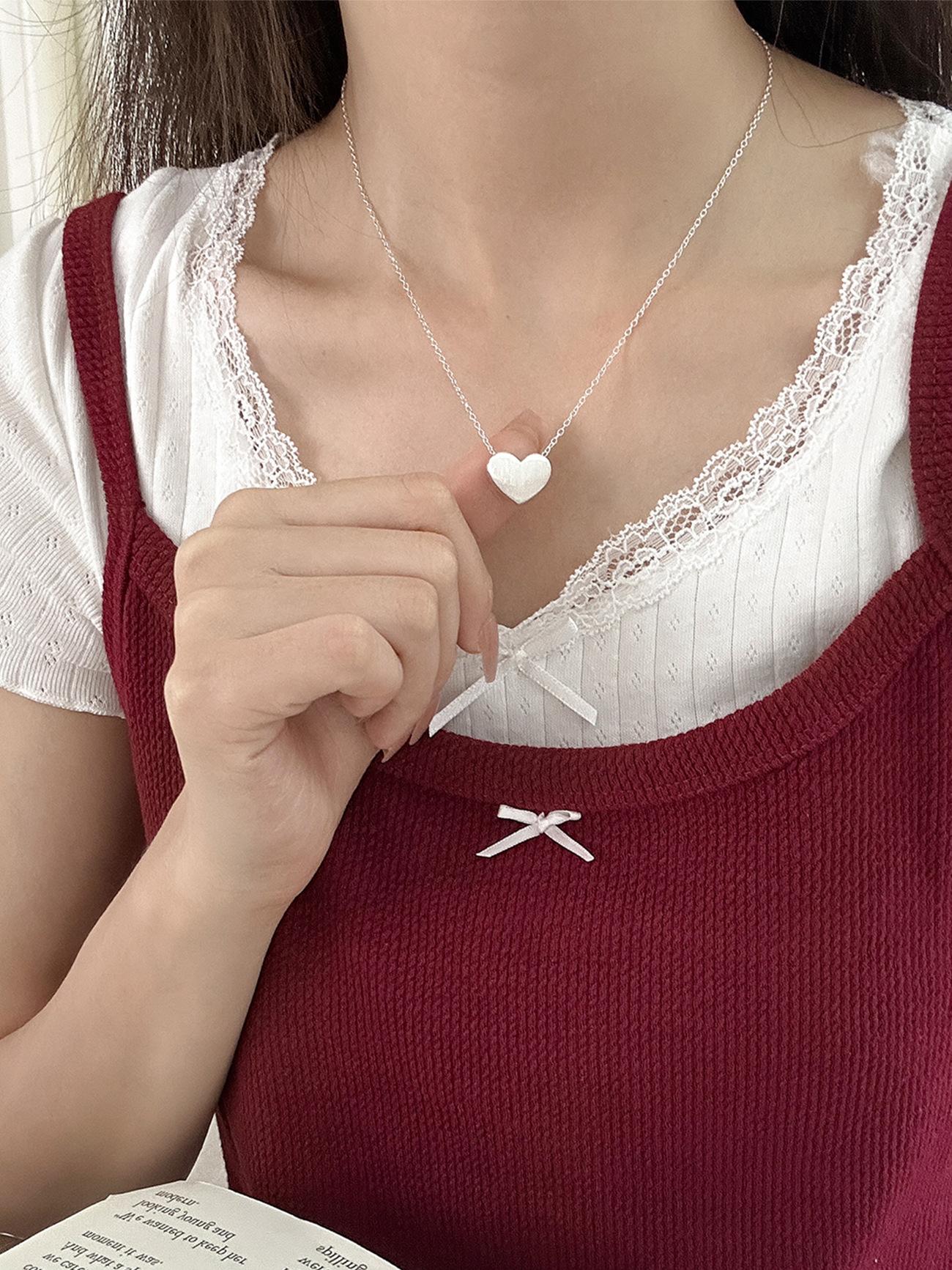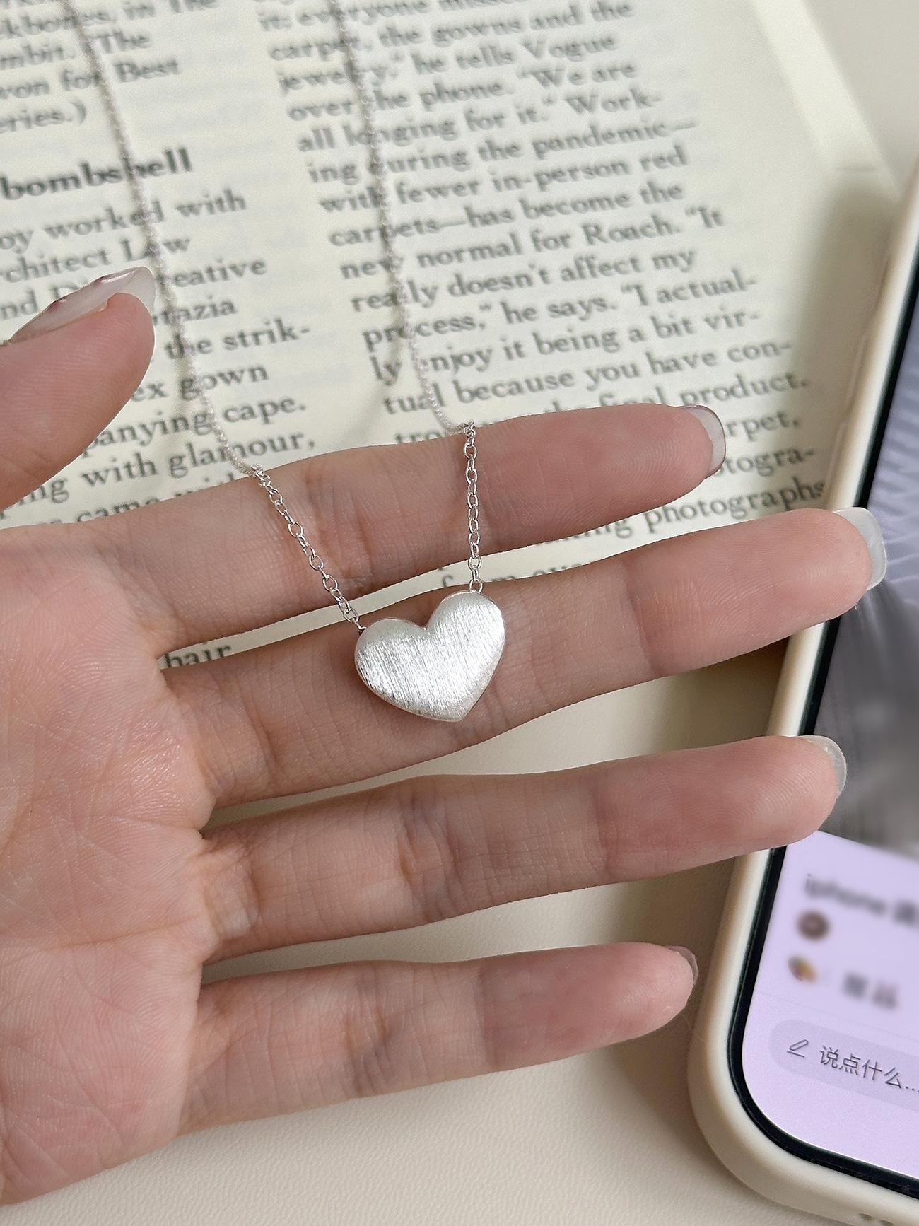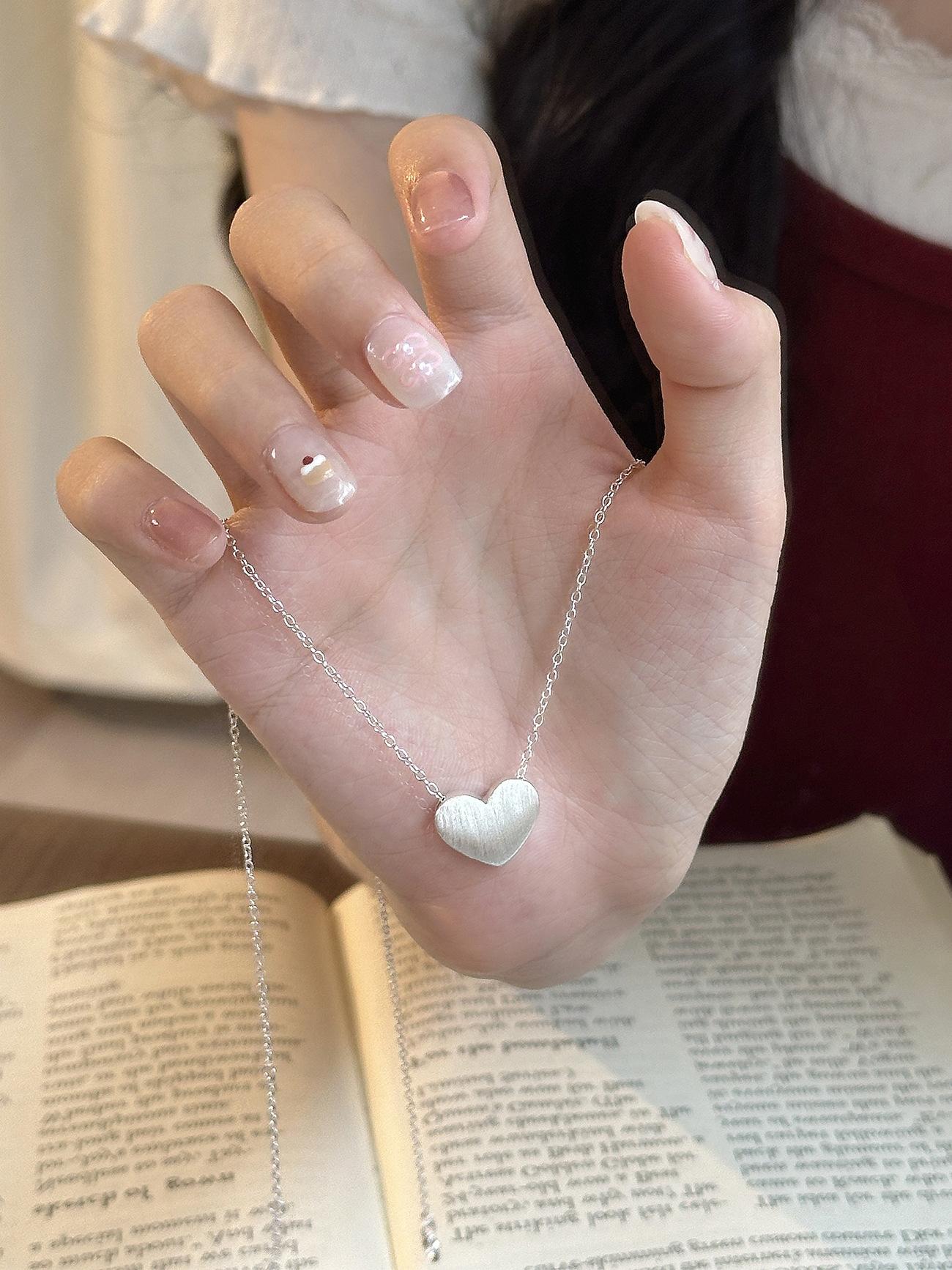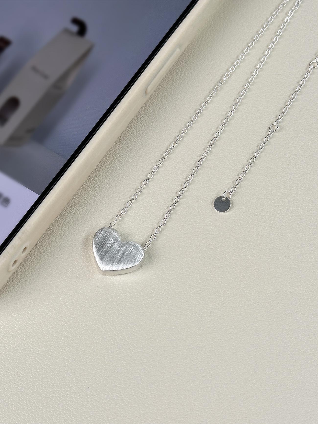 Collar de Amor de Plata Esterlina S925 para Mujer Cepillado Simple Combinable Elegante Diseño Nicho de Alta Gama Lujoso Ligero Cadena Clavicular