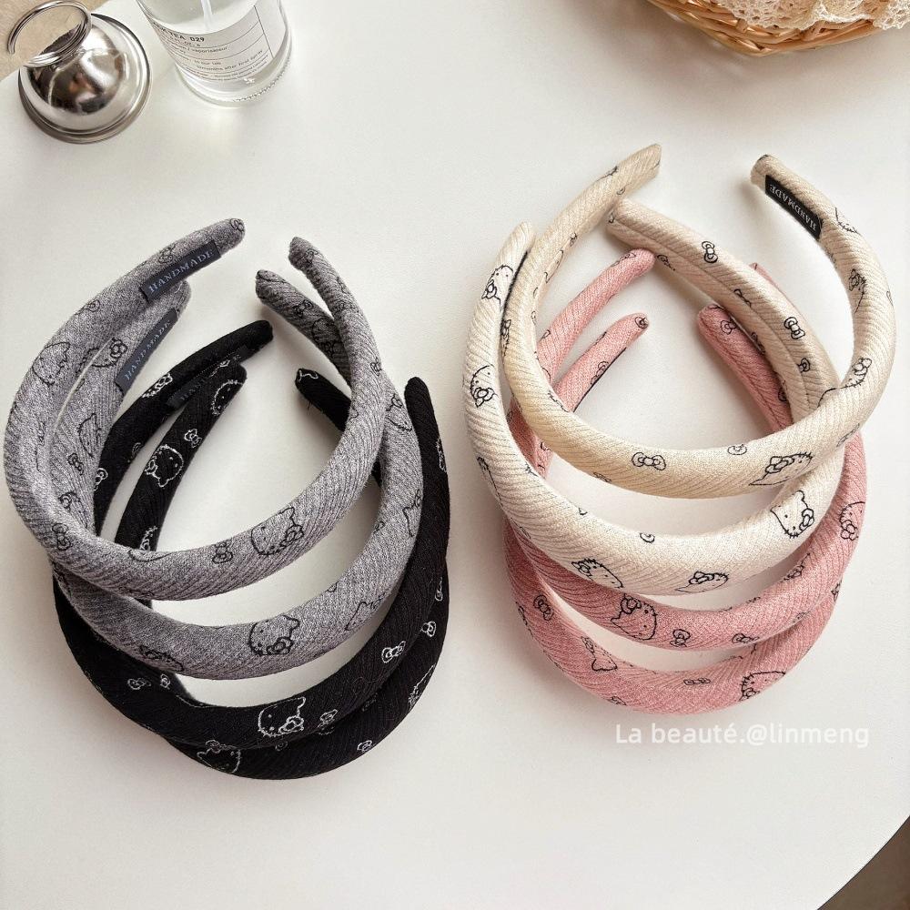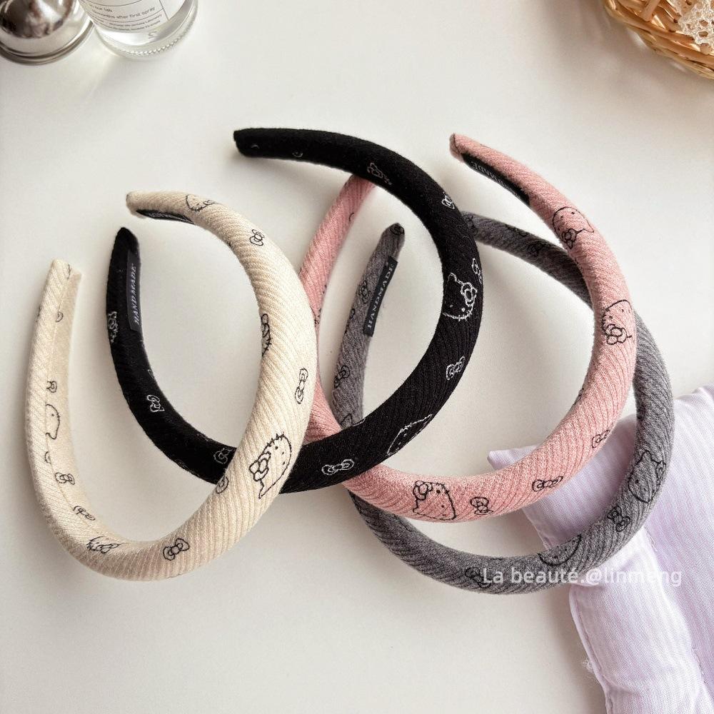 Nueva Diadema de Gato de Moda de Dibujos Animados Dulce Femenina Corazón Diadema para Lavar la Cara Lazo para el Cabello Versátil Clip para el Cabello de Estudiante Accesorio para el Cabello