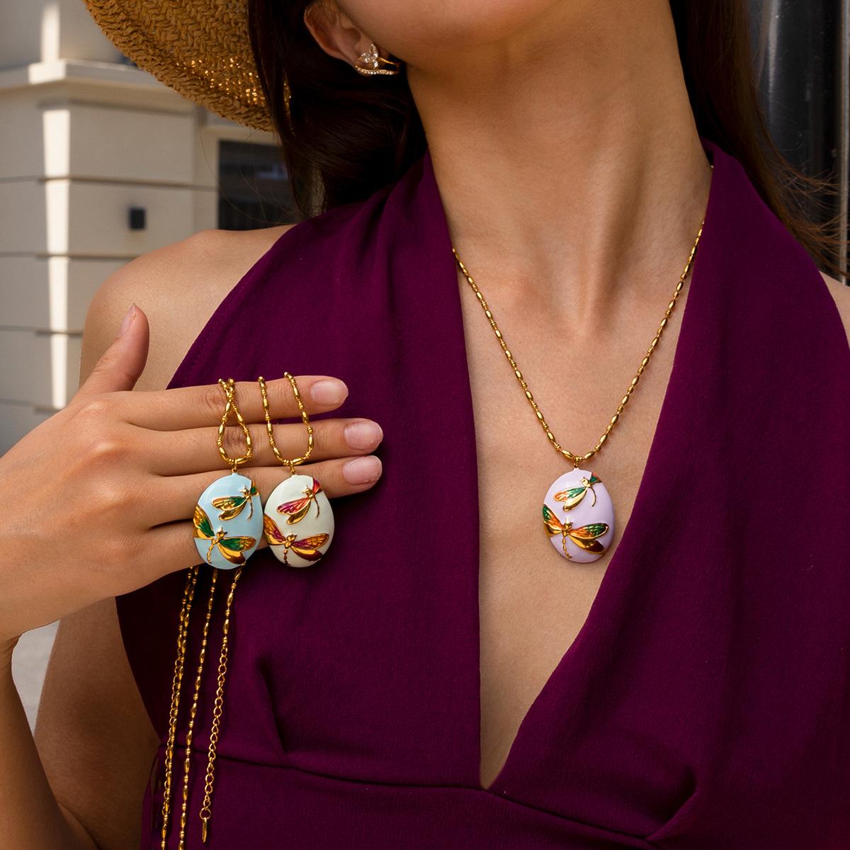 Collar Tina Oumei de Acero Inoxidable Estilo Chica Dulce Cool Picante Libélula Animal Natural Hecho a Mano Esmalte Collar Joyería para Mujeres