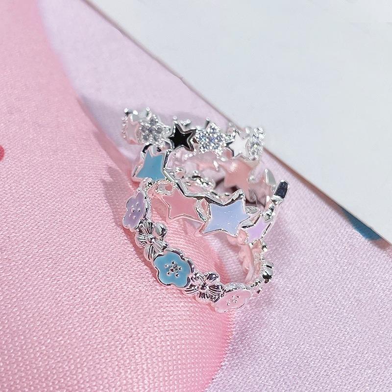 Anillo de Estrella de Flor Abierta con Gota de Aceite de Dopamina para Mujer, Anillo de Dedo Índice Nicho de Alta Gama, Anillo Versátil Apilable de Lujo Ligero