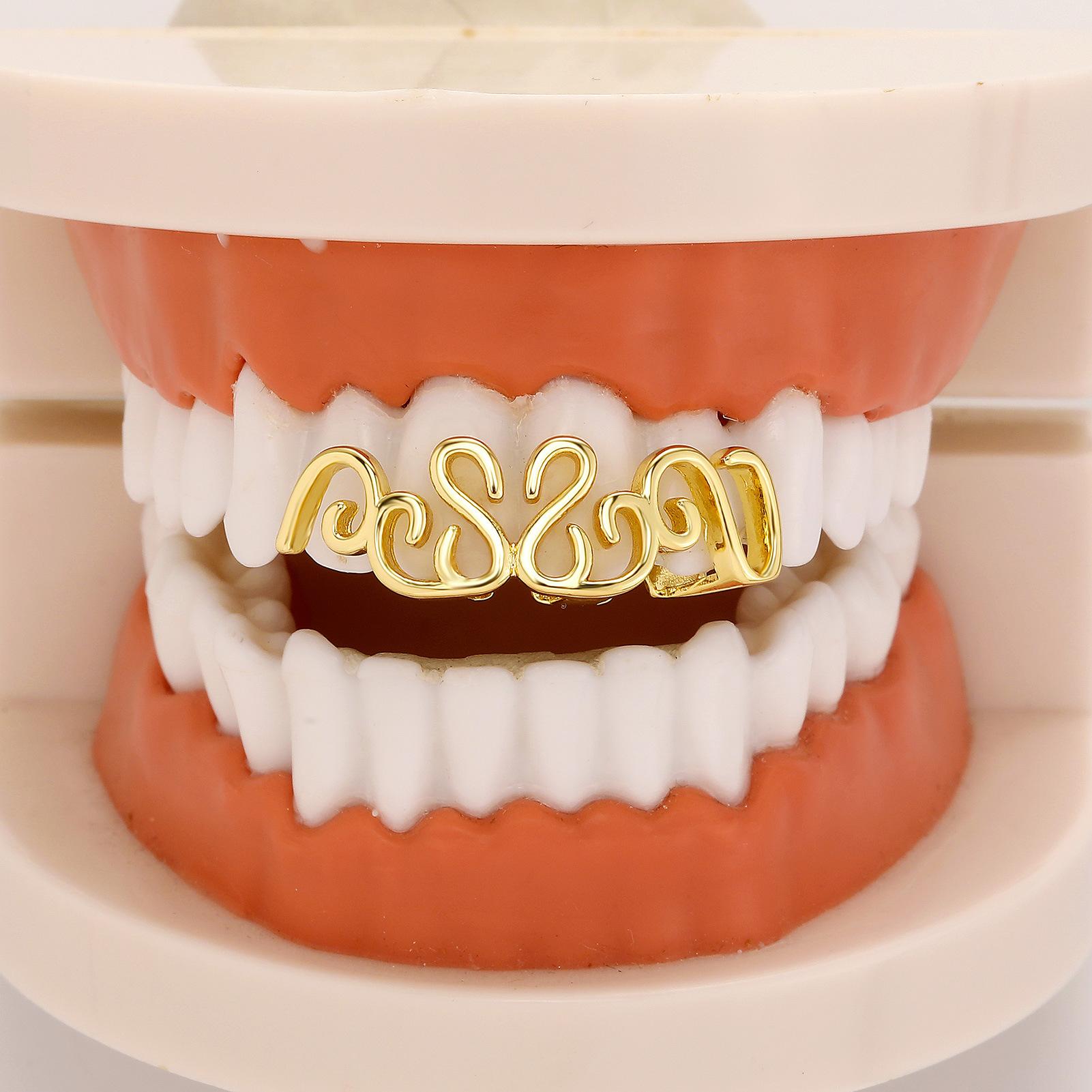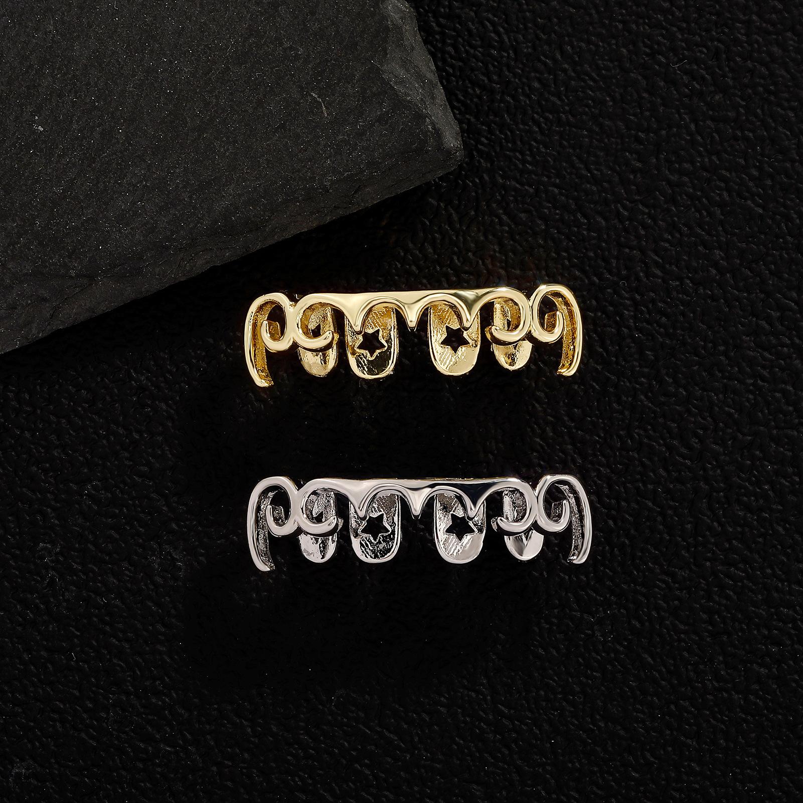 Jin'ao Patrón Retro Calado Dientes de Oro Chapado en Oro Real TEMU Más Vendido Halloween Hip Hop Grillz Personalidad Accesorio de Moda para Hombre