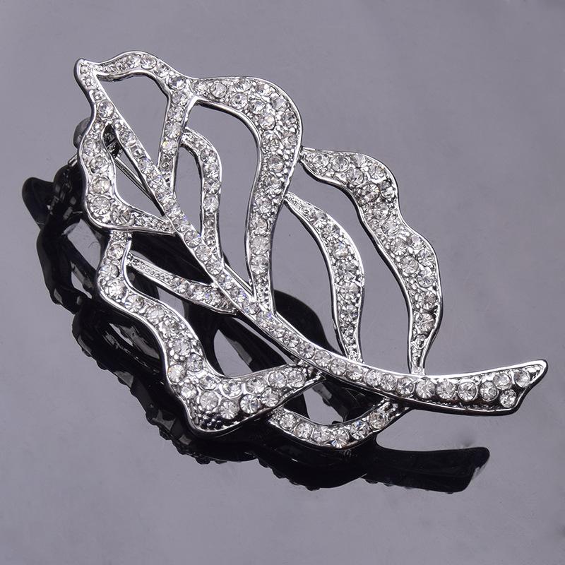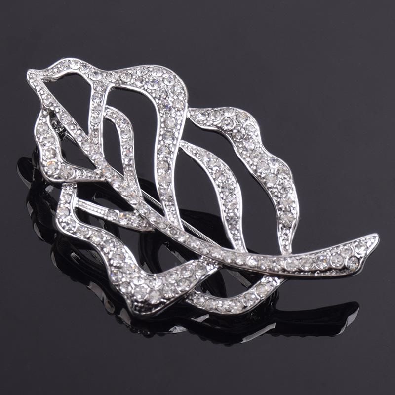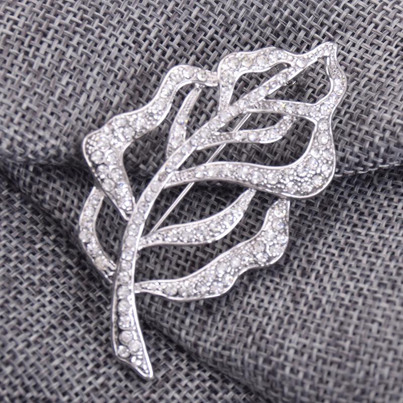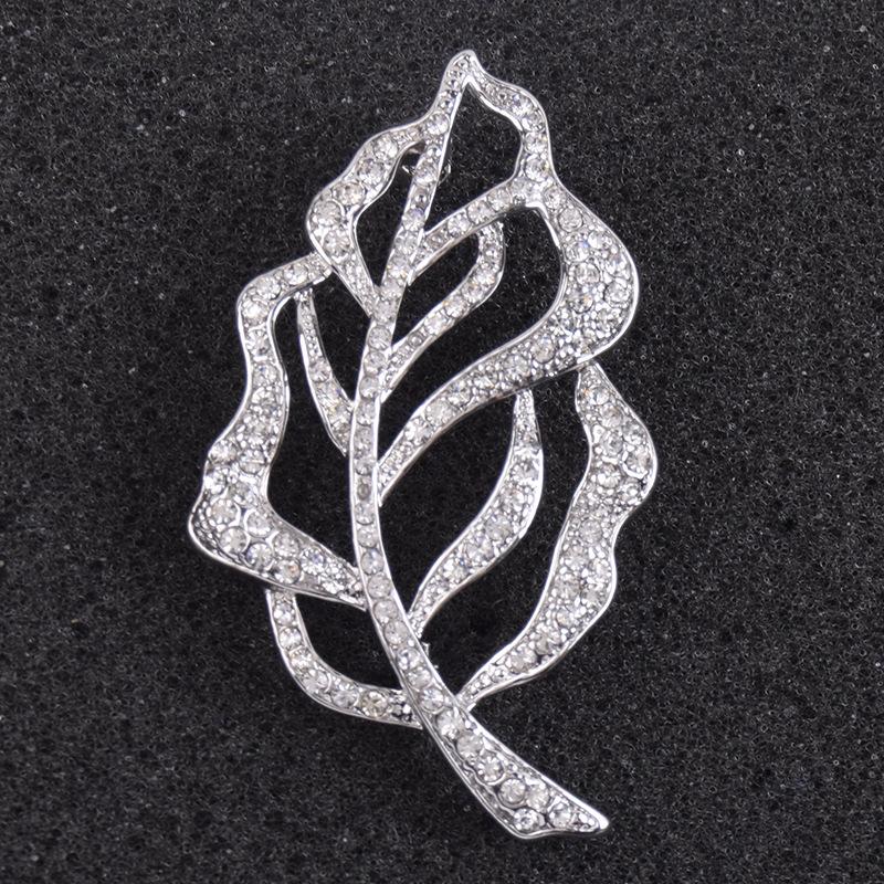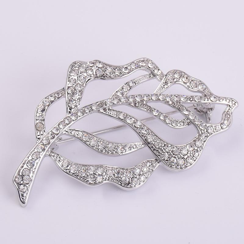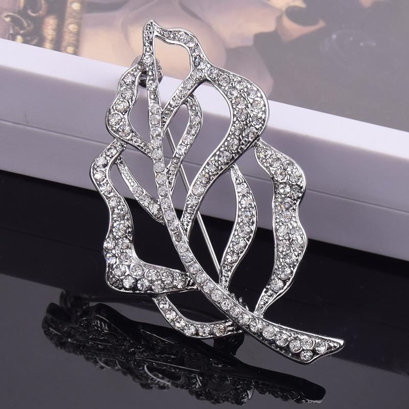 Broche de Cristal de Hoja de Venta Caliente para Mujer Europeo y Americano Pedrería Aleación de Alta Gama Corsage para Traje Creativo Accesorios para Prendas