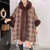 Capa chal de felpa con capucha grande de otoño e invierno para mujer, con cuello de piel grande, con capucha, forrada de vellón, gruesa, abrigo de alta calidad