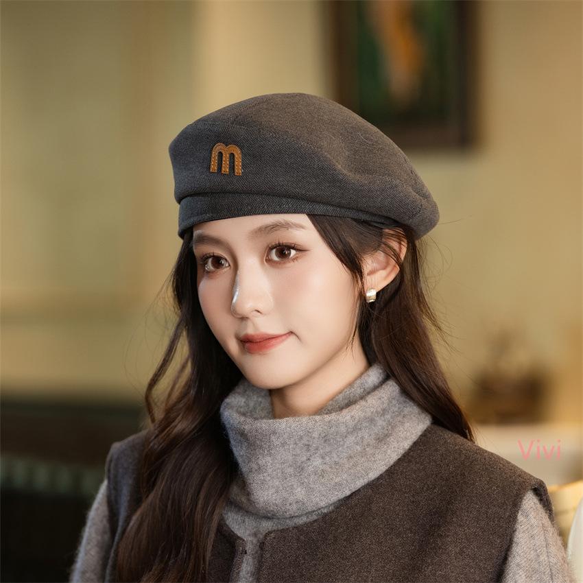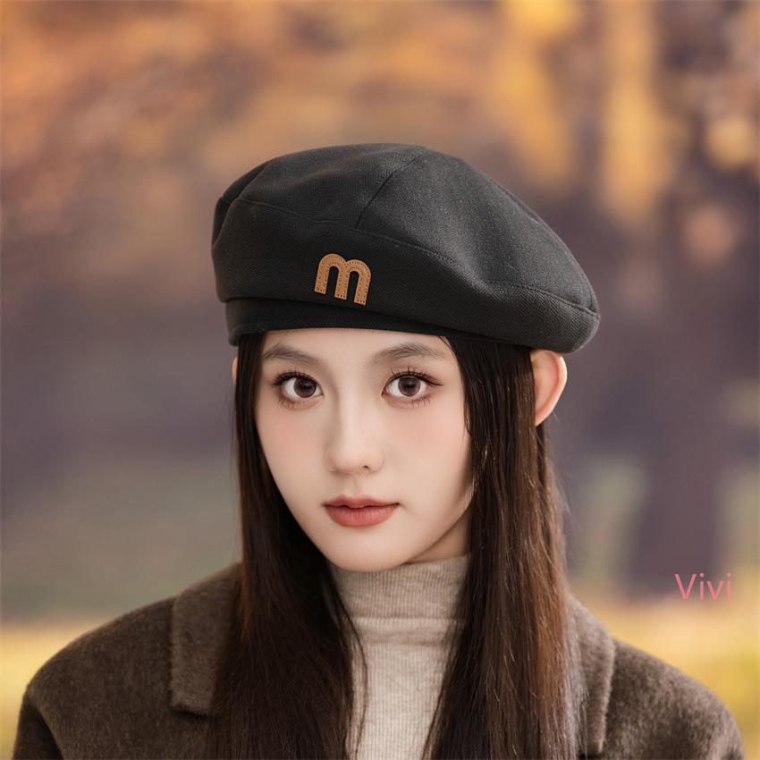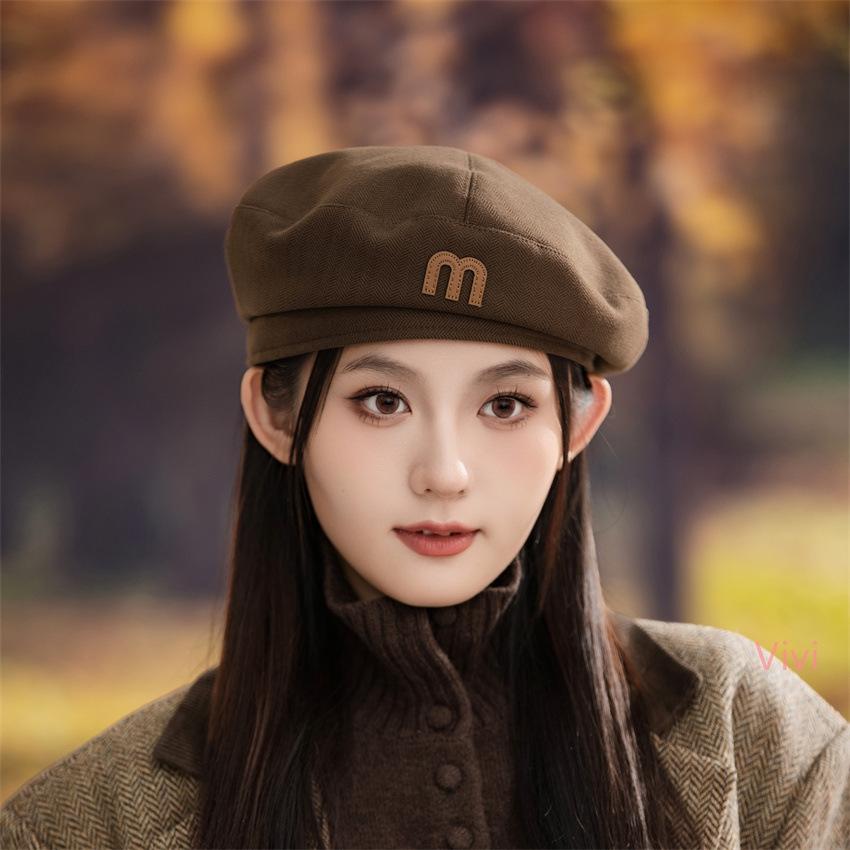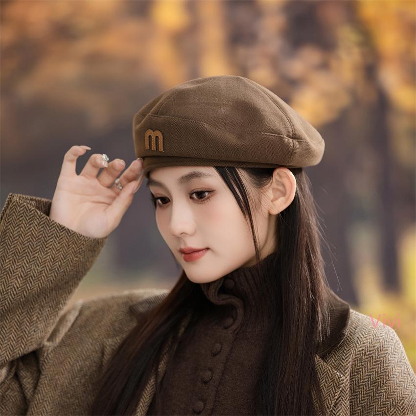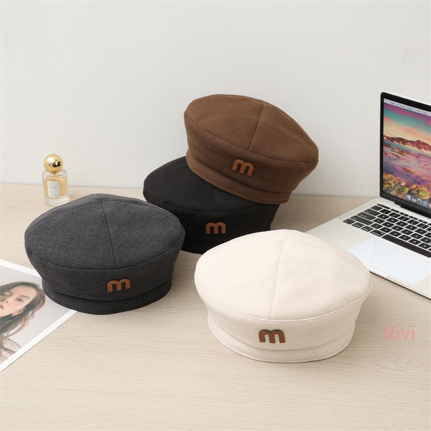 Boina Retro Japonesa M Mark Versátil Color Sólido Otoño Invierno Exterior Casual A Prueba de Viento Sombrero Octogonal Estilo Británico Sombrero de Pintor