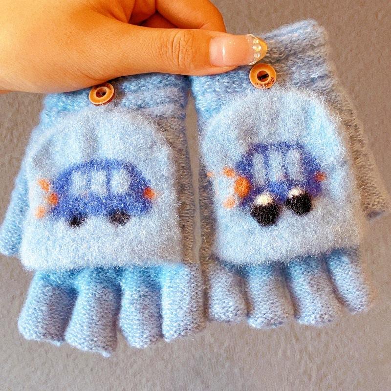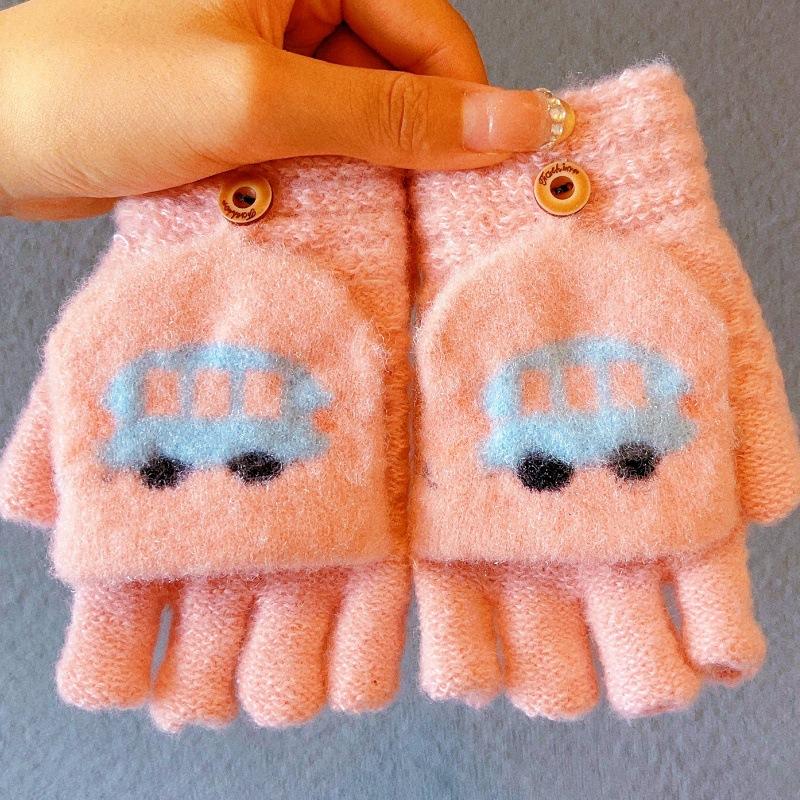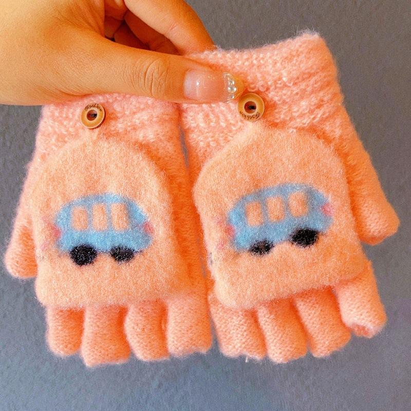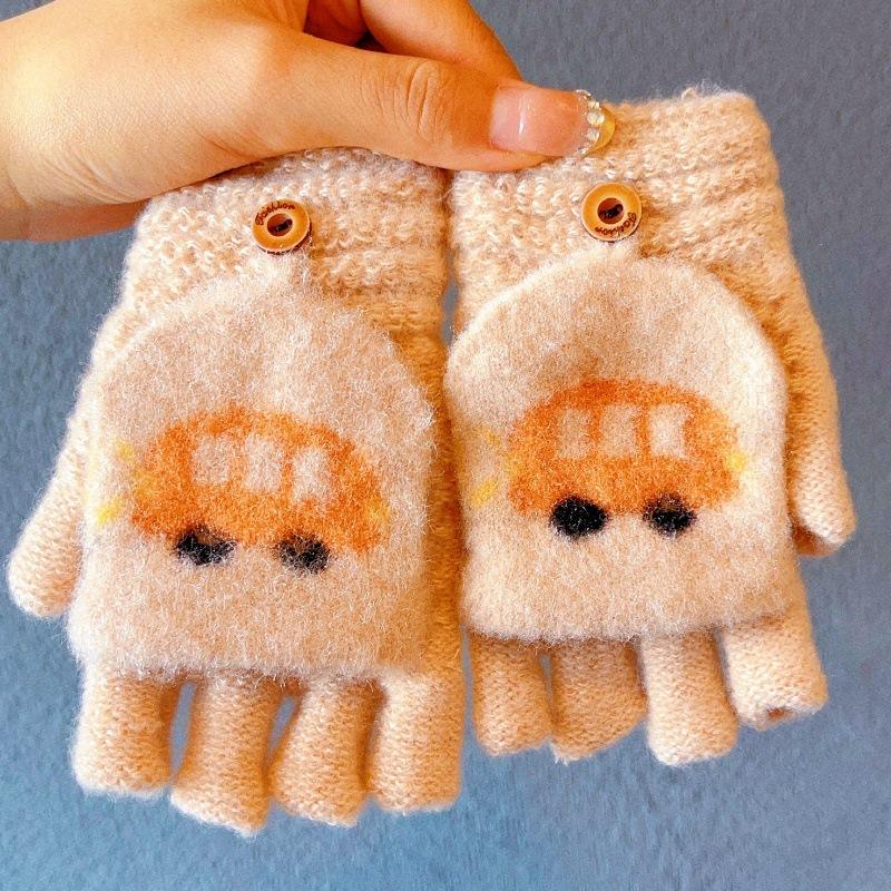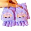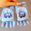 Guantes Flip de Medio Dedo para Niños Invierno Niños y Niñas Felpa Estudiantes de Primaria Escritura Cálido Dibujos Animados Lindo Niño Invierno