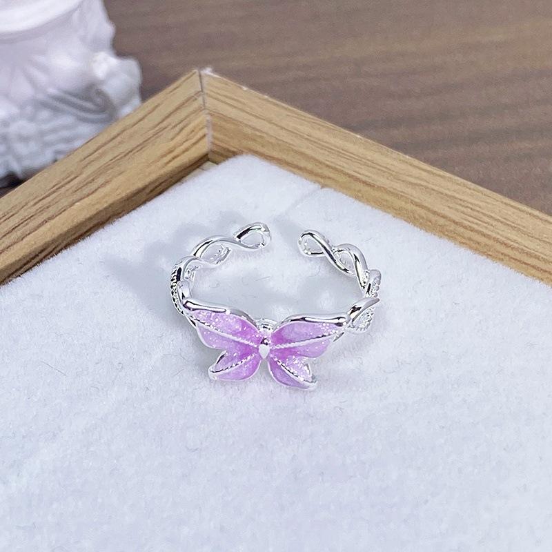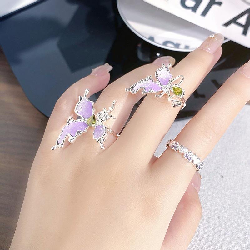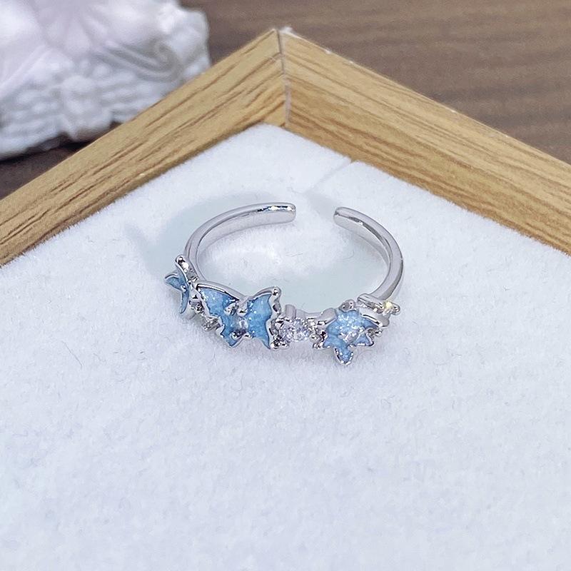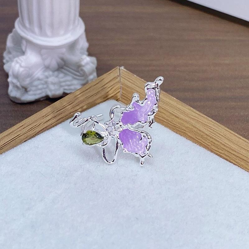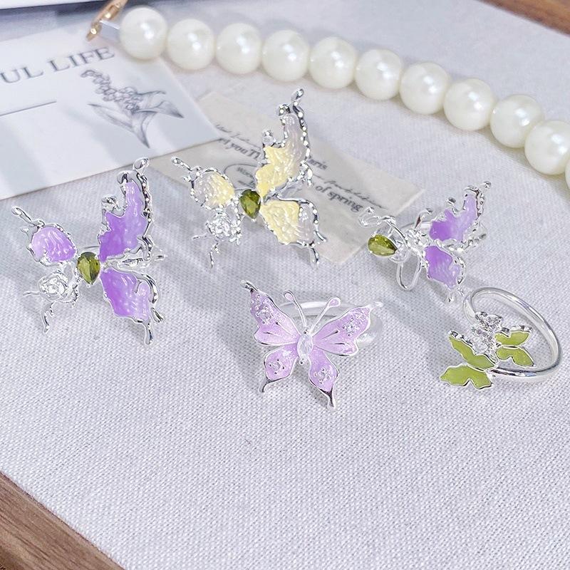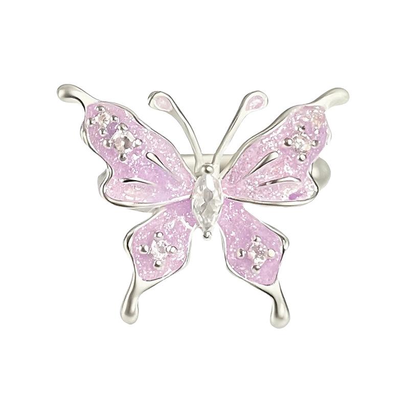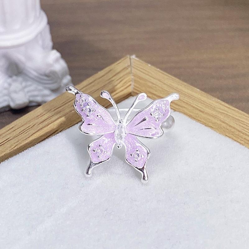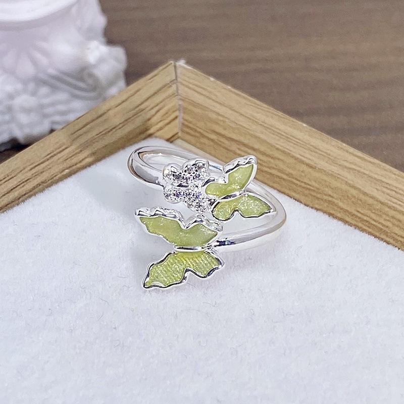Anillo Abierto de Flor Mariposa con Gota de Aceite de Esmalte Diseño Nicho Lujo Accesible Zircón de Alta Gama Versátil Personalizado para Mujer
