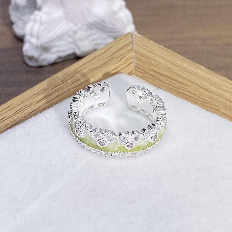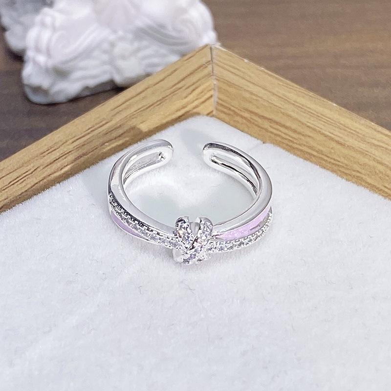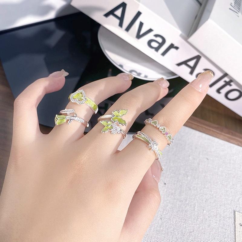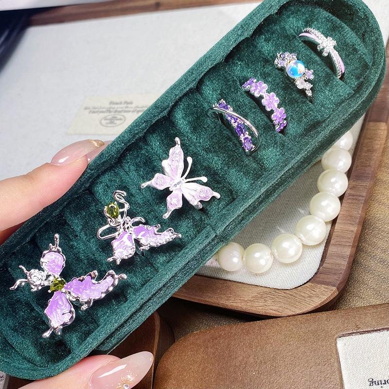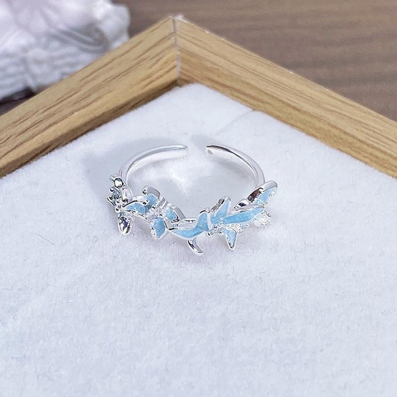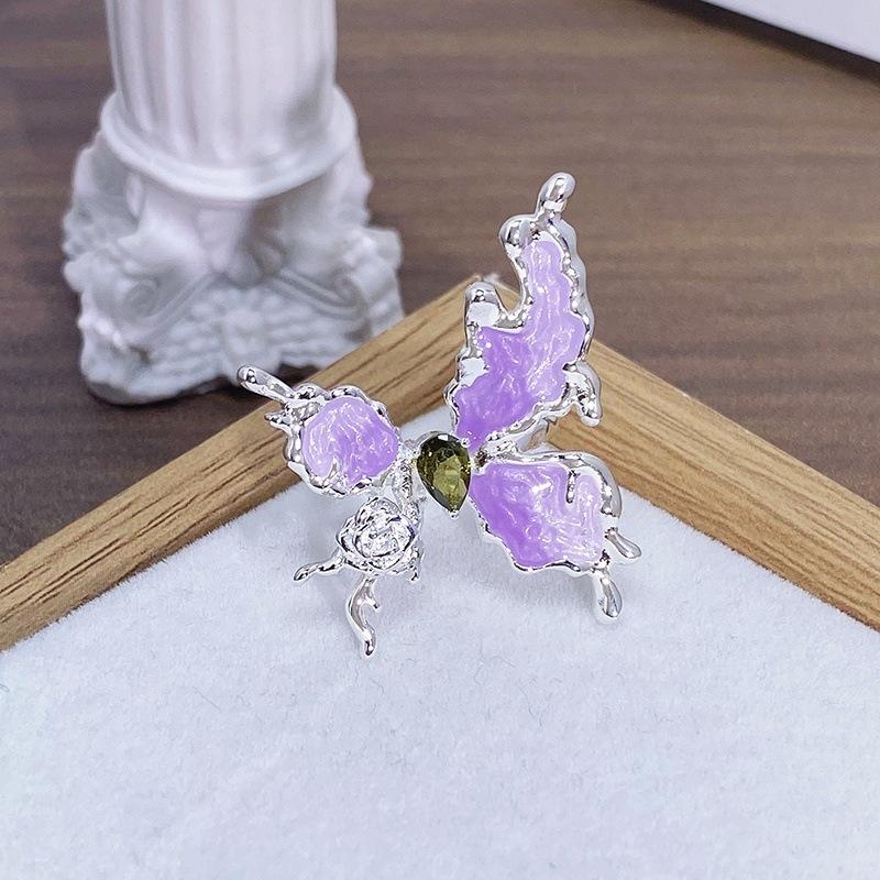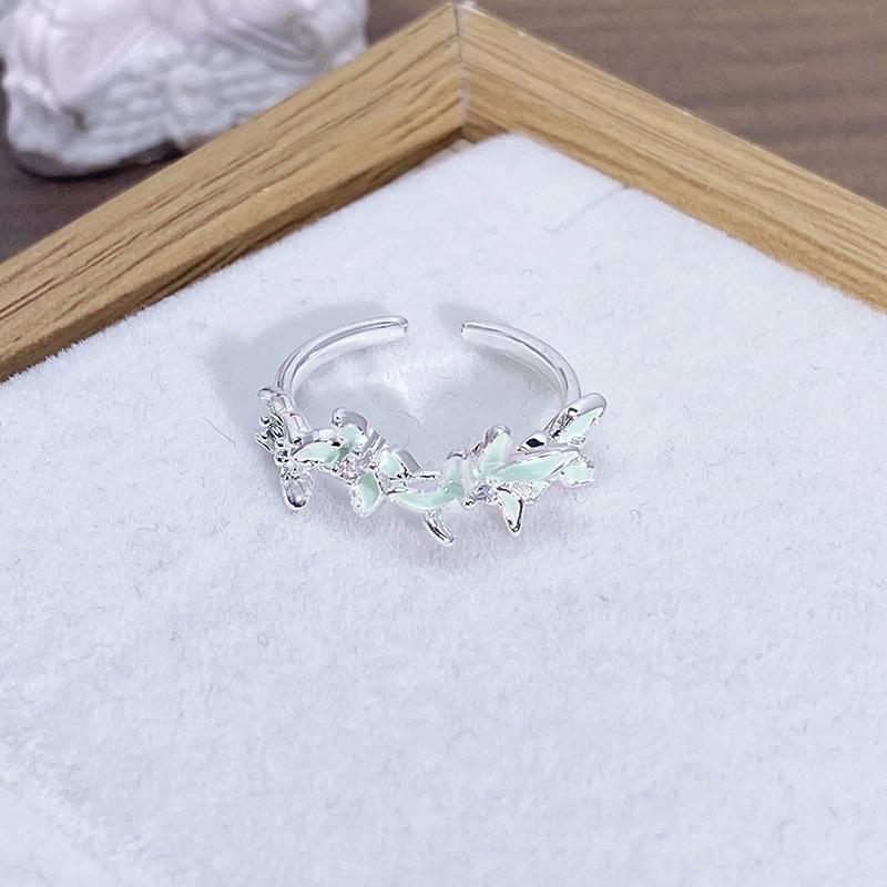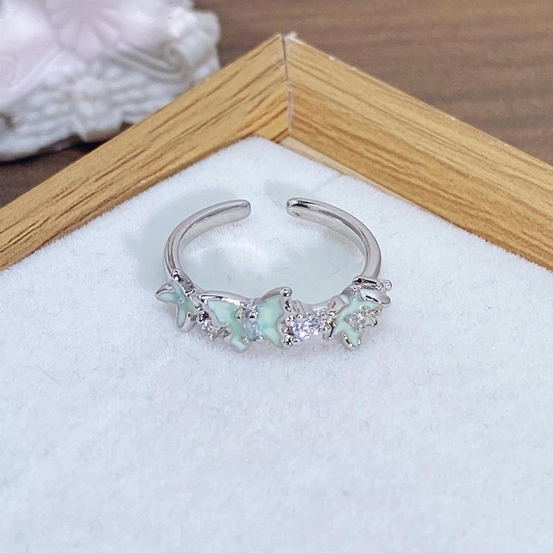Anillo Abierto de Flor Mariposa con Gota de Aceite de Esmalte Diseño Nicho Lujo Accesible Zircón de Alta Gama Versátil Personalizado para Mujer