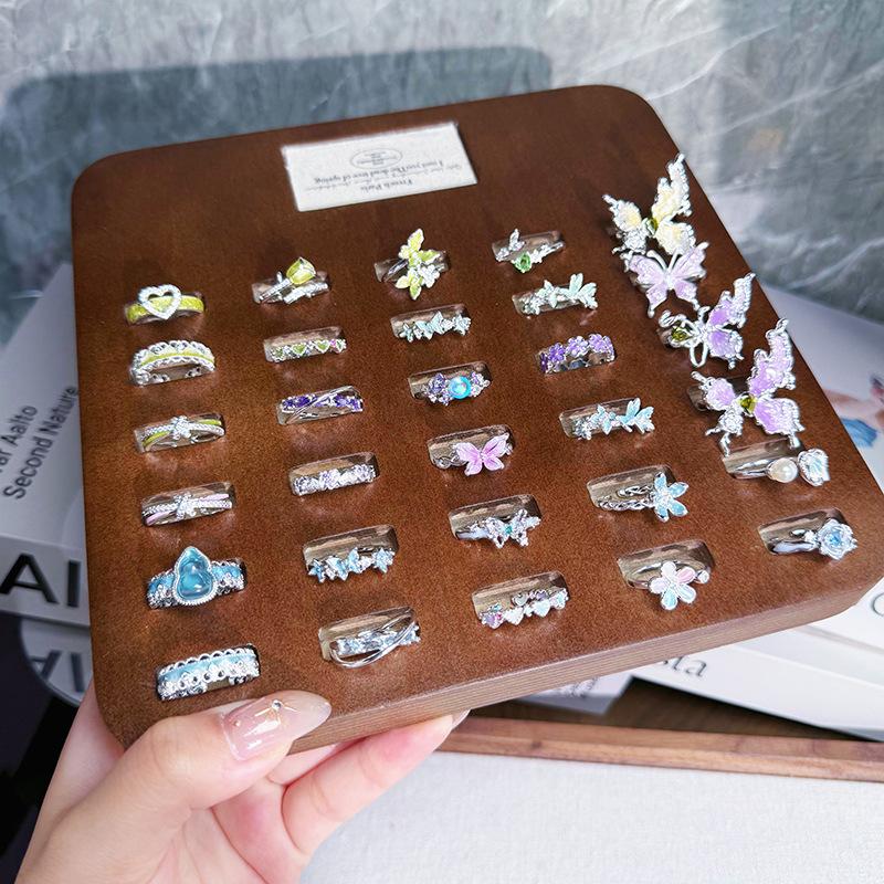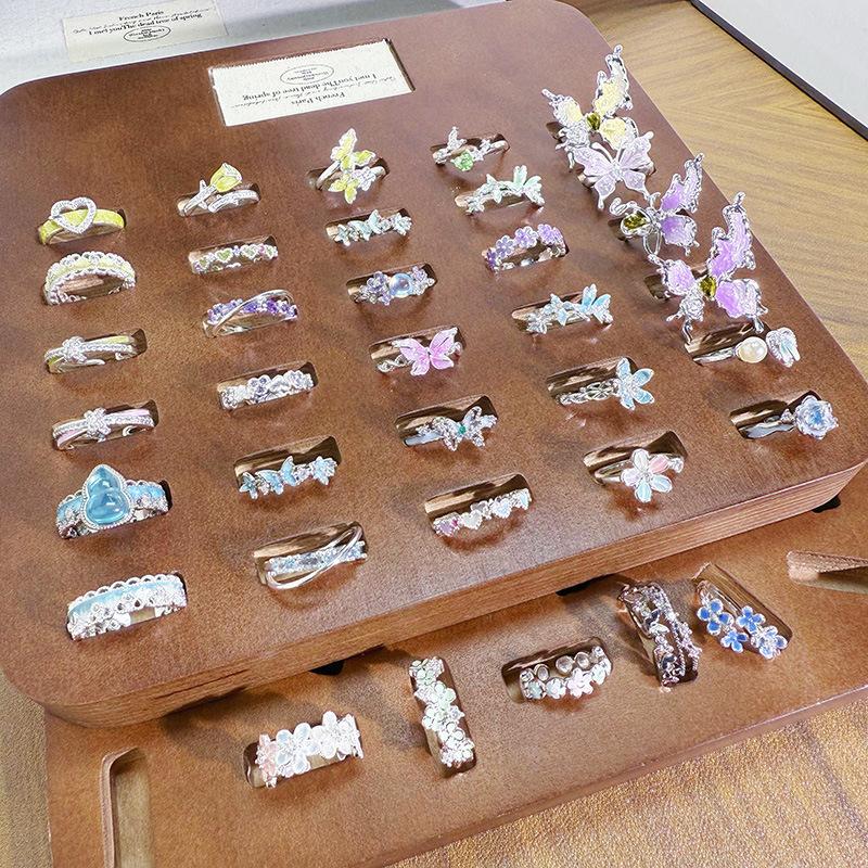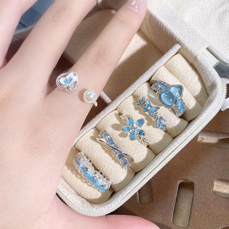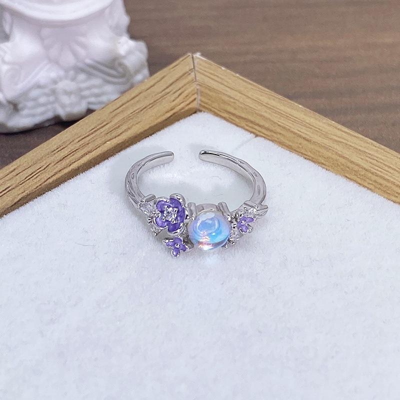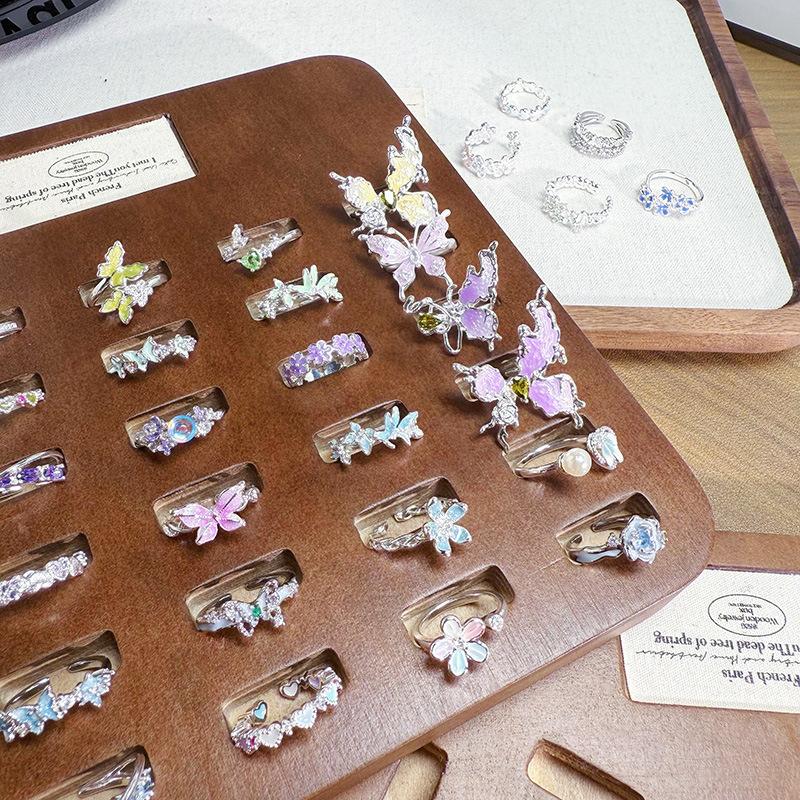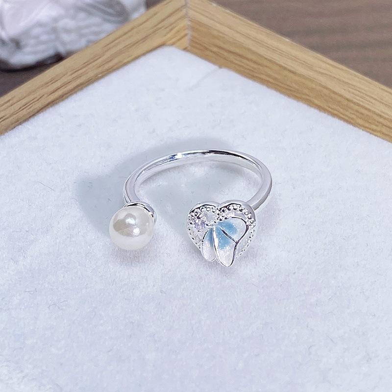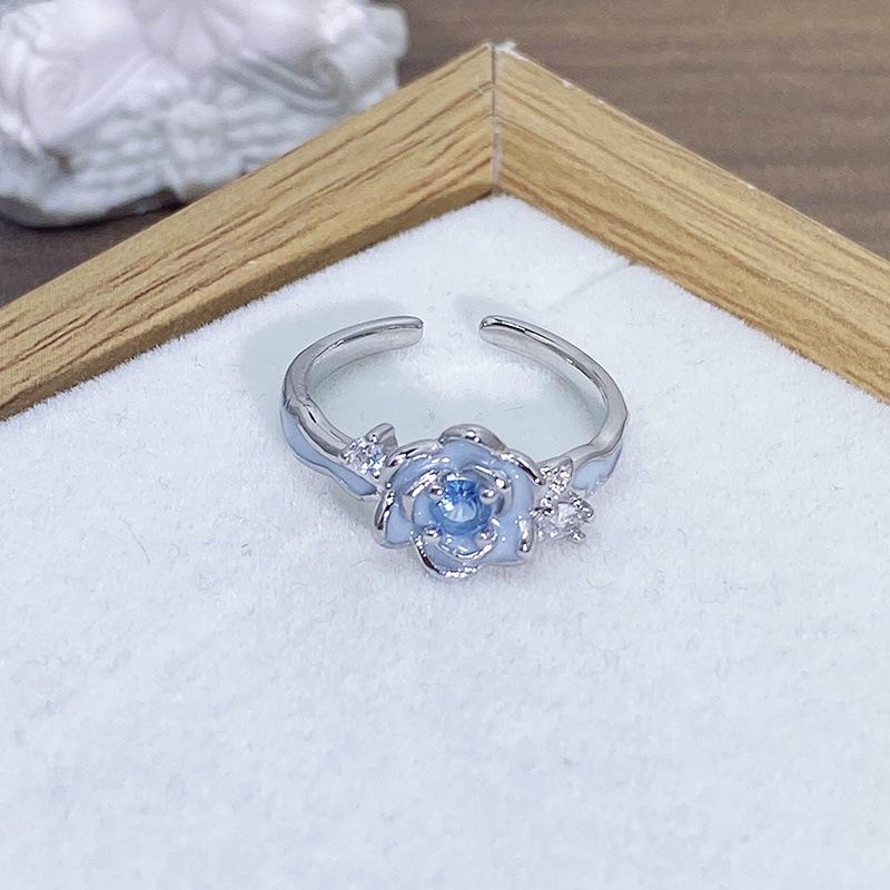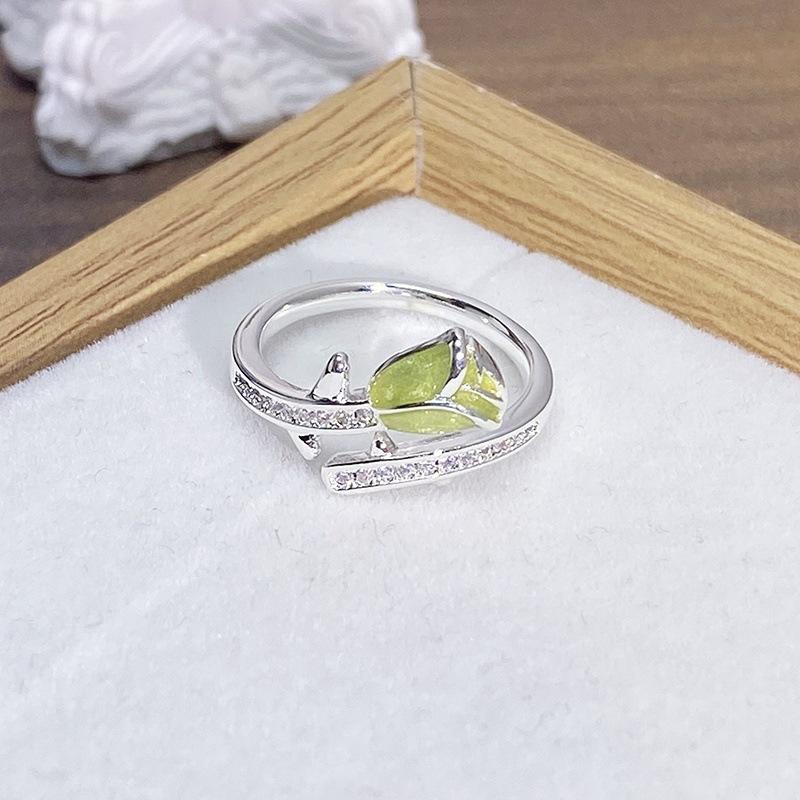 Anillo Abierto de Flor Mariposa con Gota de Aceite de Esmalte Diseño Nicho Lujo Accesible Zircón de Alta Gama Versátil Personalizado para Mujer