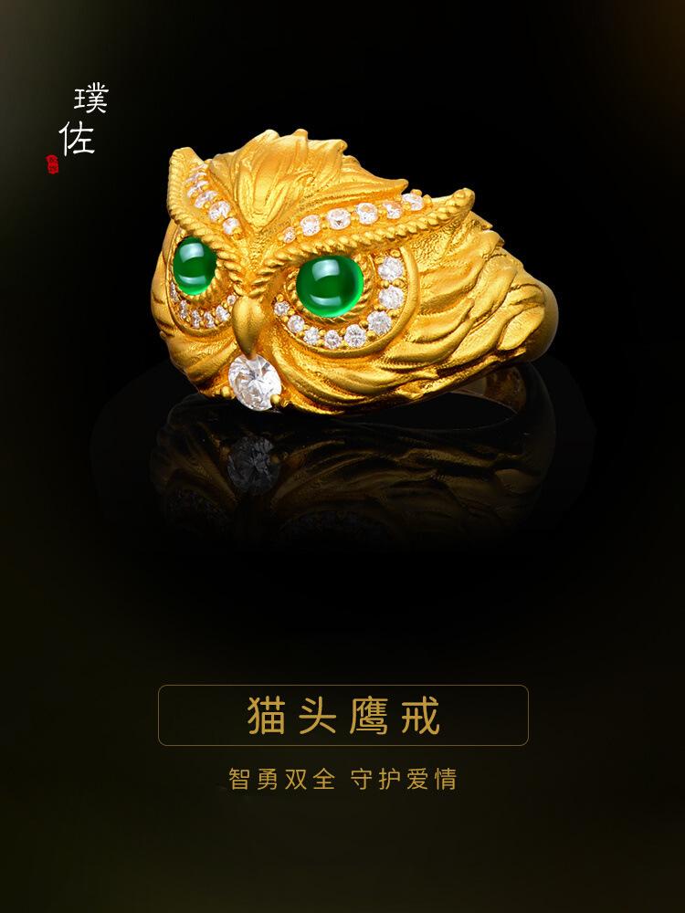 2-1-25-2 diamond owl ring 1 24k gold-plated