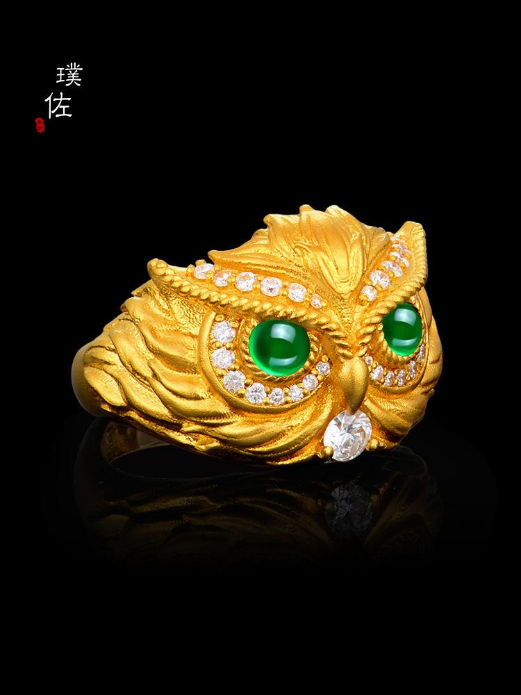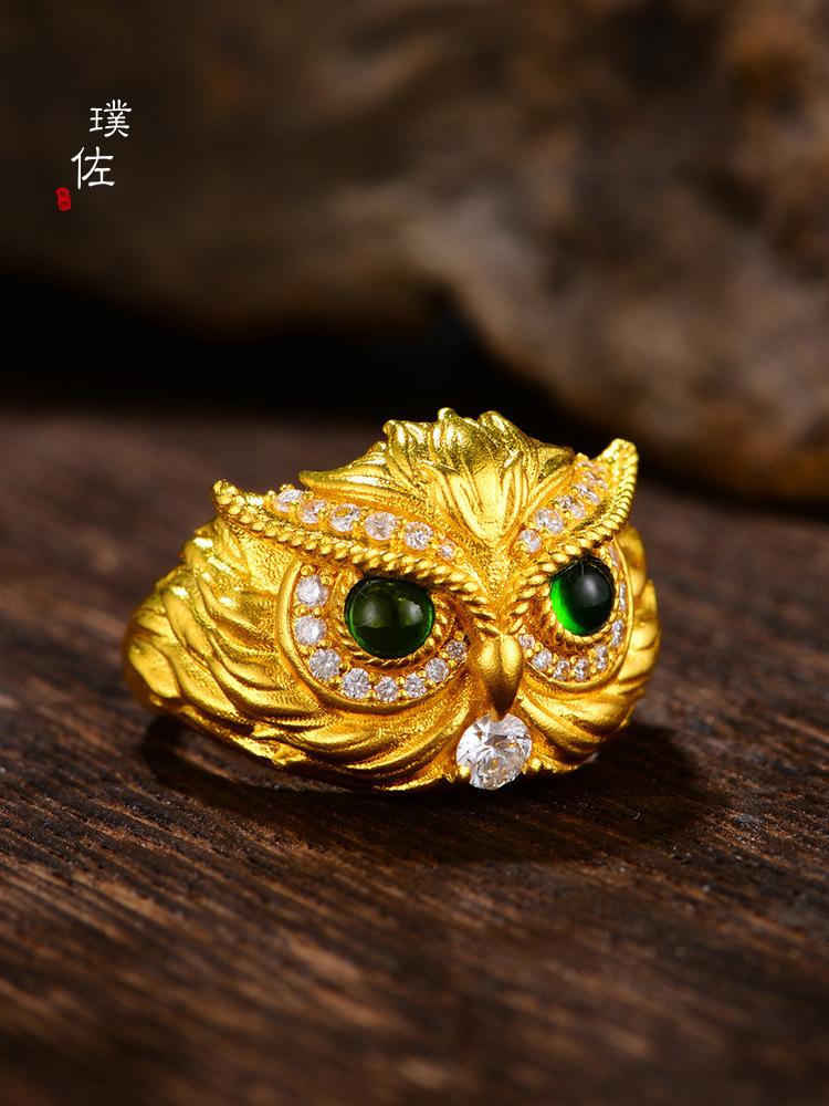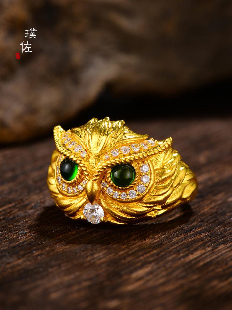 Joyería de oro con anillo de búho de diamantes de oro francés antiguo anillo de joyería tallado a mano anillo anillo regalo