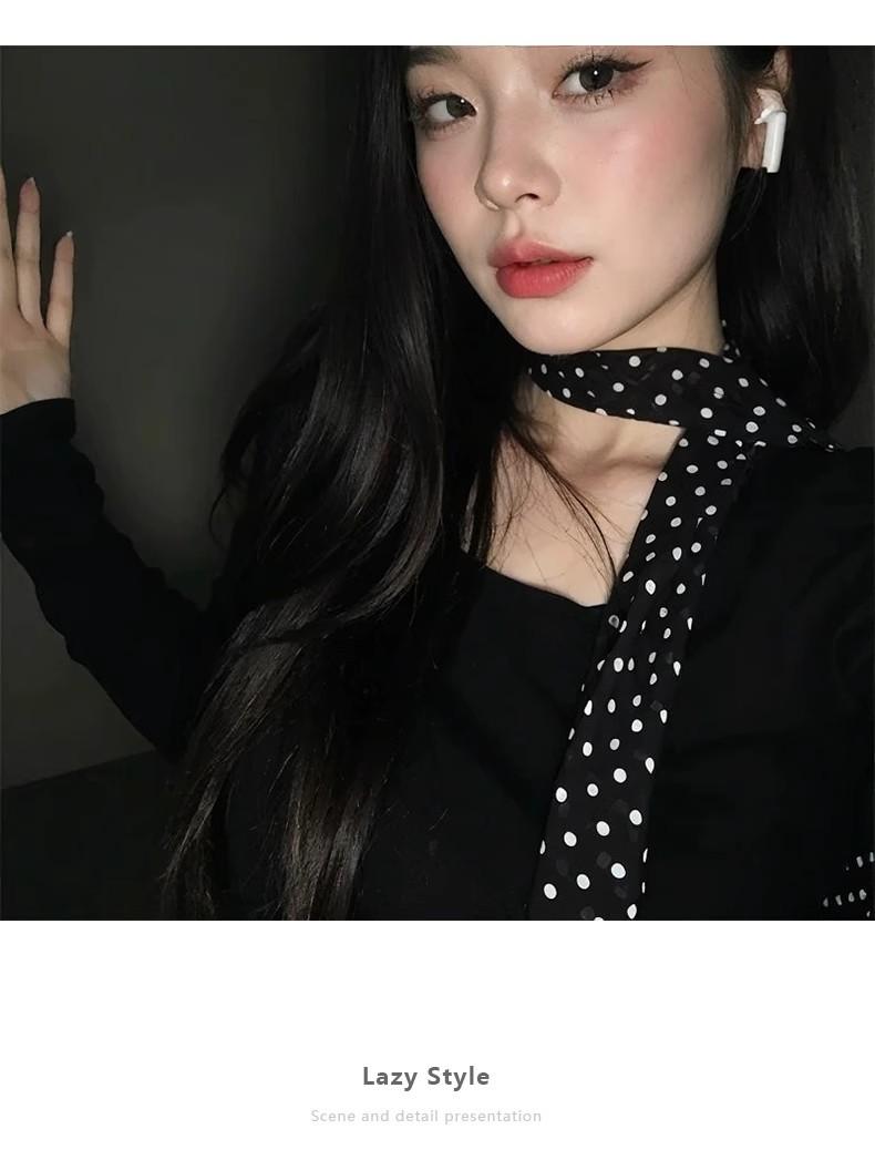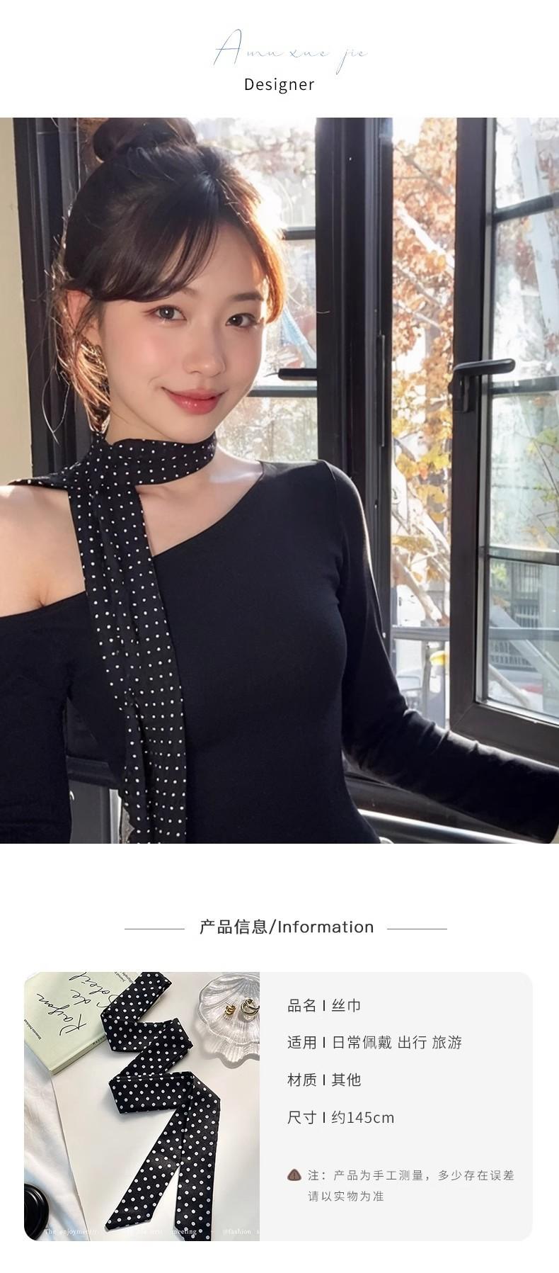 Bufanda de Seda de Lunares Cuello Mujer 2025 Nuevo Sentido de Alta Gama Estilo Coreano Bufanda Larga Bufanda Cinta Bufanda Delgada Cinturón