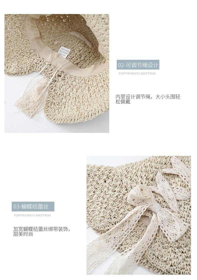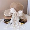 Sombrero de Paja con Lazo de Encaje de Verano, Moderno, Combinable, Protección Solar, Sombrero de Playa, Sombrero de Sol Plegable con Ala