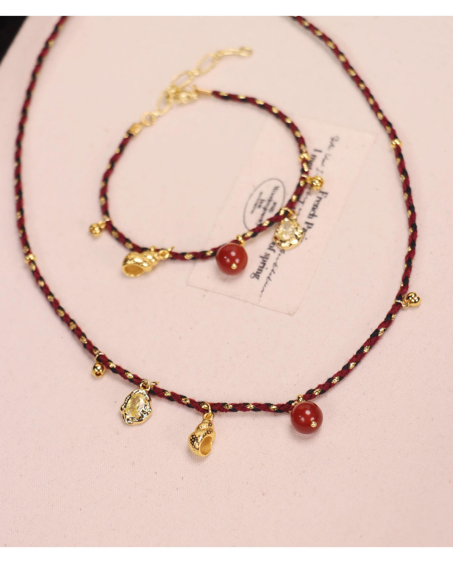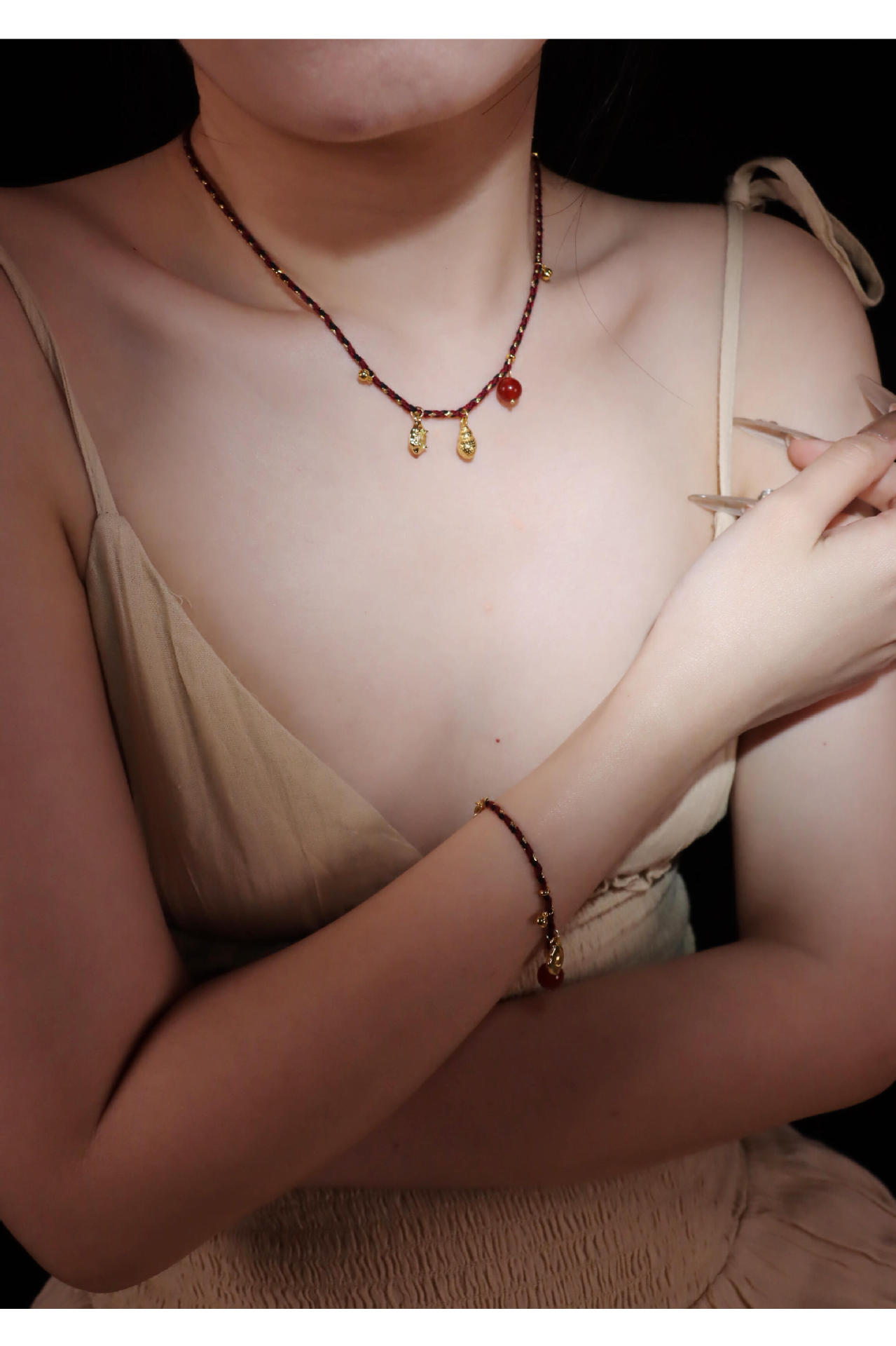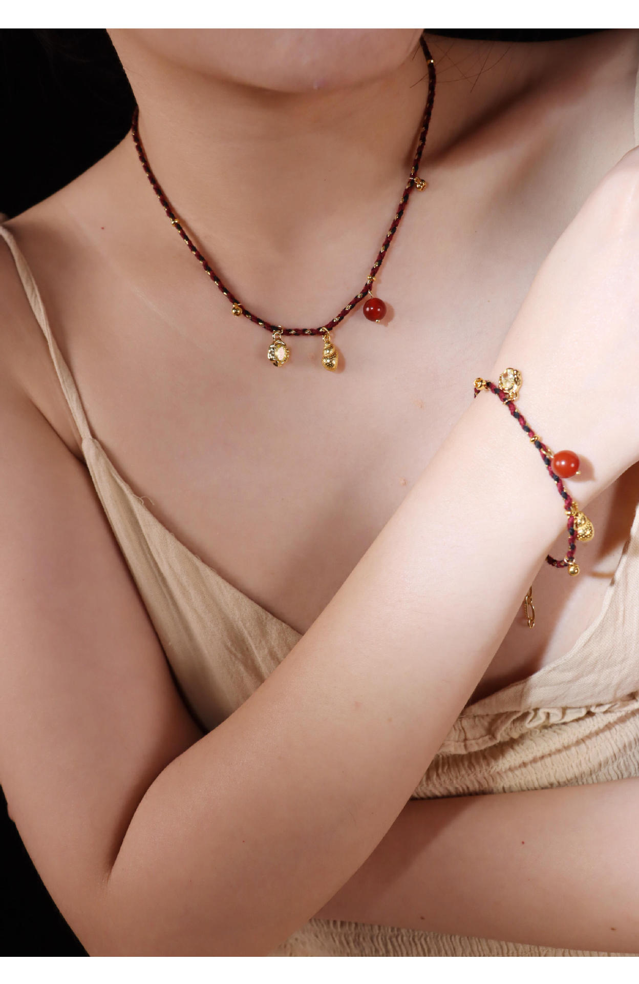 Natural tourmaline necklace, Natural tourmaline bracelet, Copper plated with real gold