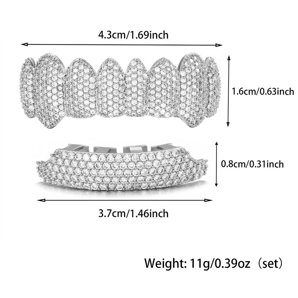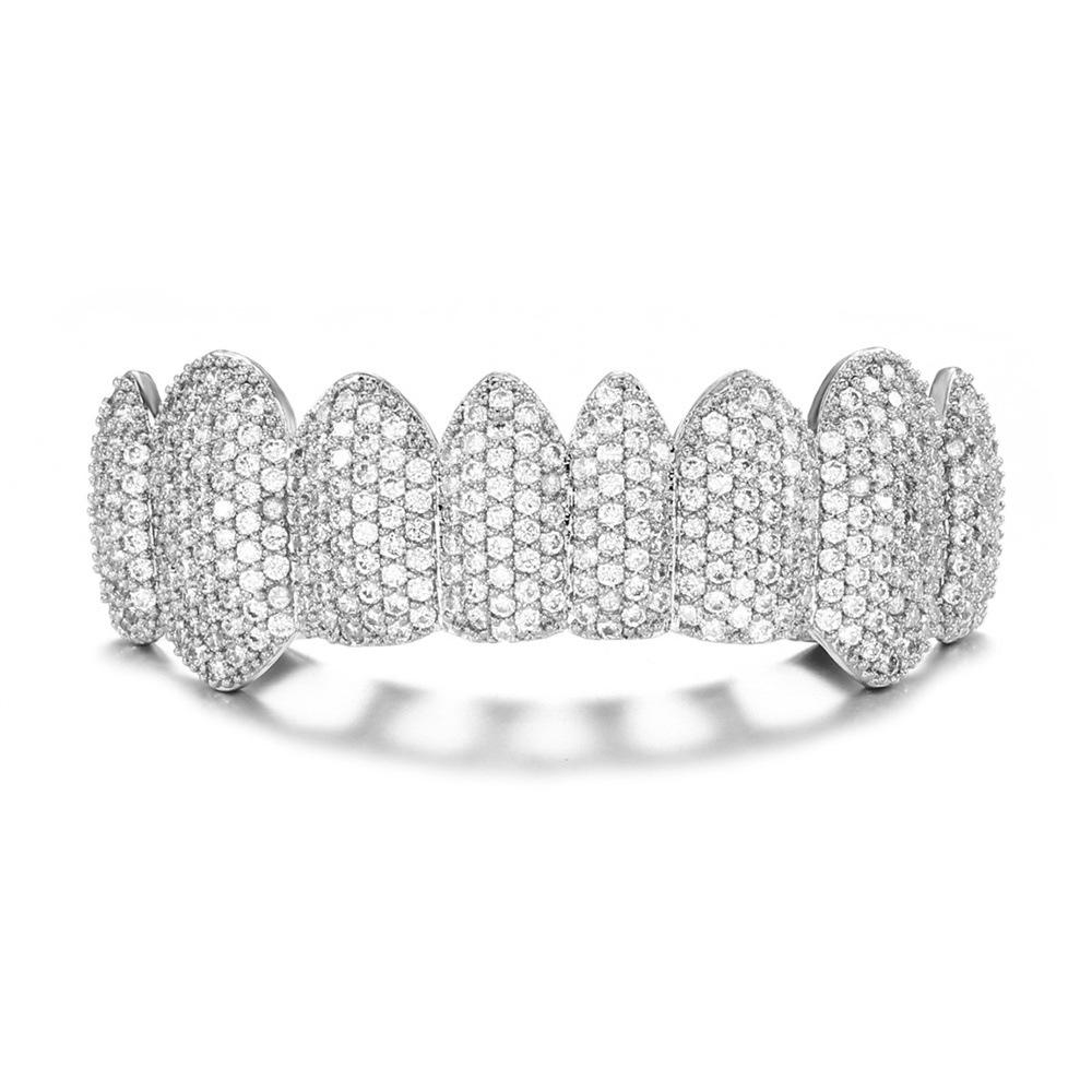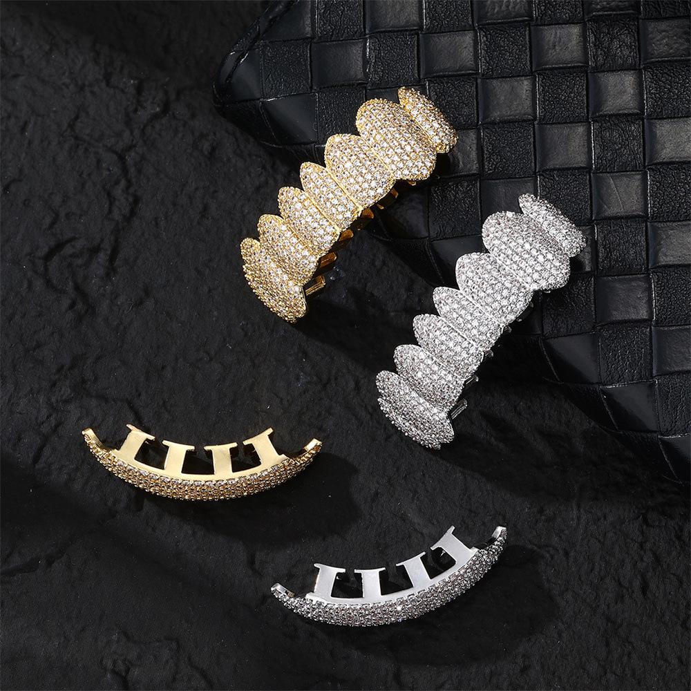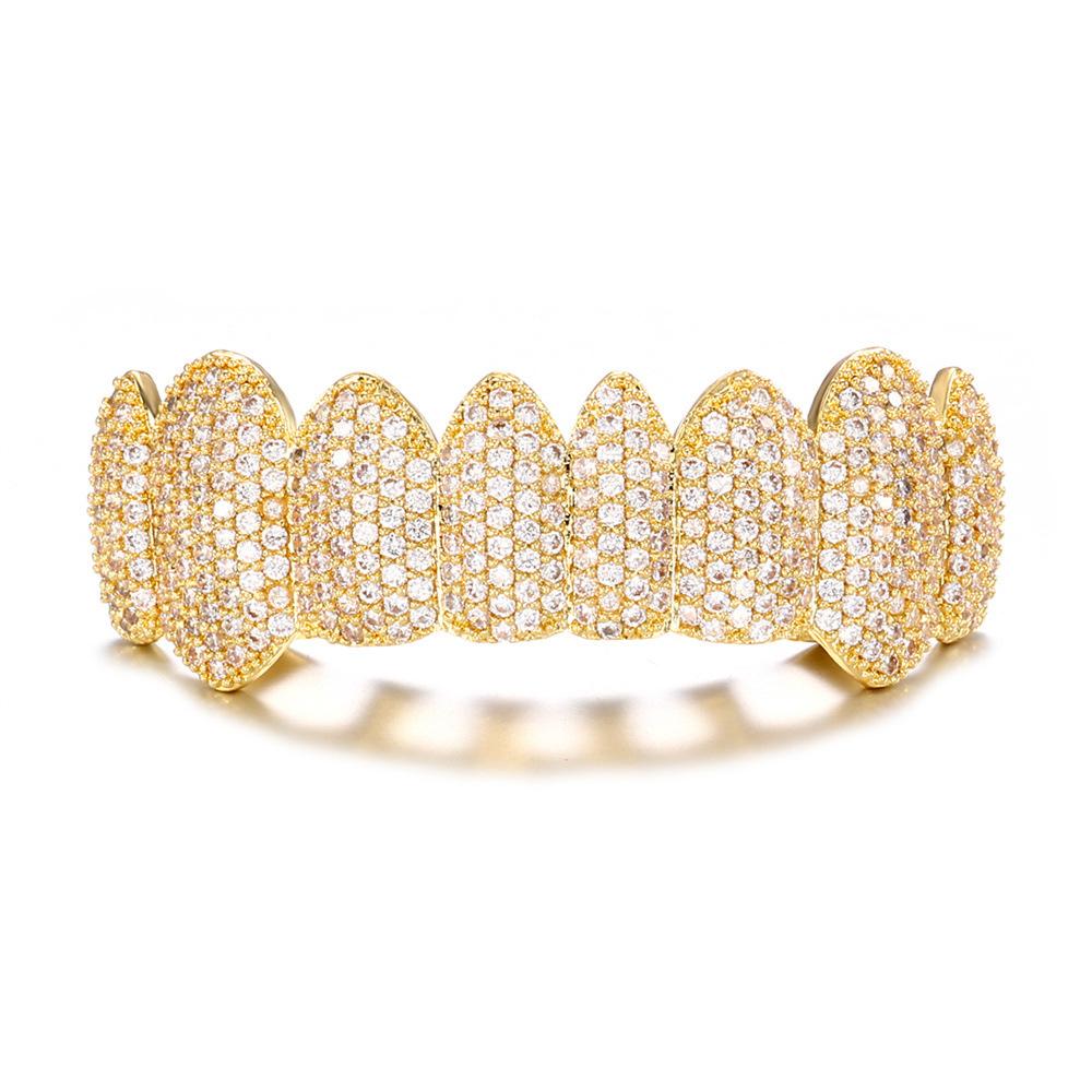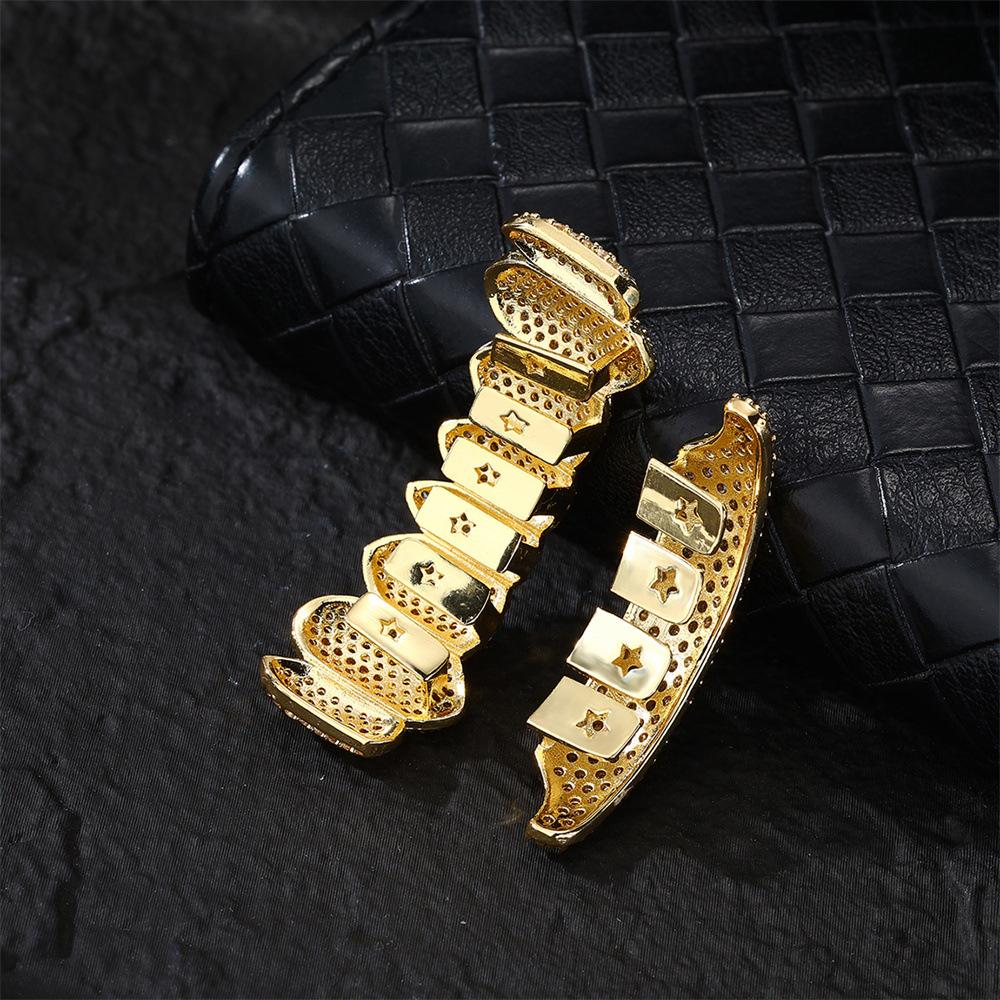 Brackets de hip-hop europeos y americanos de diamantes completos, cobre con incrustaciones de circonita, brackets de hip-hop de ocho dientes, accesorios dentales de lujo local