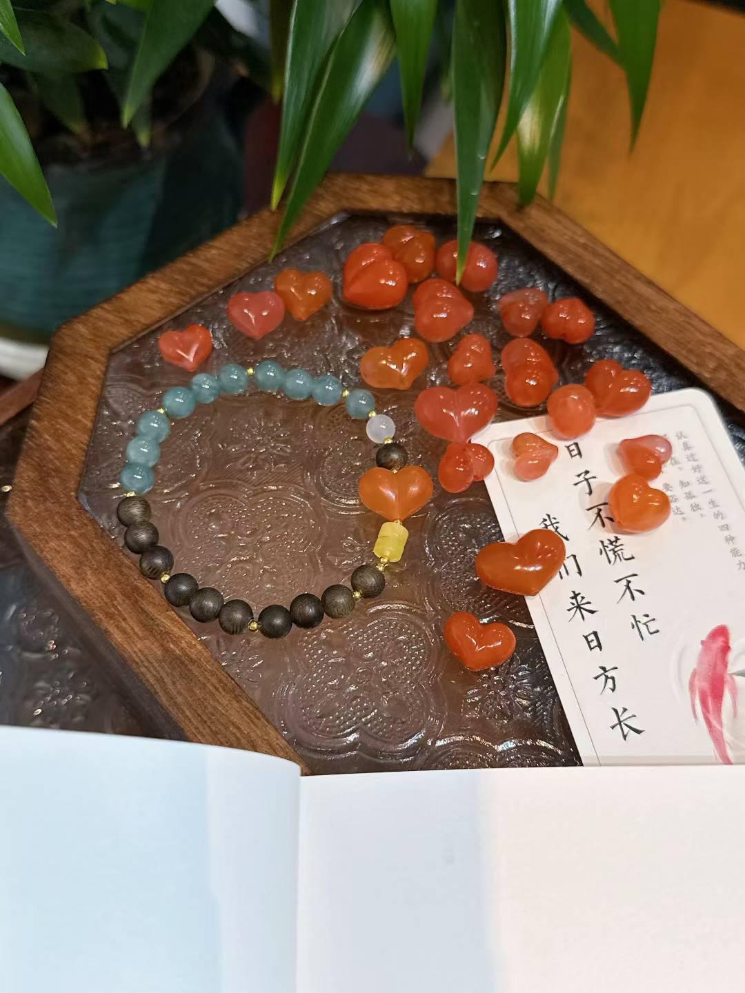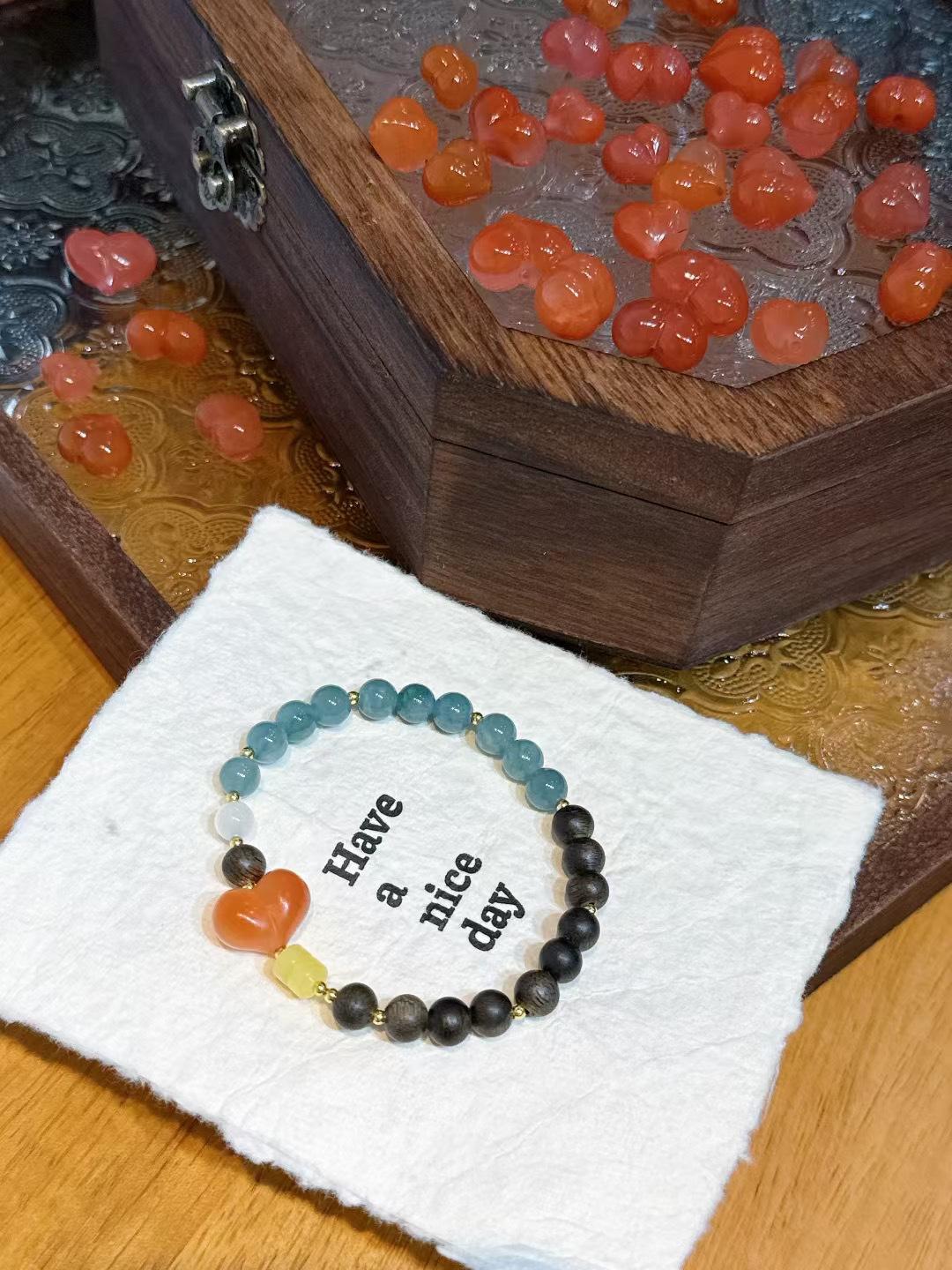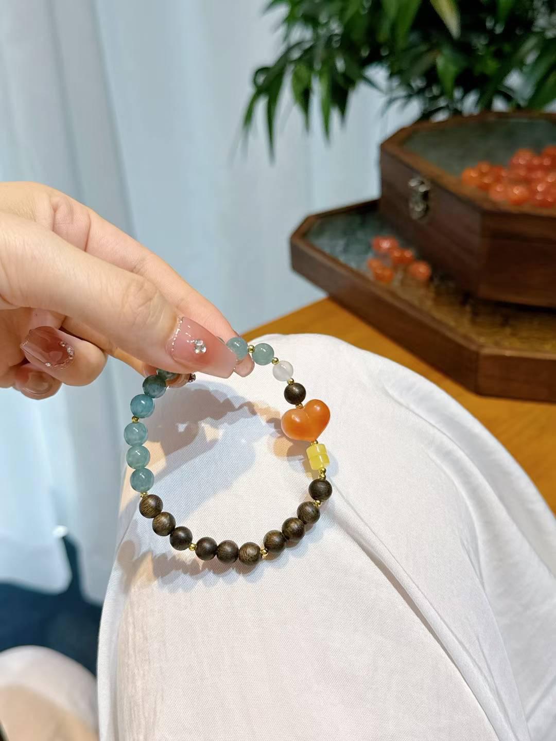 Jade de Agua Azul Natural con Melocotón Rojo del Sur Pulsera Estilo Chino Nuevo Literaria Retro para Mujer Venta al por Mayor