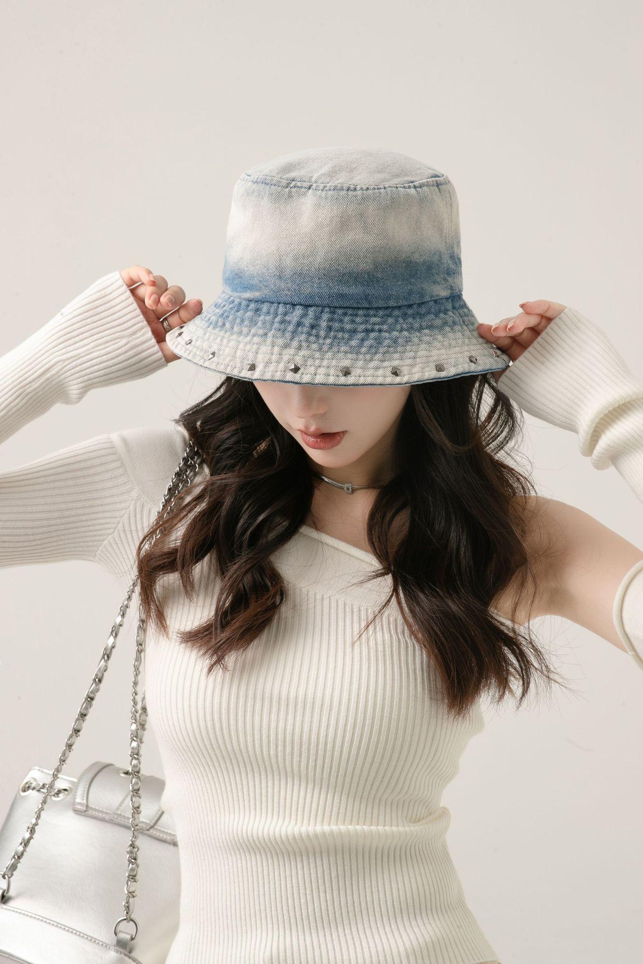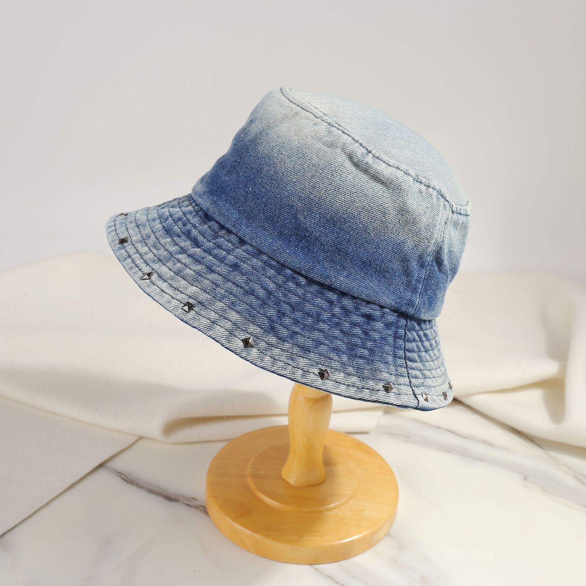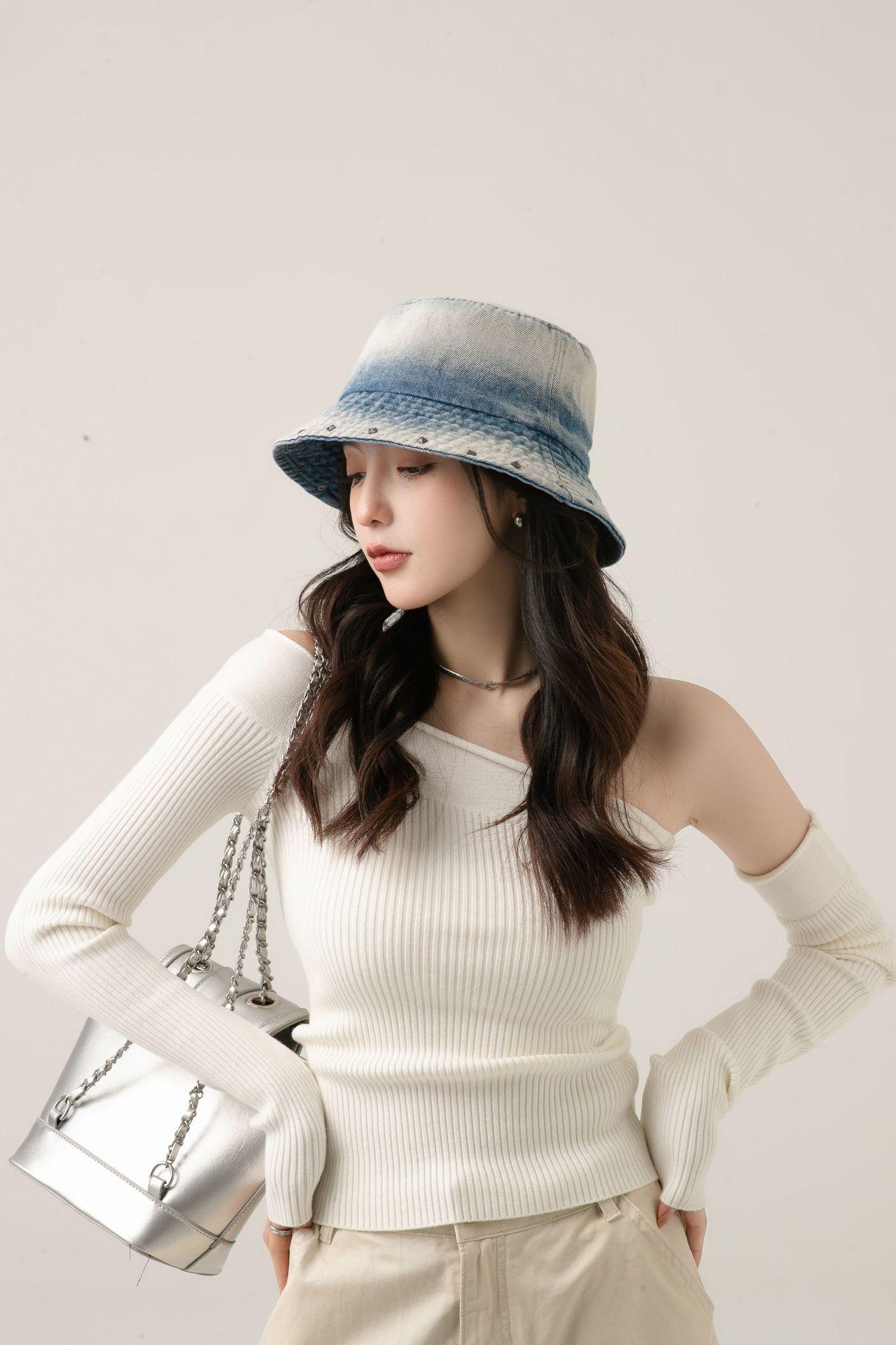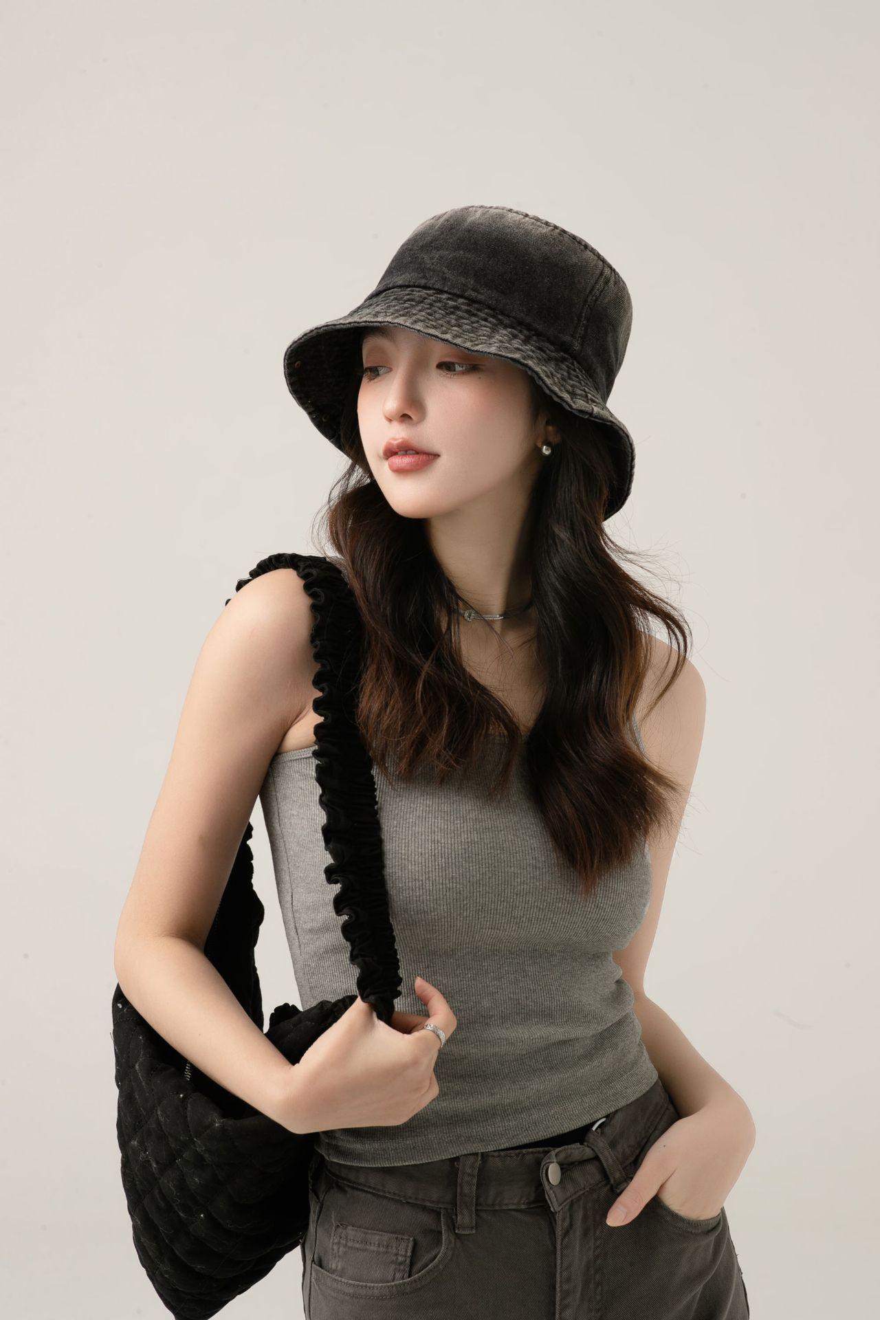 Sombrero de Pescador de Mezclilla para Mujer Otoño Invierno de Alta Gama Adelgazante de Rostro Sombrero Bucket Liso Japonés Casual Versátil Cubre Rostro Sombrero Cubeta