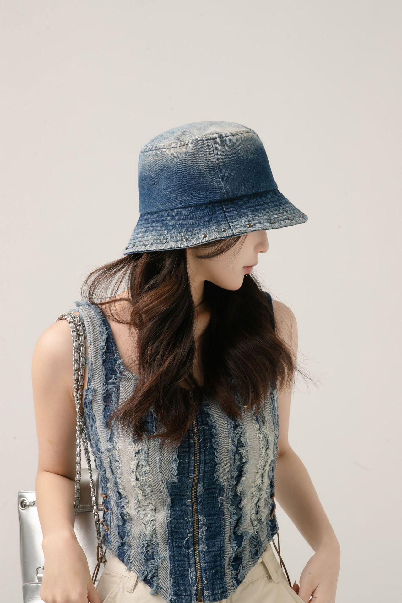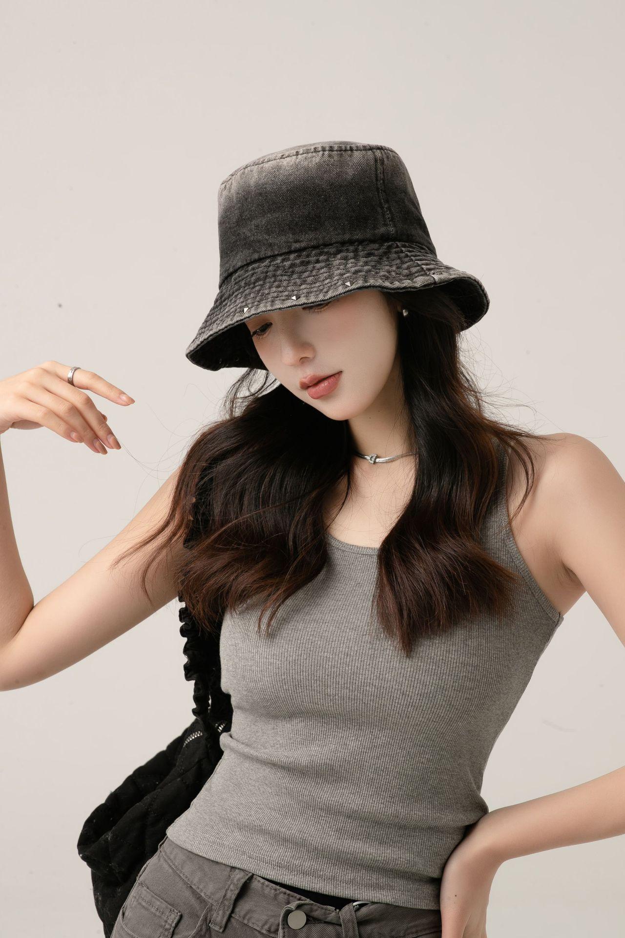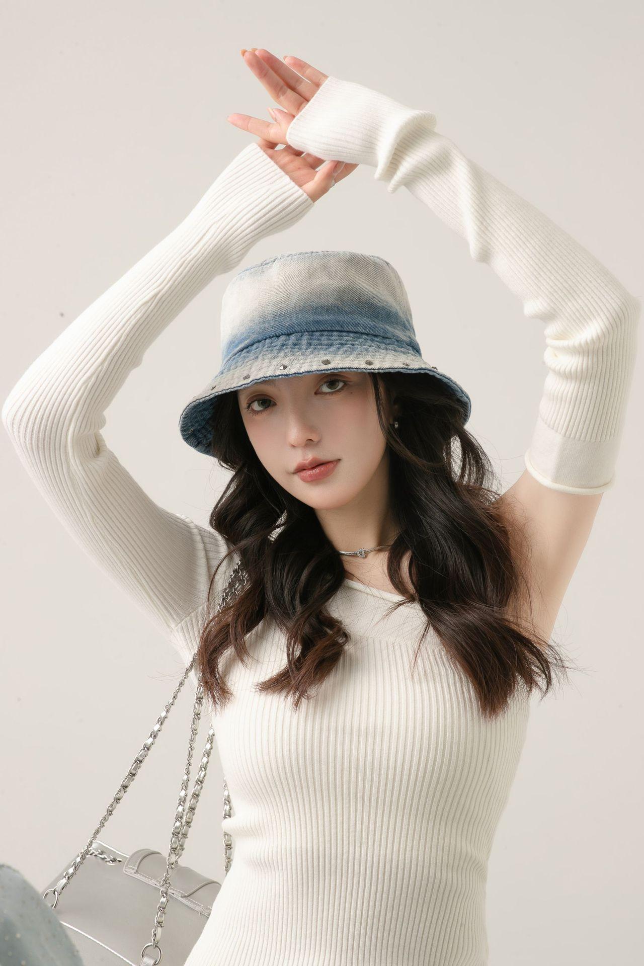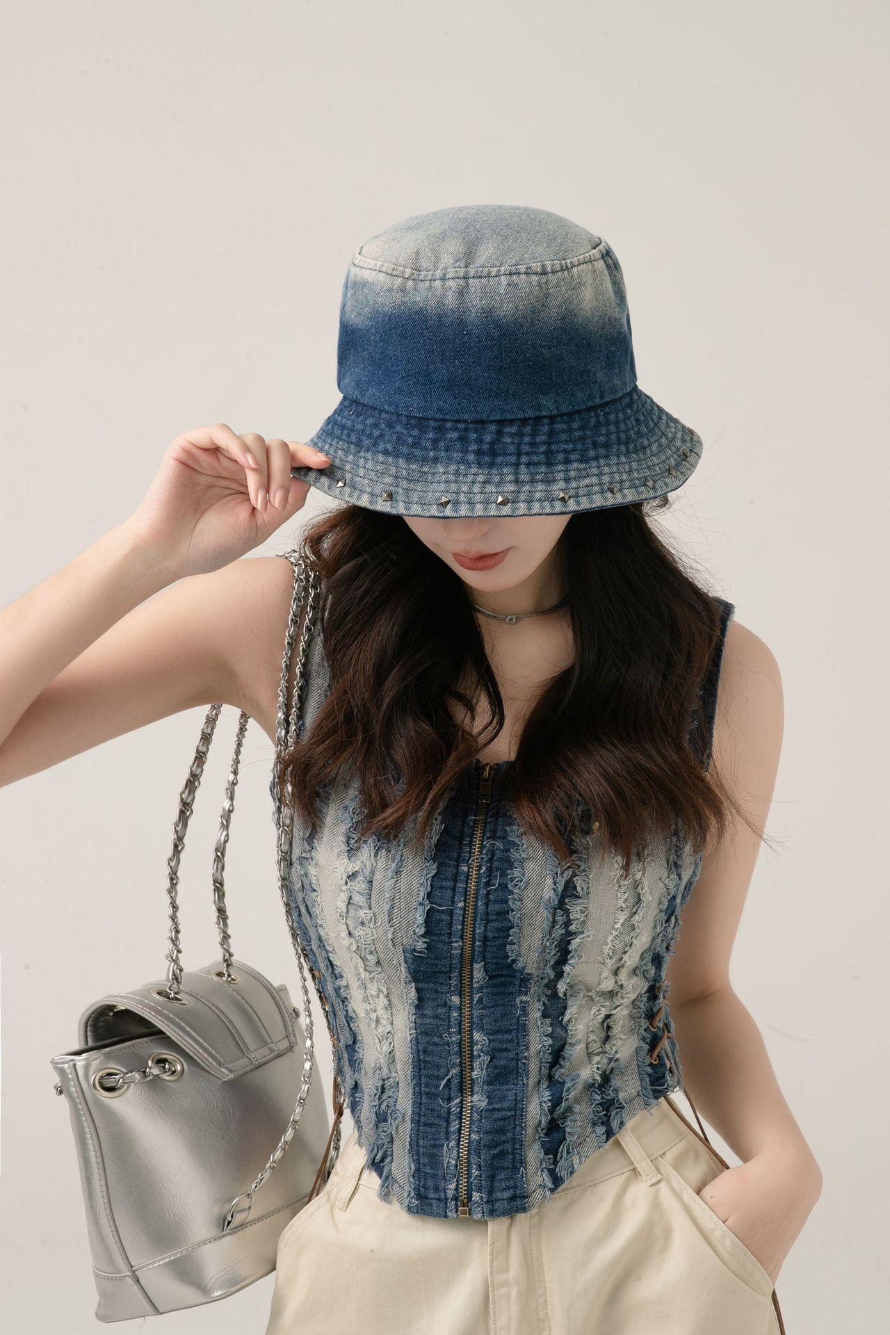 Sombrero de Pescador de Mezclilla para Mujer Otoño Invierno de Alta Gama Adelgazante de Rostro Sombrero Bucket Liso Japonés Casual Versátil Cubre Rostro Sombrero Cubeta