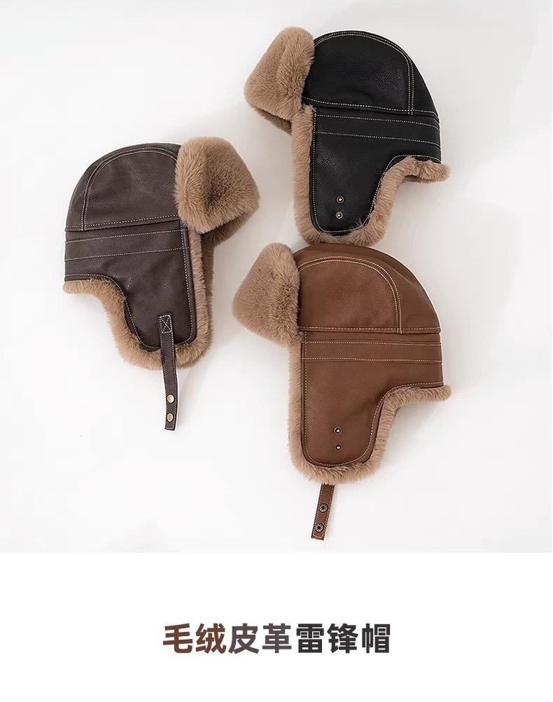 Sombrero Lei Feng de Cuero para Hombre Invierno Grueso Cálido Protección para las Orejas Sombrero Frío del Noreste Sombrero Versátil para Ciclismo al Aire Libre a Prueba de Frío