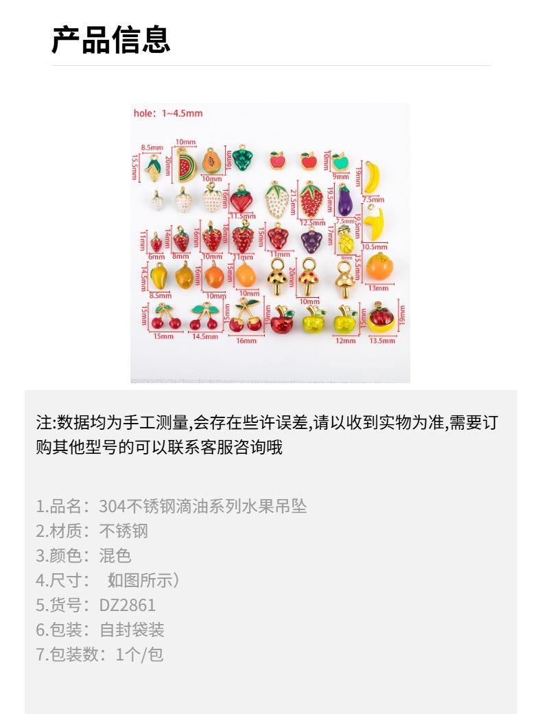 Acero Inoxidable 304 Dibujos Animados Tridimensional Fruta Goteo Aceite Colgante Cereza Fresa Puede DIY Collar Pulsera Dije Accesorios