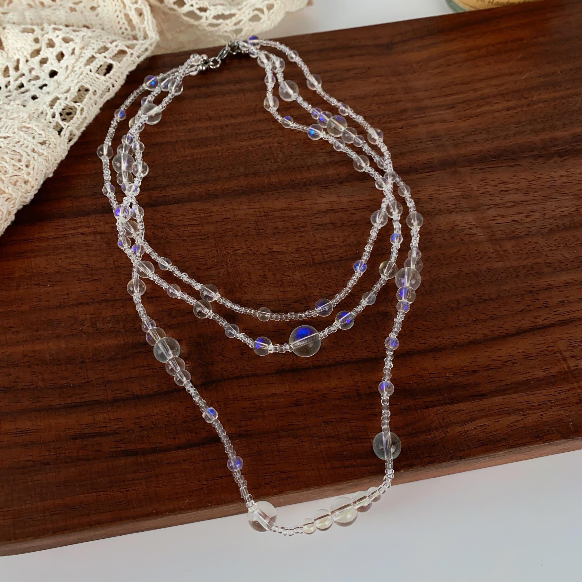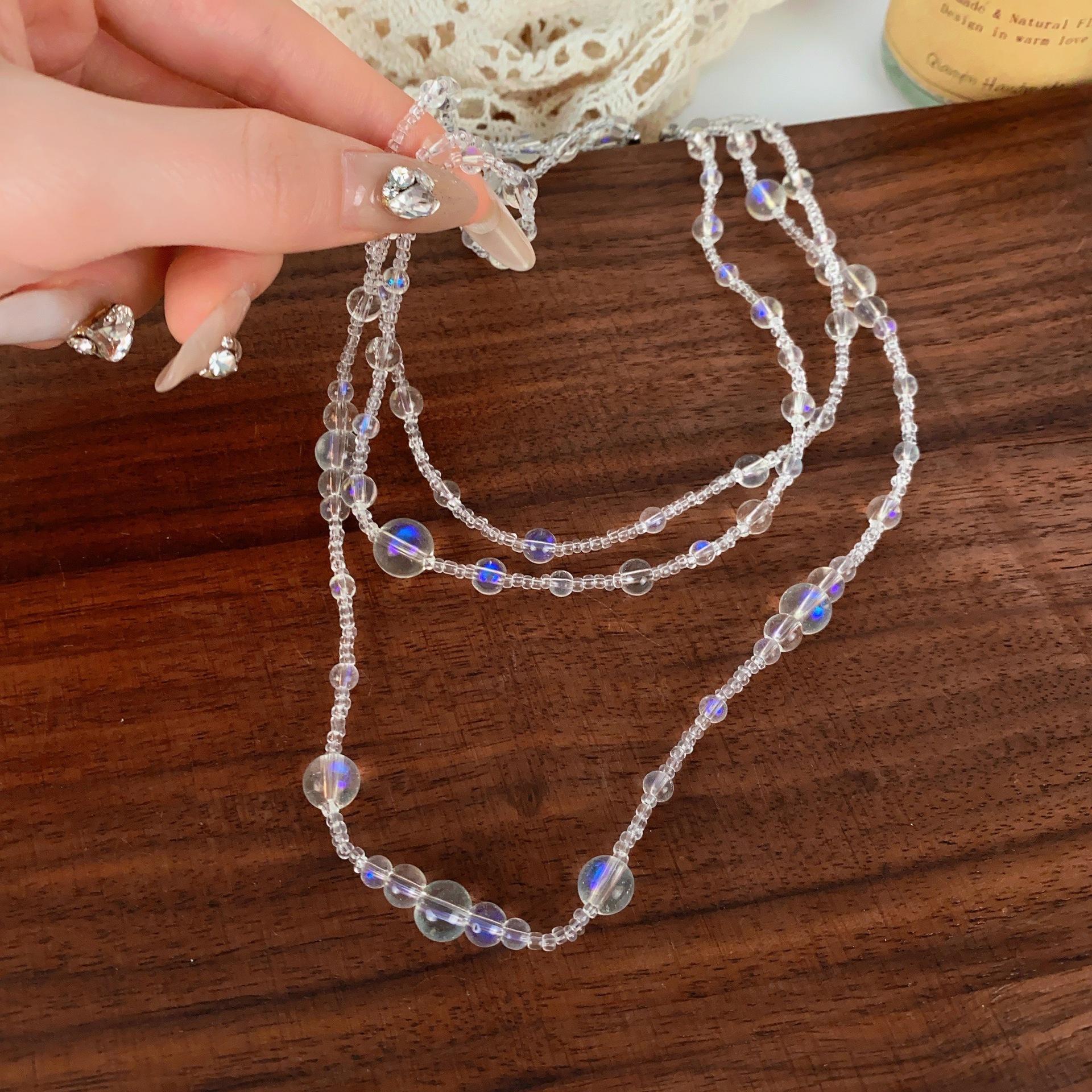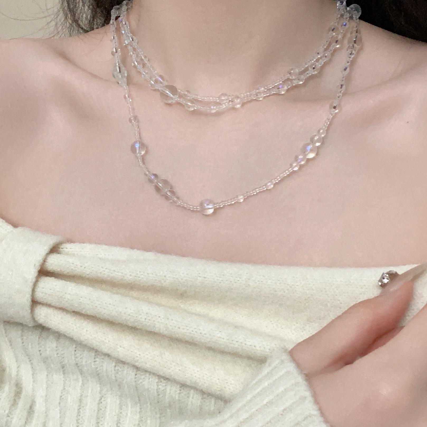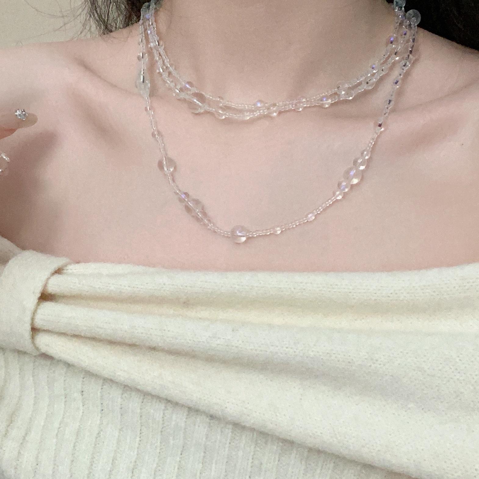 Collar Irregular de Cuentas de Cristal Blanco Cadena en Capas para Clavícula Diseño Nicho de Lujo Ligero de Alta Gama Collar Versátil