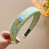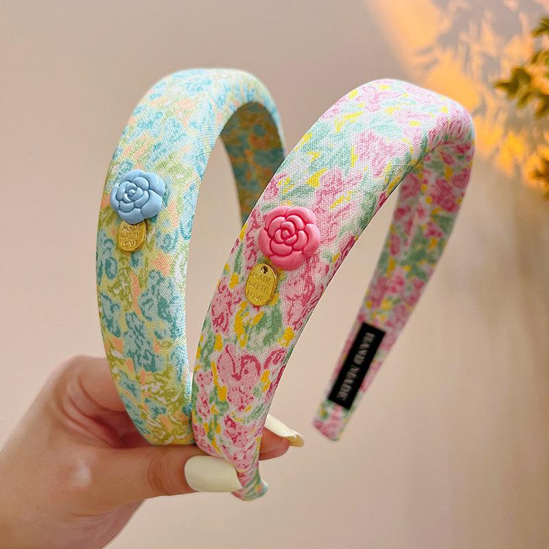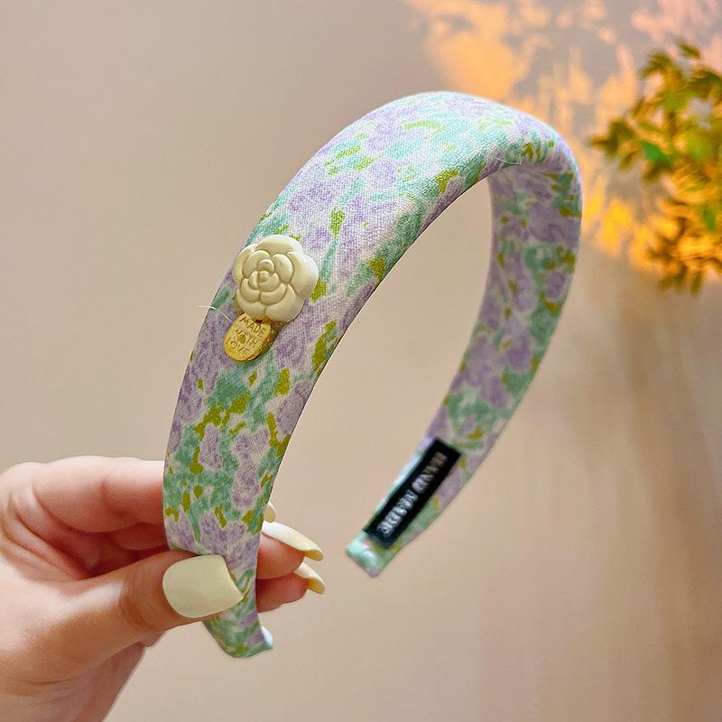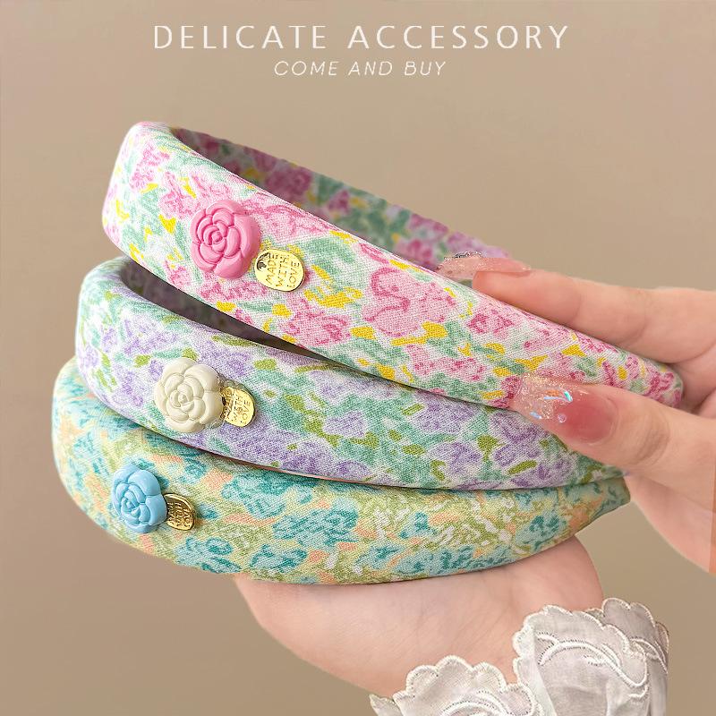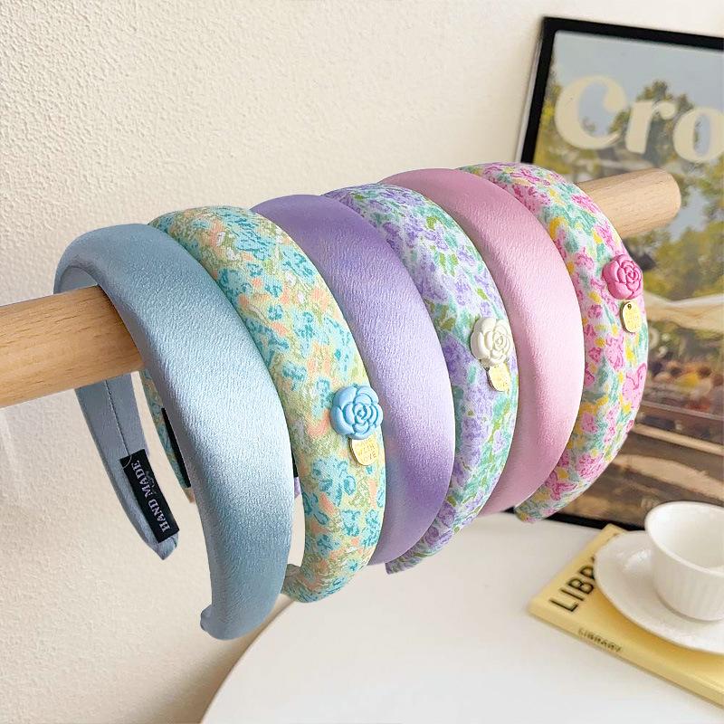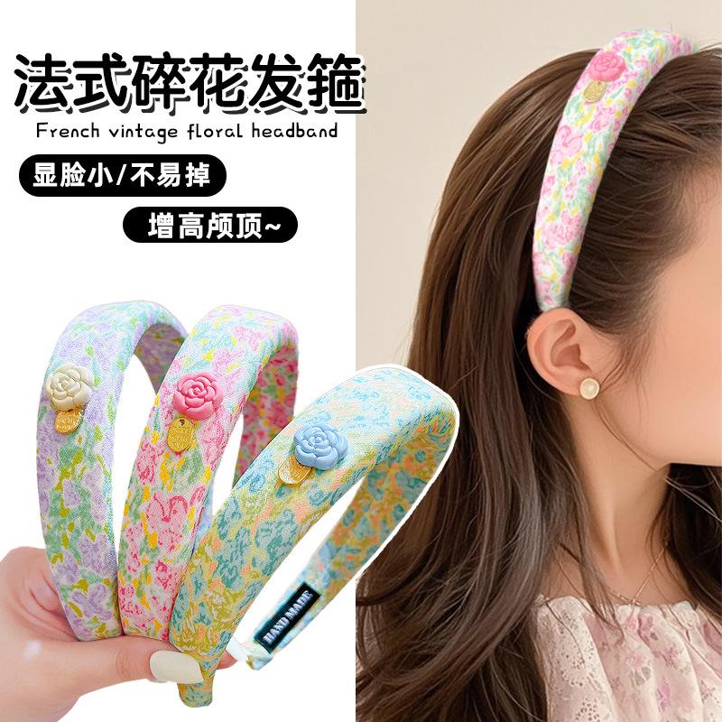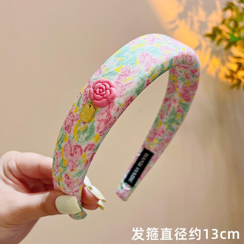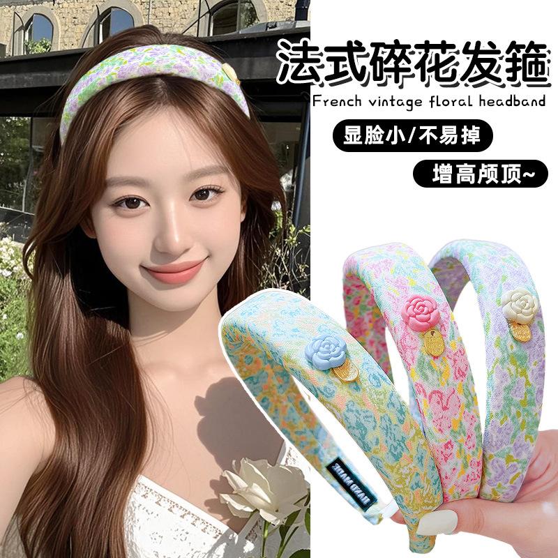 2025 Nueva Diadema Floral de Estilo Francés para Mujer Diadema de Esponja Superior Craneal Alta Primavera Temprana Camelia Pintura al Óleo de Alta Gama Accesorios para el Cabello